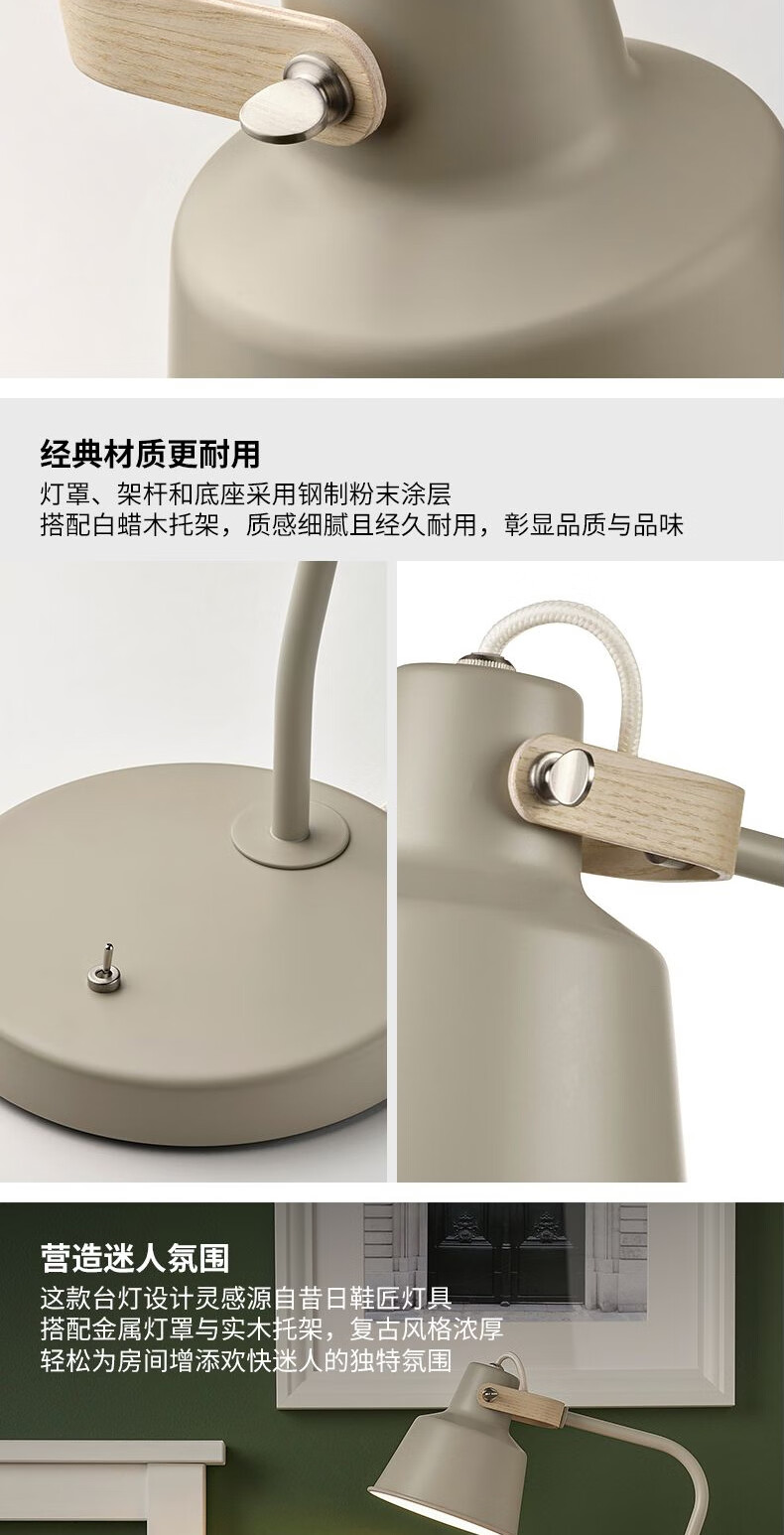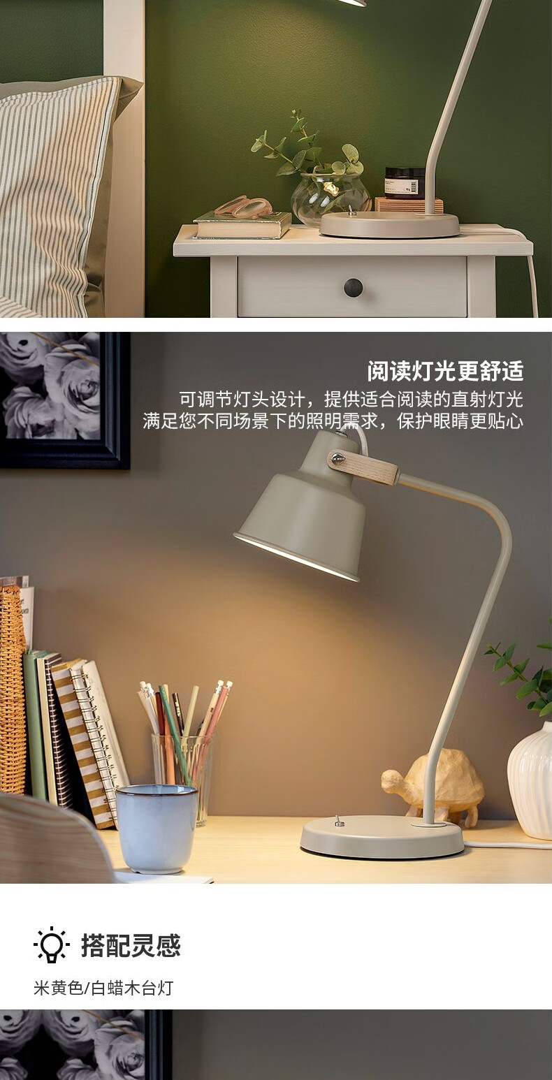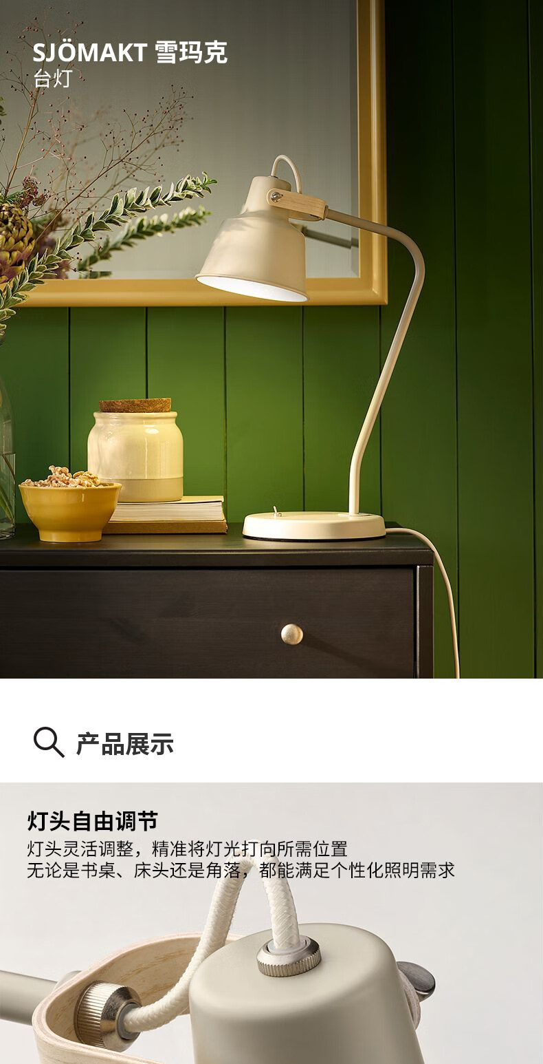 宜家(IKEA)【新品】SJOMAKT雪玛克台灯阅读灯装饰灯床头灯家用 【新品】米黄色/白蜡木台灯+ E27灯泡470流明2件