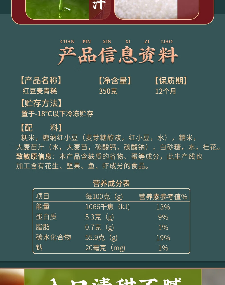 食美来红豆麦青糕350g*2袋 20块 速冻早餐半成品面点 下午茶点心糕点