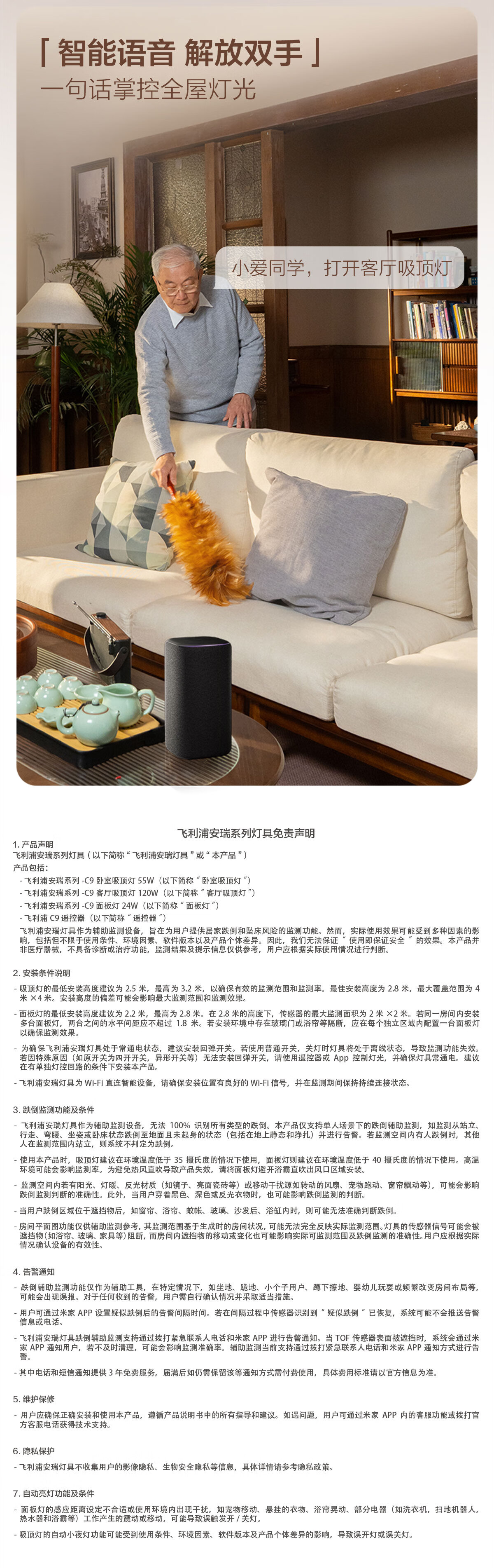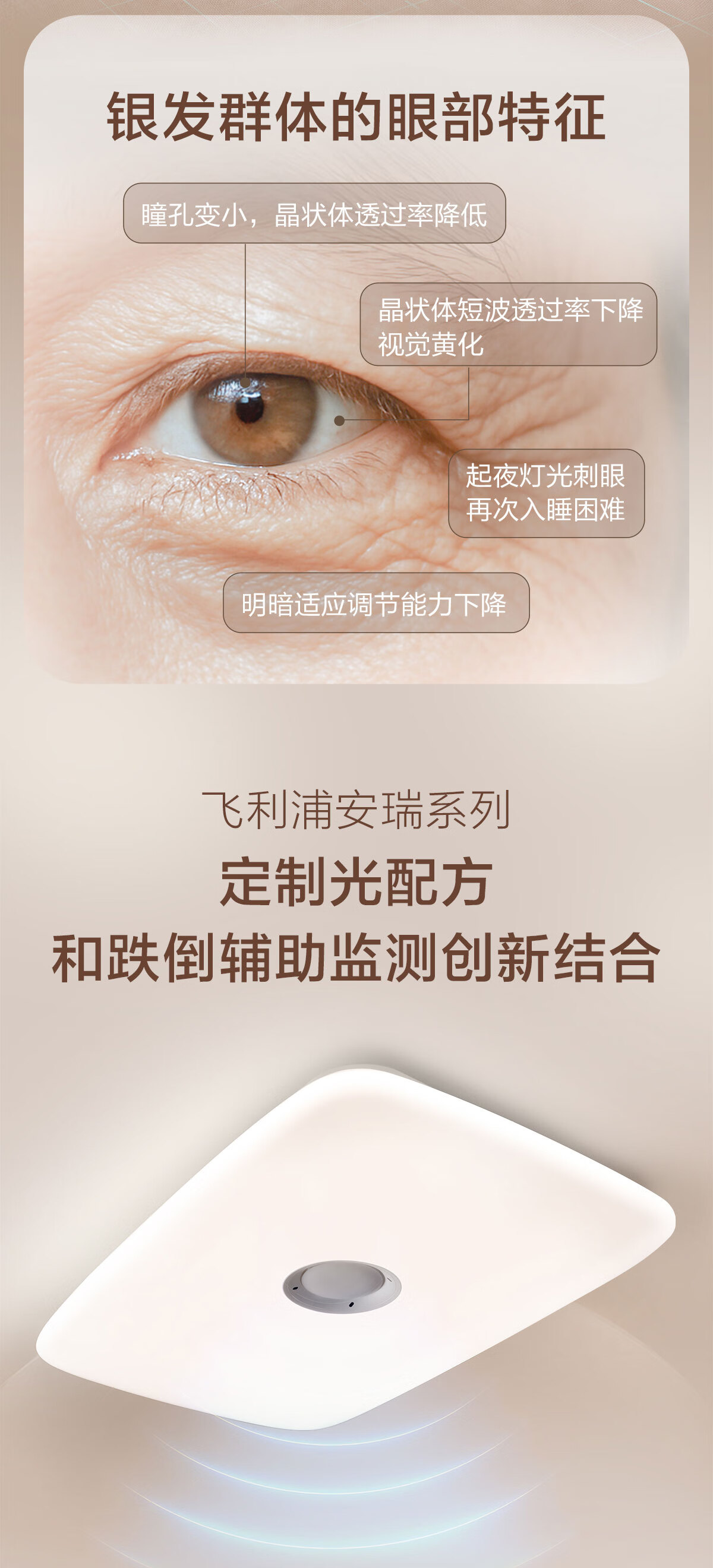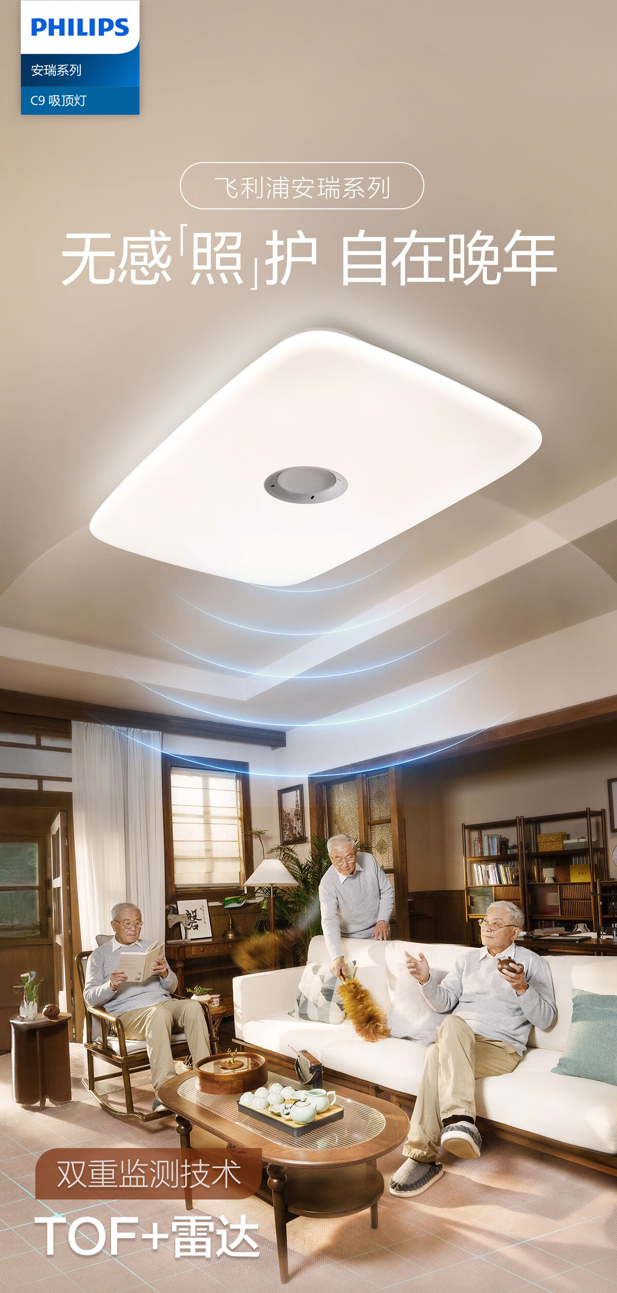 飞利浦(PHILIPS)智能吸顶灯全光谱客厅大灯跌倒监测适老化感应灯安瑞 55W 18㎡内适用 4200lm 智能卧室灯