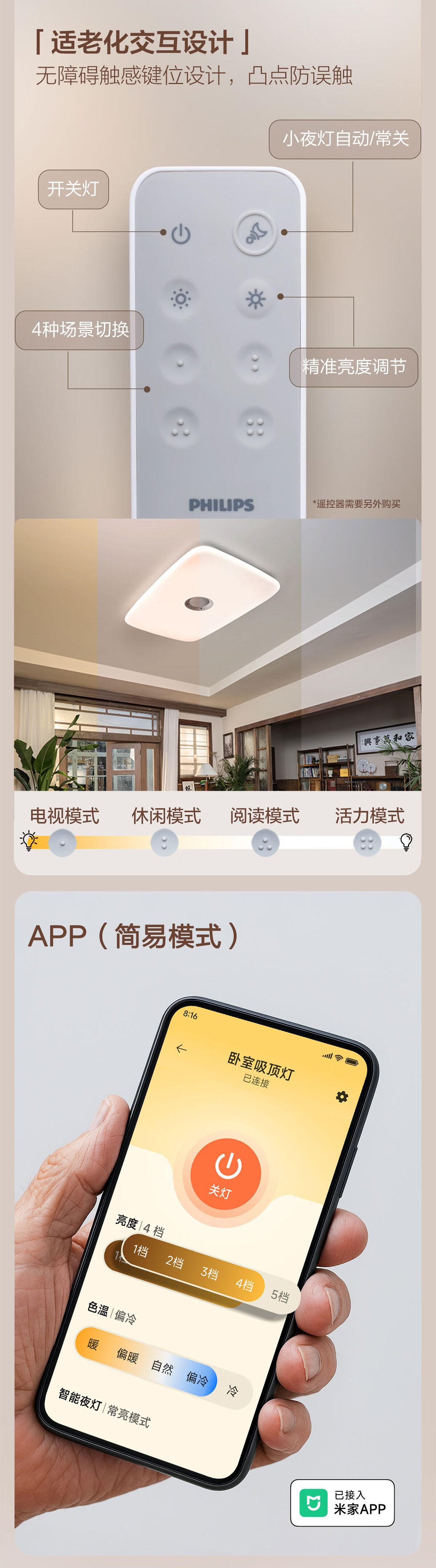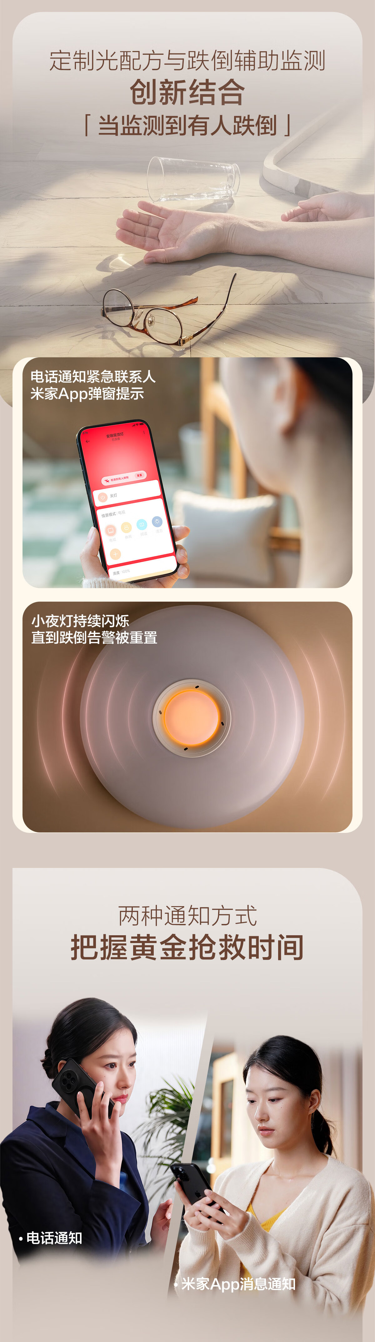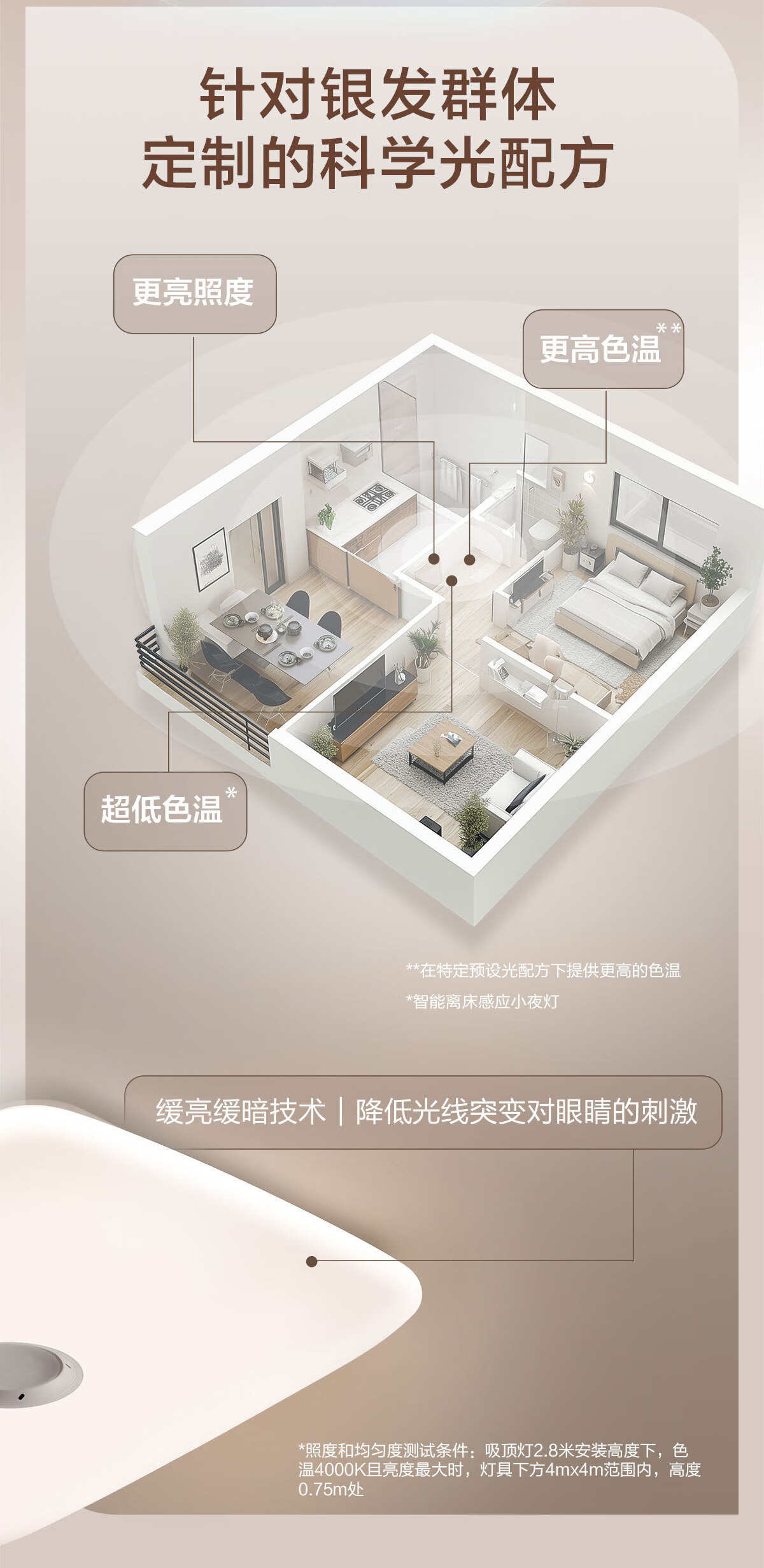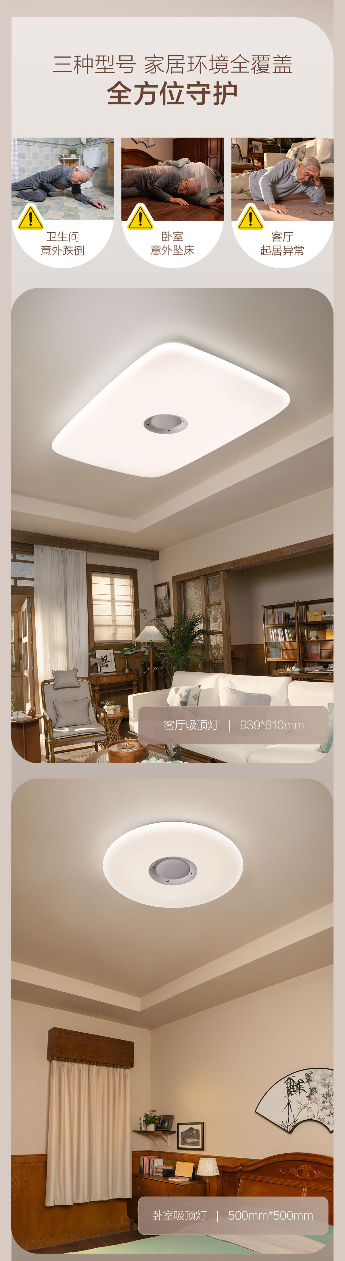 飞利浦(PHILIPS)智能吸顶灯全光谱客厅大灯跌倒监测适老化感应灯安瑞 55W 18㎡内适用 4200lm 智能卧室灯