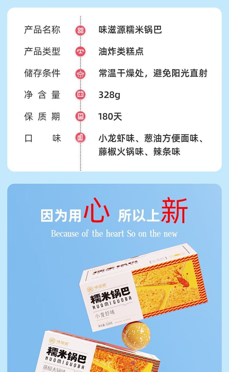 味滋源锅巴蟹黄花椒糯米香辣锅巴500g安徽特产小包装零食 糯米锅巴 香辣味500g 1份
