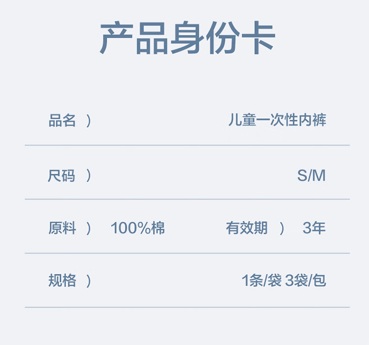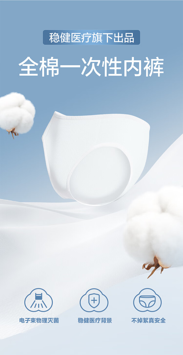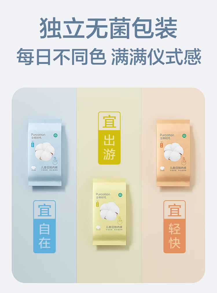 全棉时代儿童一次性内裤男女童宝宝纯棉无菌不掉絮电子束灭菌 3条装 M
