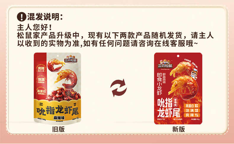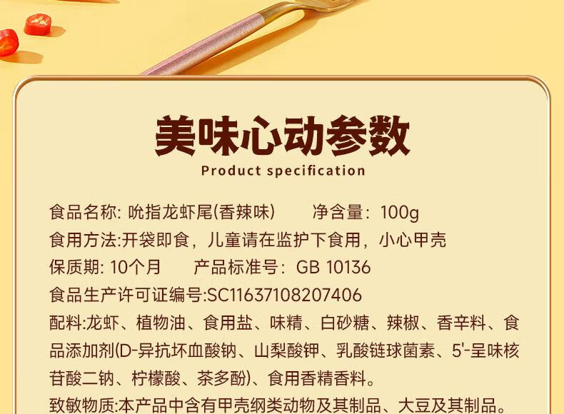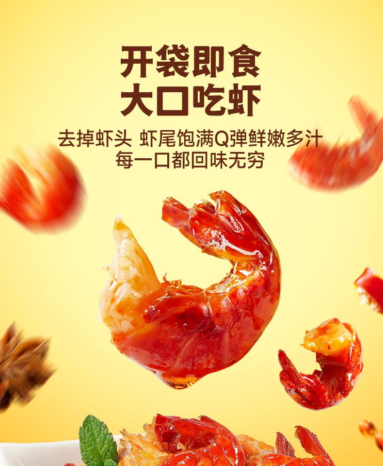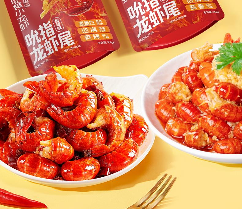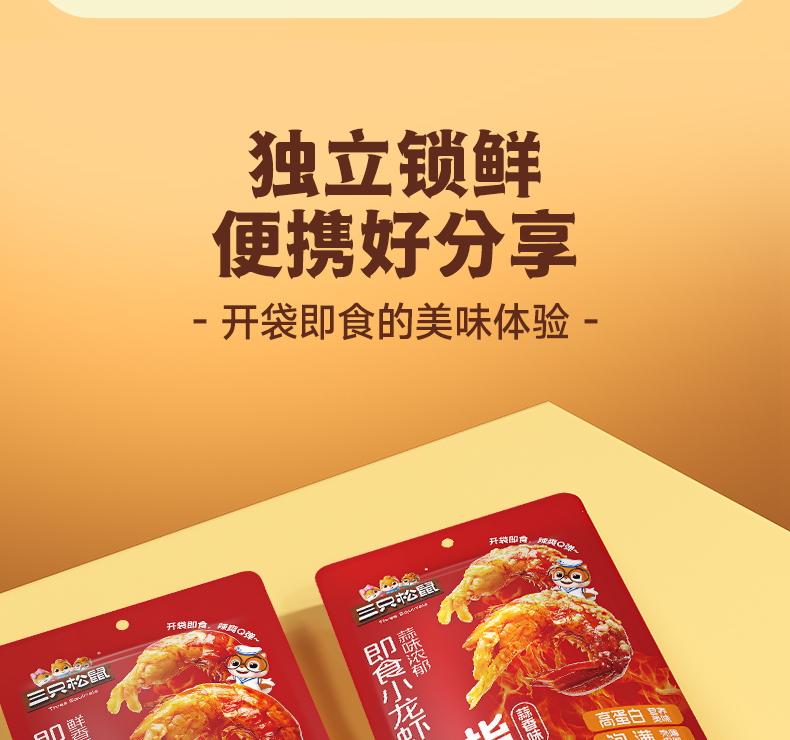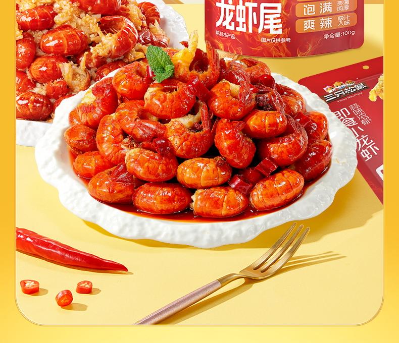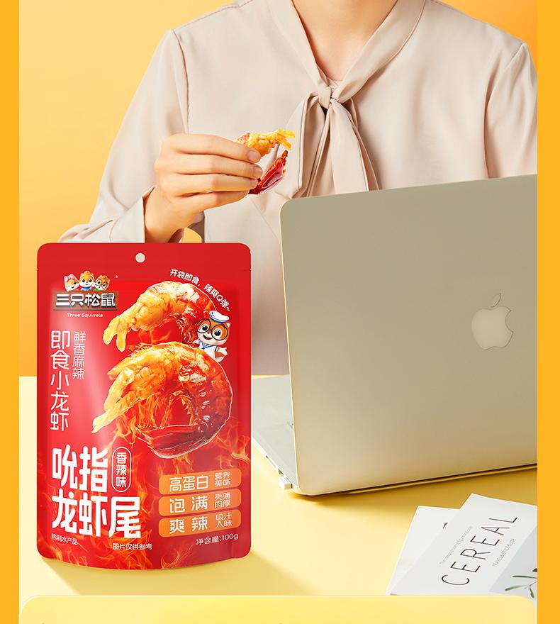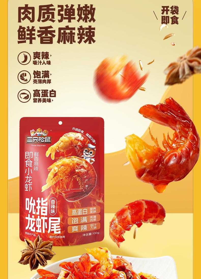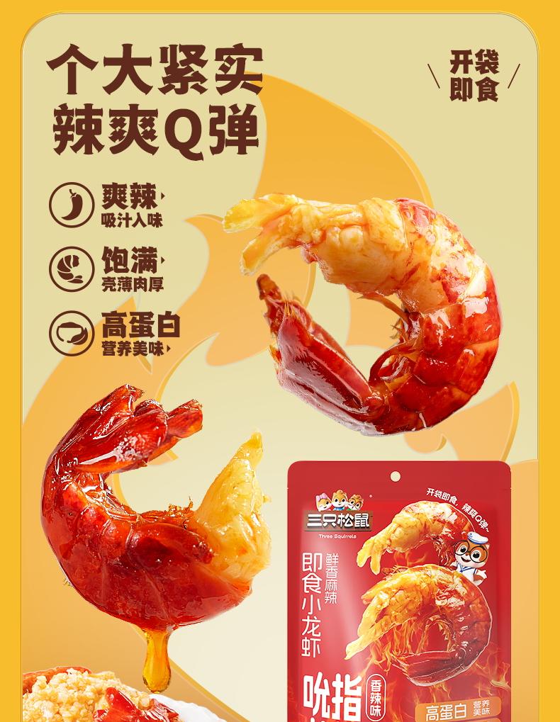 三只松鼠麻辣味吮指小龙虾尾100g 即食海鲜海味零食独立小包便携解馋