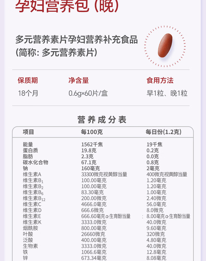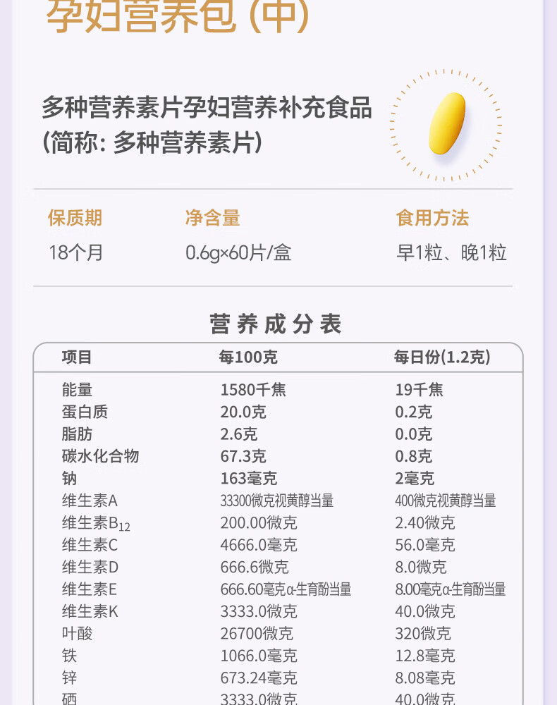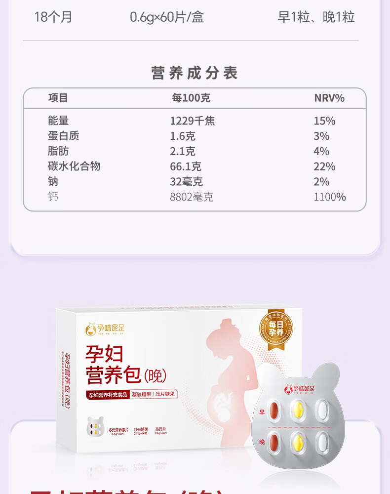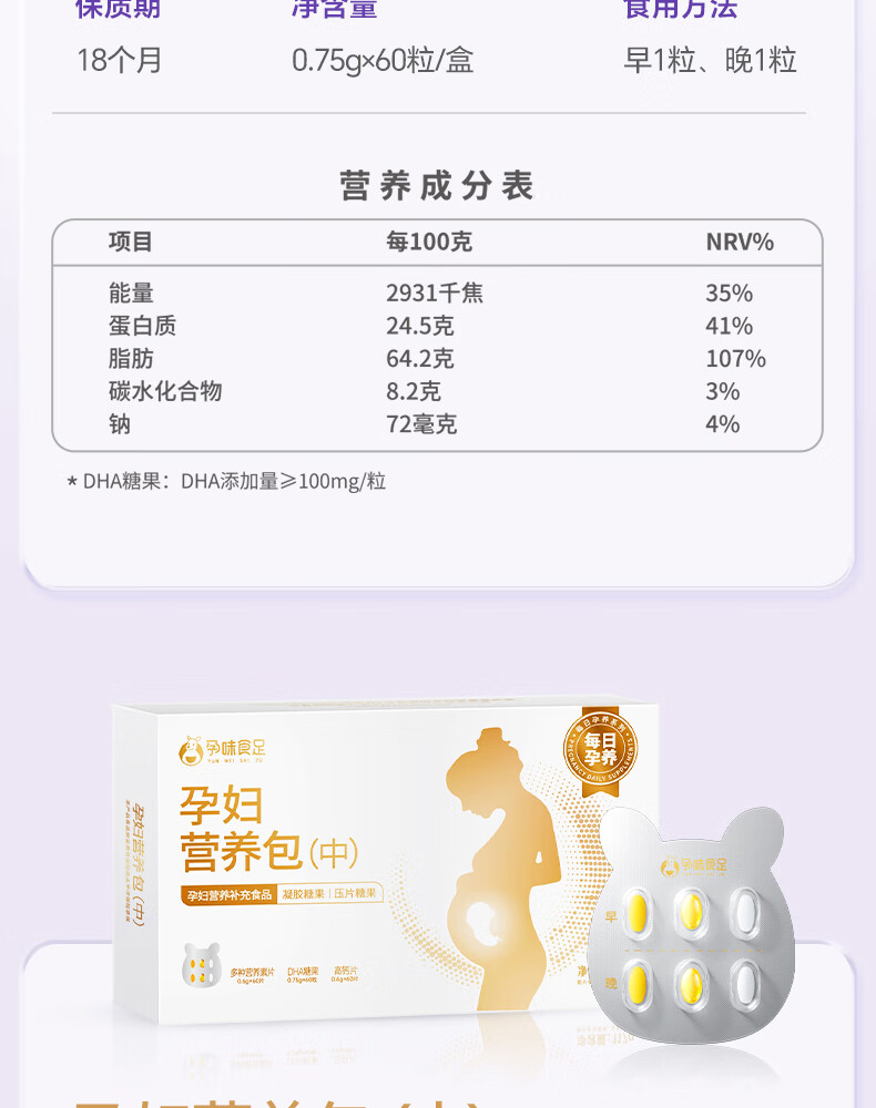 孕味食足孕妇复合维生素孕妇DHA活性叶酸孕妇营养包 孕早期适用