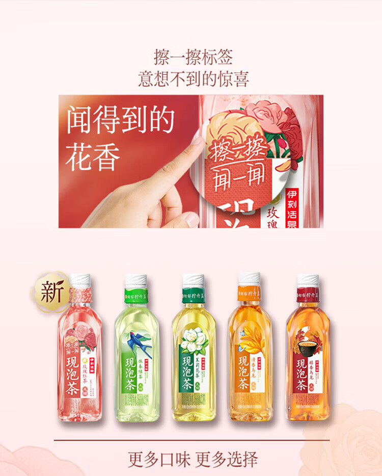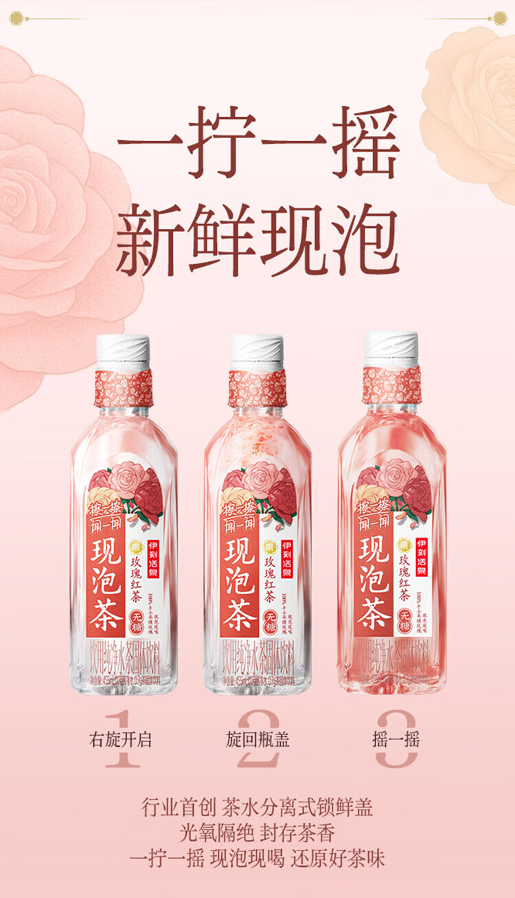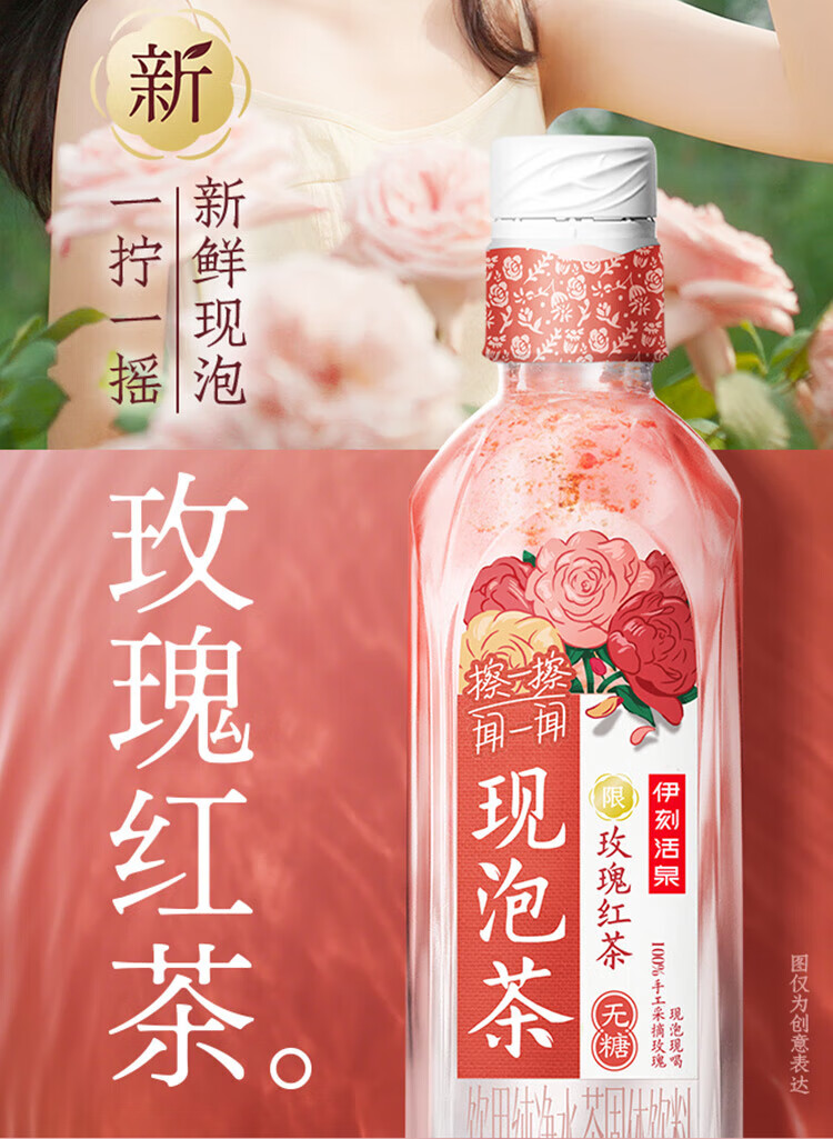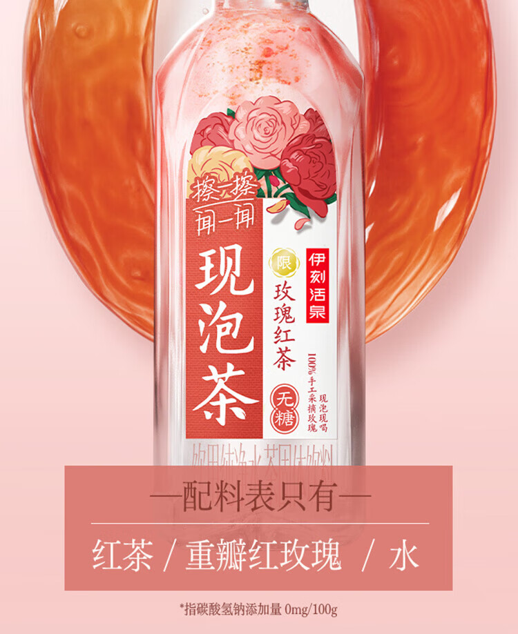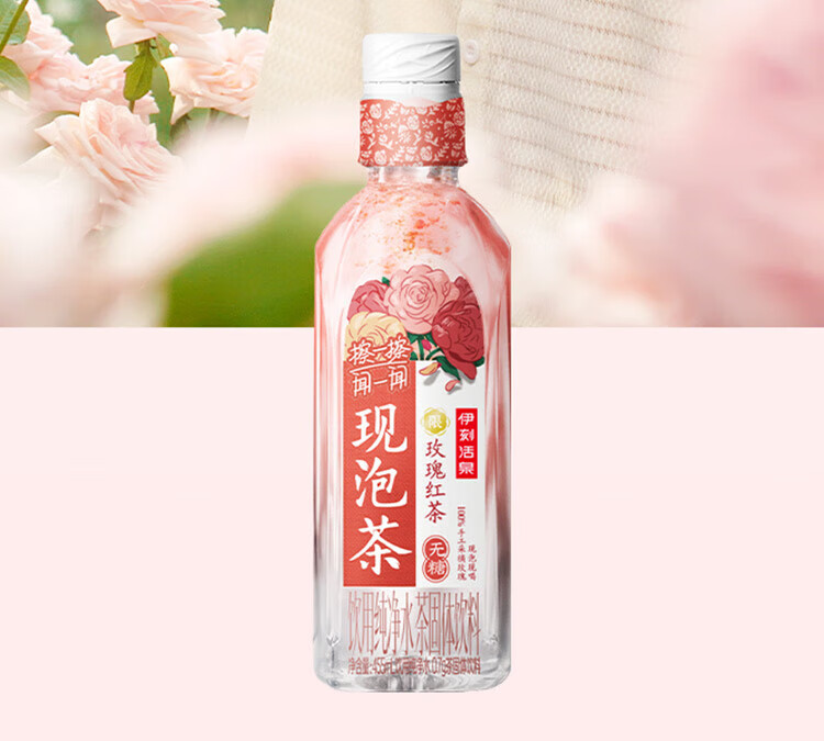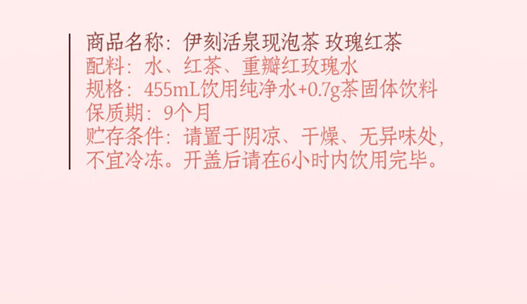 伊刻活泉现泡茶玫瑰红茶 现泡茶水455ml*15瓶/箱 花香茶韵