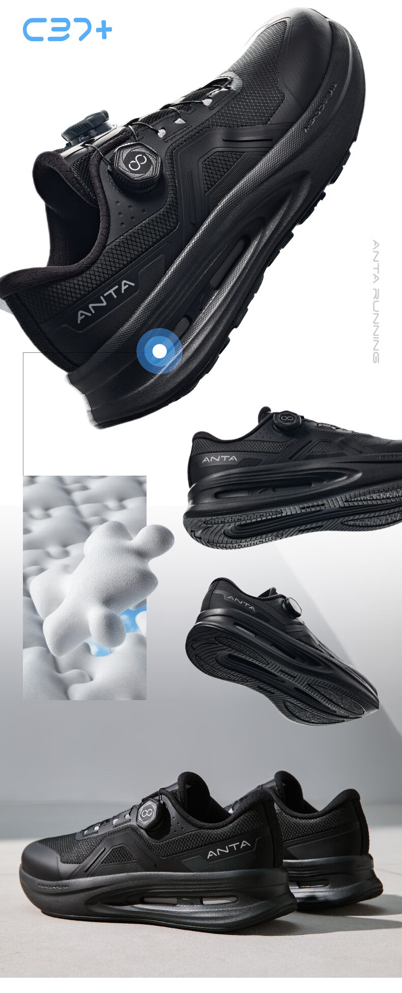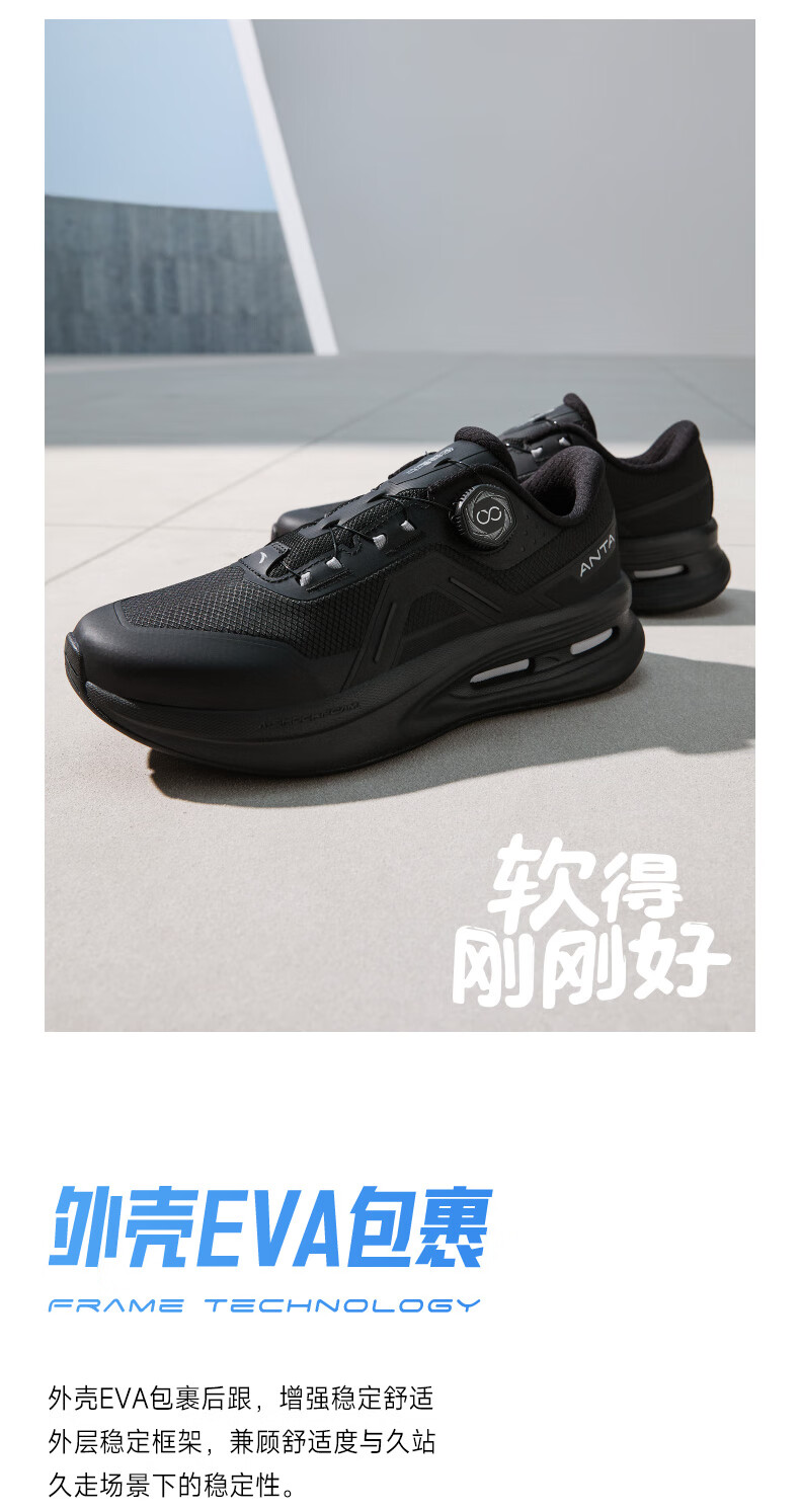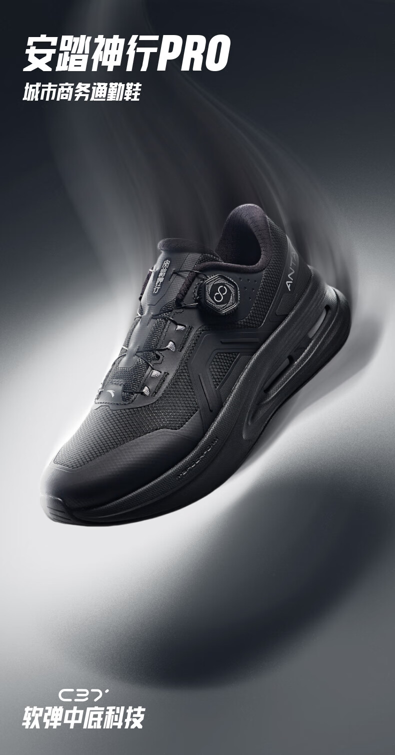 安踏神行PRO丨通勤运动鞋全黑公务鞋男训练鞋耐磨回弹健身慢跑鞋