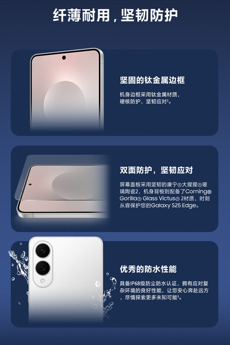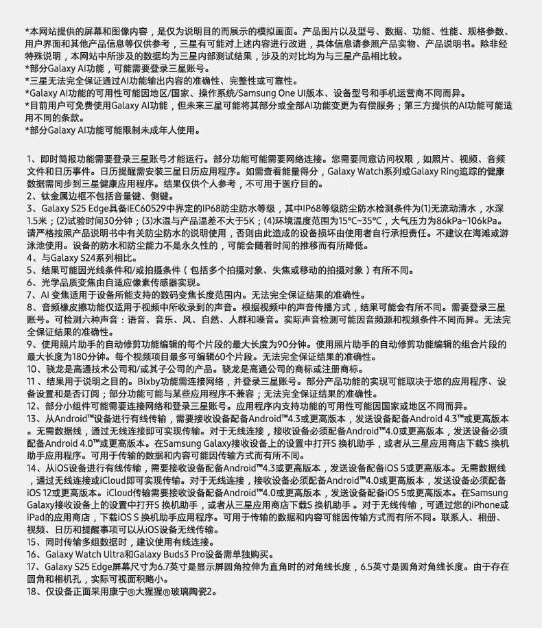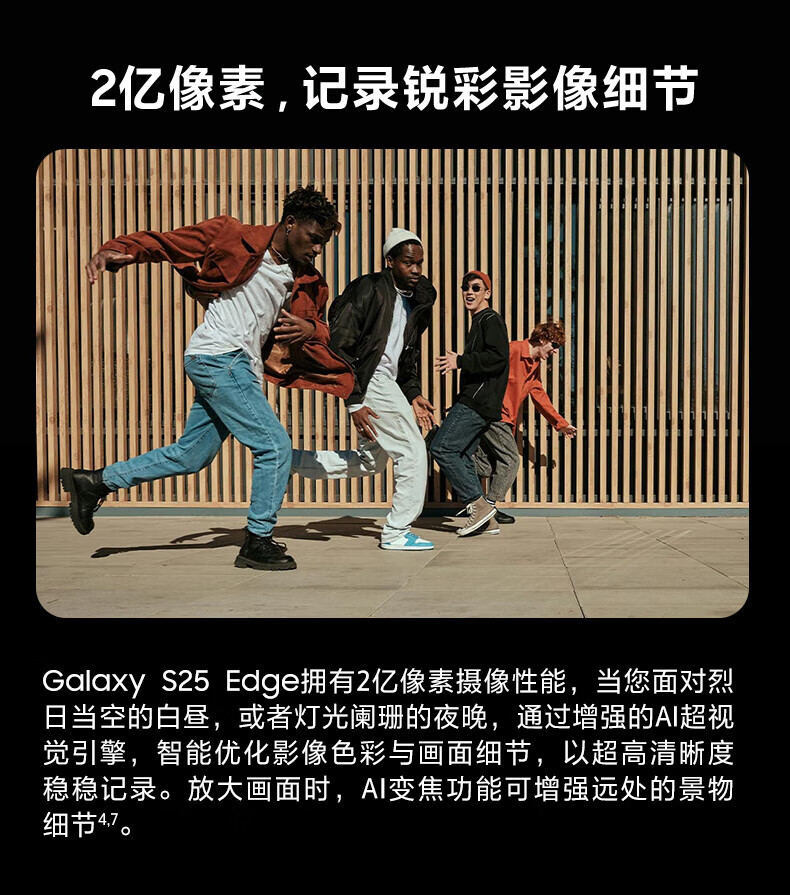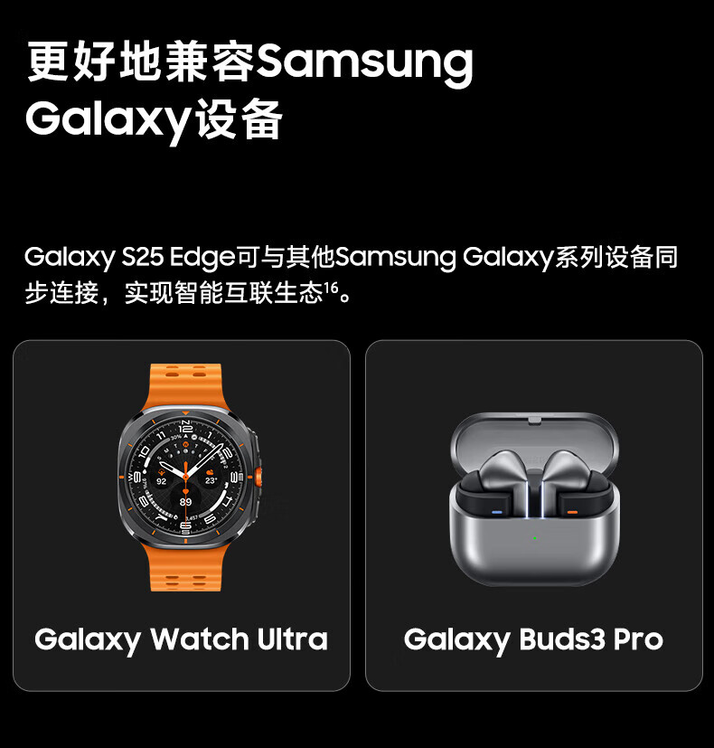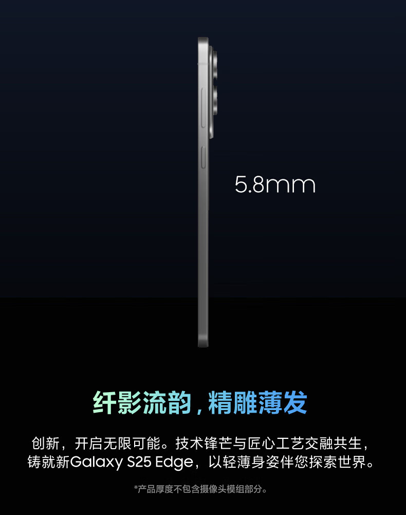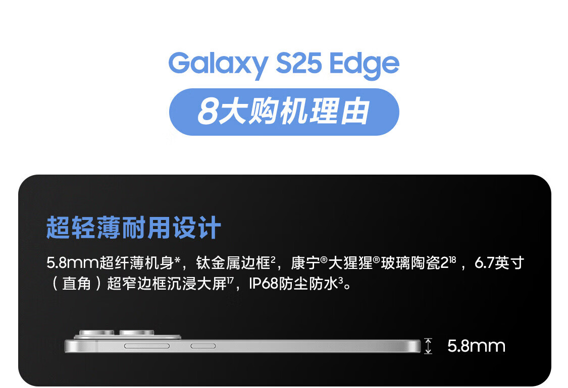 三星(SAMSUNG)Galaxy S25 Edge 5.8mm超纤薄机身 IP68耐用设计 骁龙8至尊版 2亿像素拍照旗舰AI手机 钛黑 12GB+256GB 官方标配
