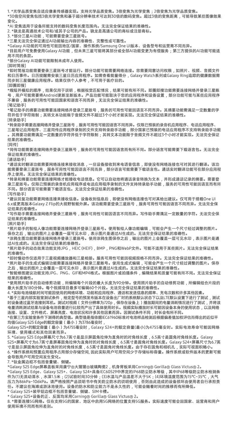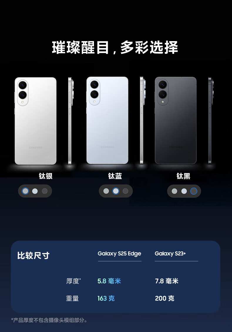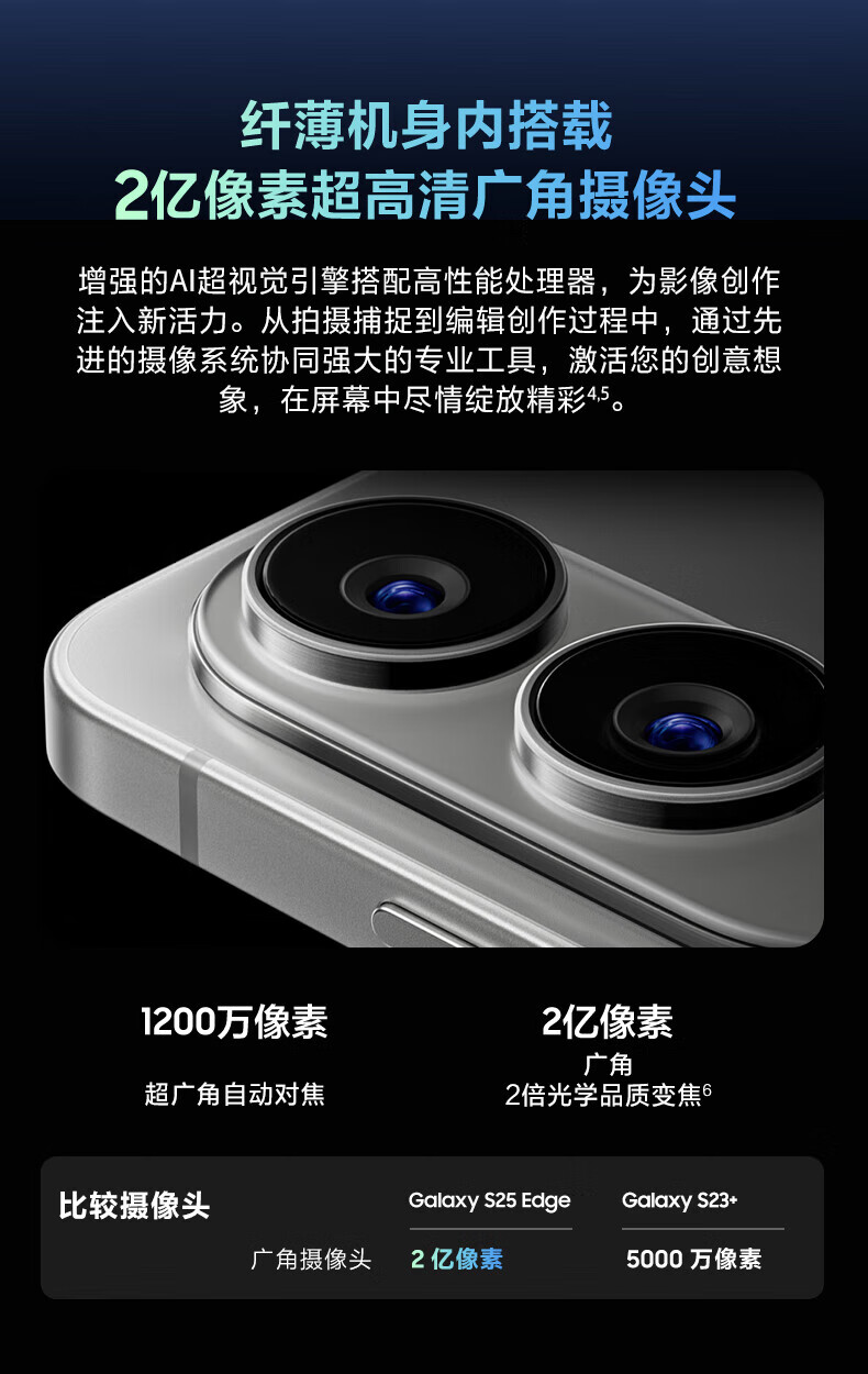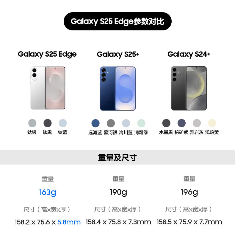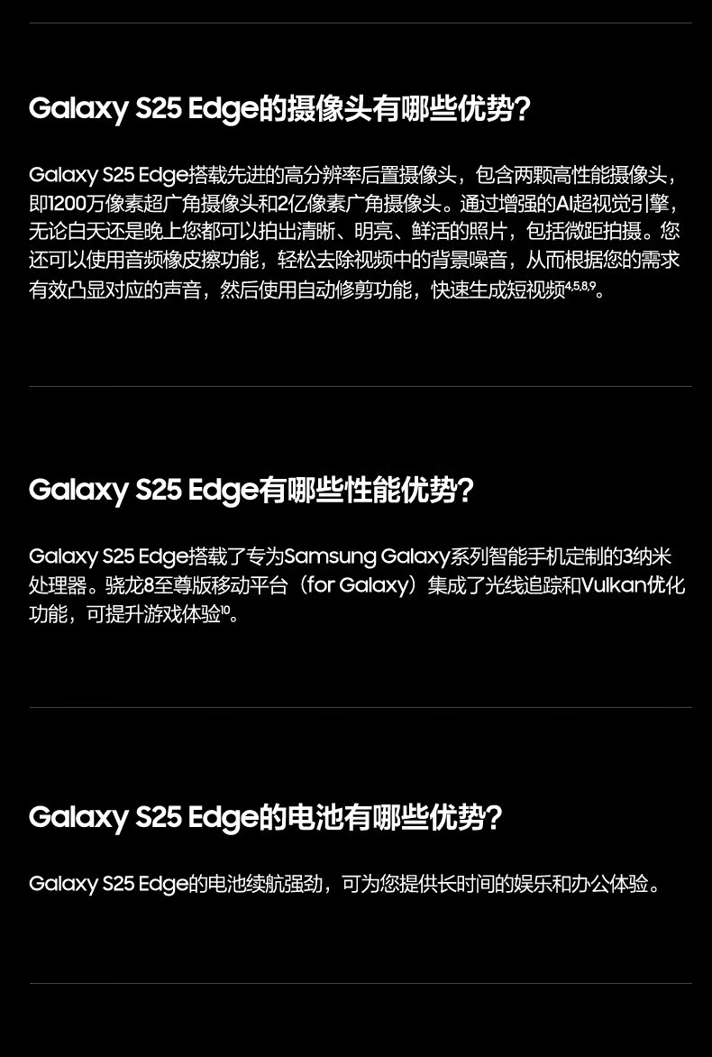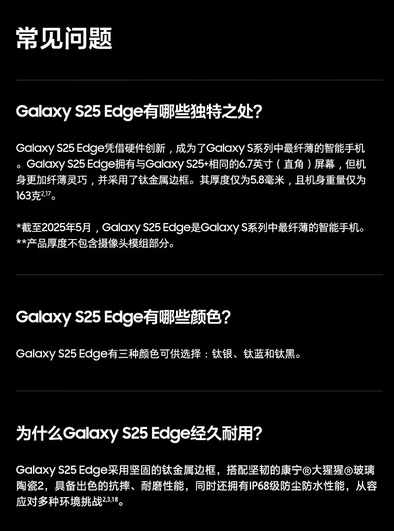 三星(SAMSUNG)Galaxy S25 Edge 5.8mm超纤薄机身 IP68耐用设计 骁龙8至尊版 2亿像素拍照旗舰AI手机 钛黑 12GB+256GB 官方标配