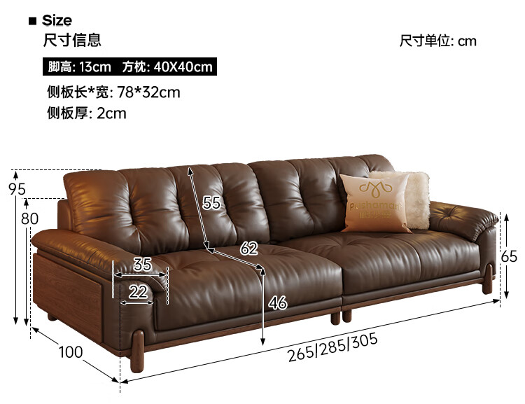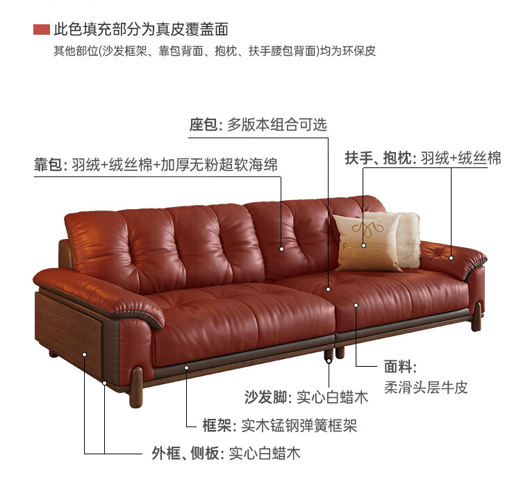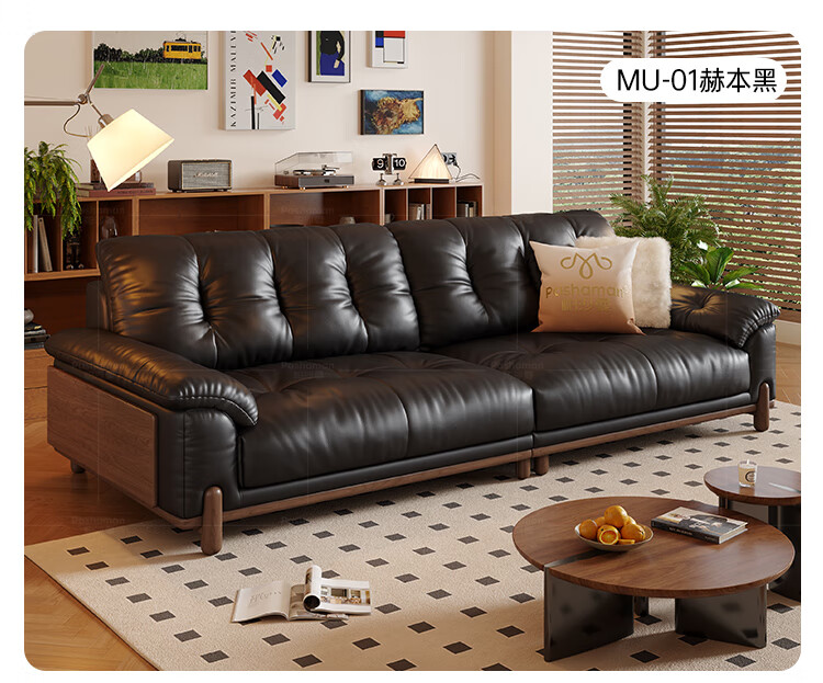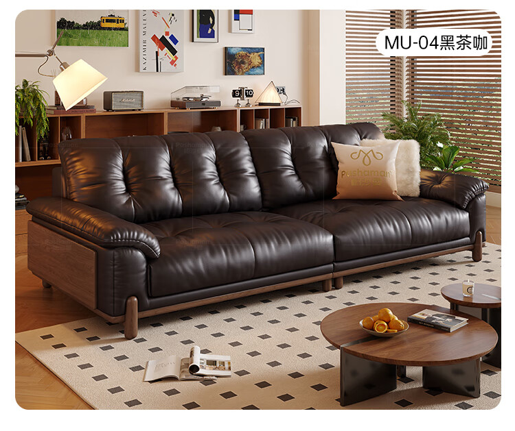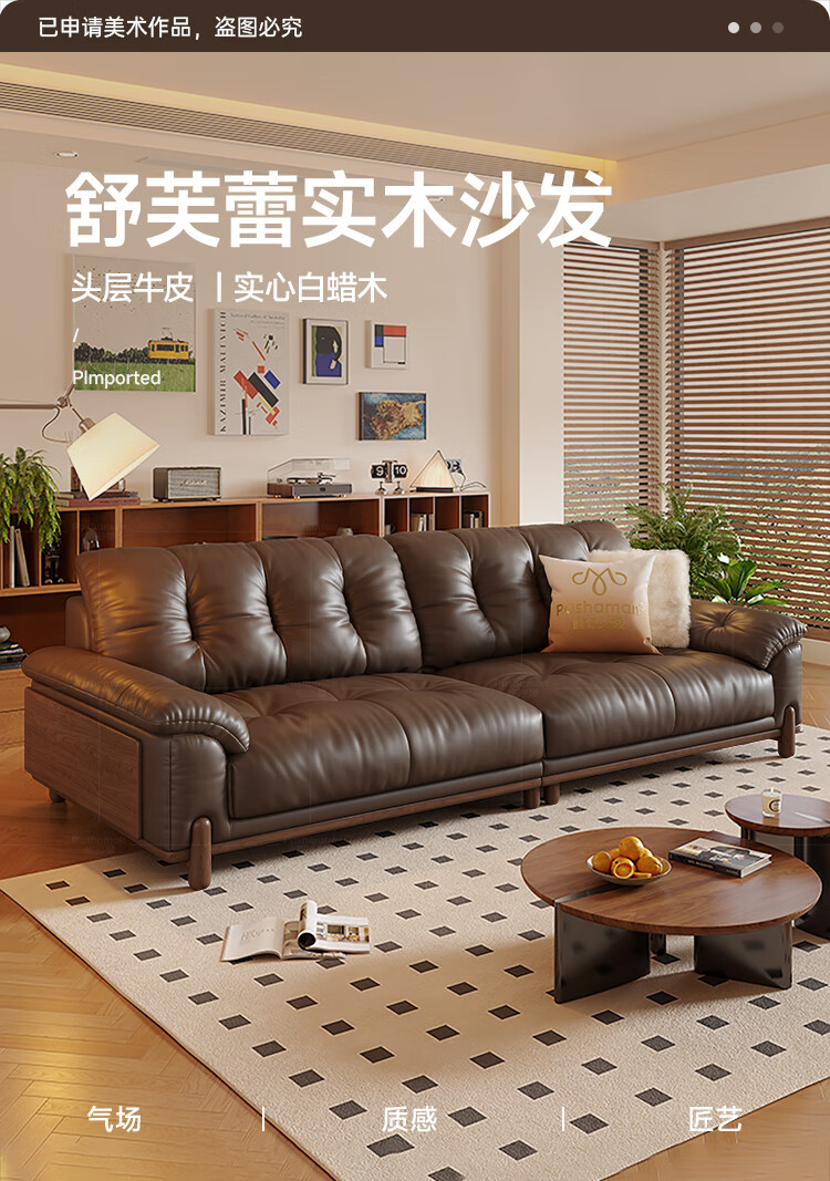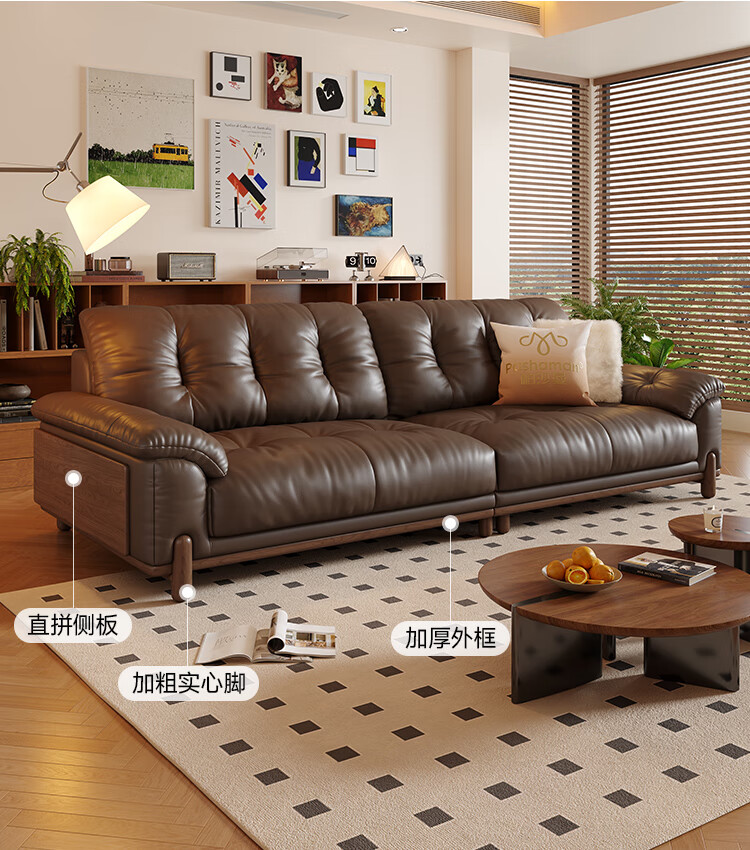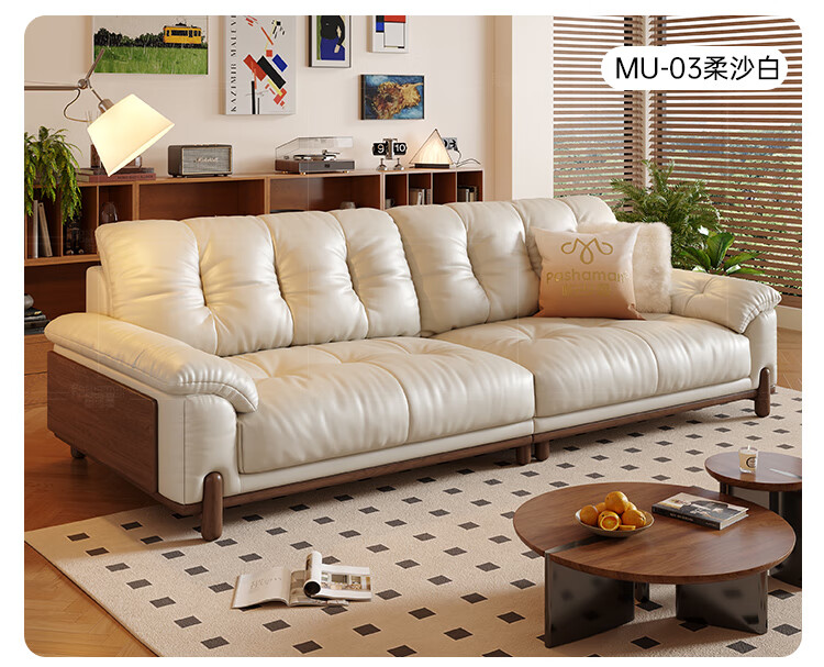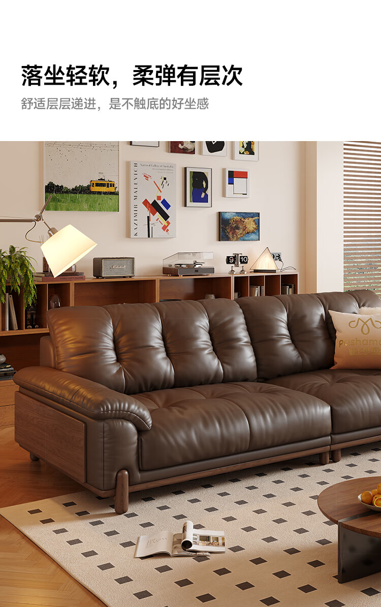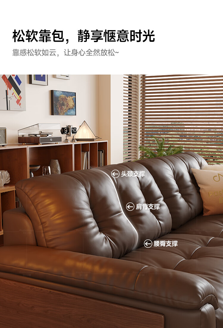 帕沙曼实木真皮沙发头层牛皮客厅中古风包豪斯新款云朵意式轻奢7165ZP 2.65米多人位 【旗舰版】MU真皮 硅胶棉+紫罗兰+竹炭海绵