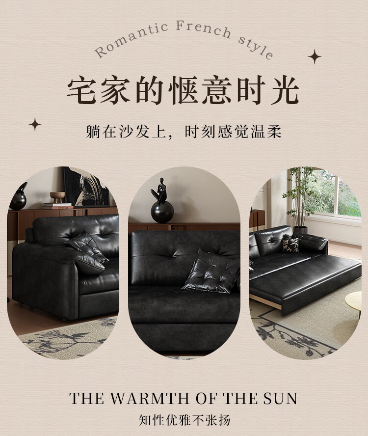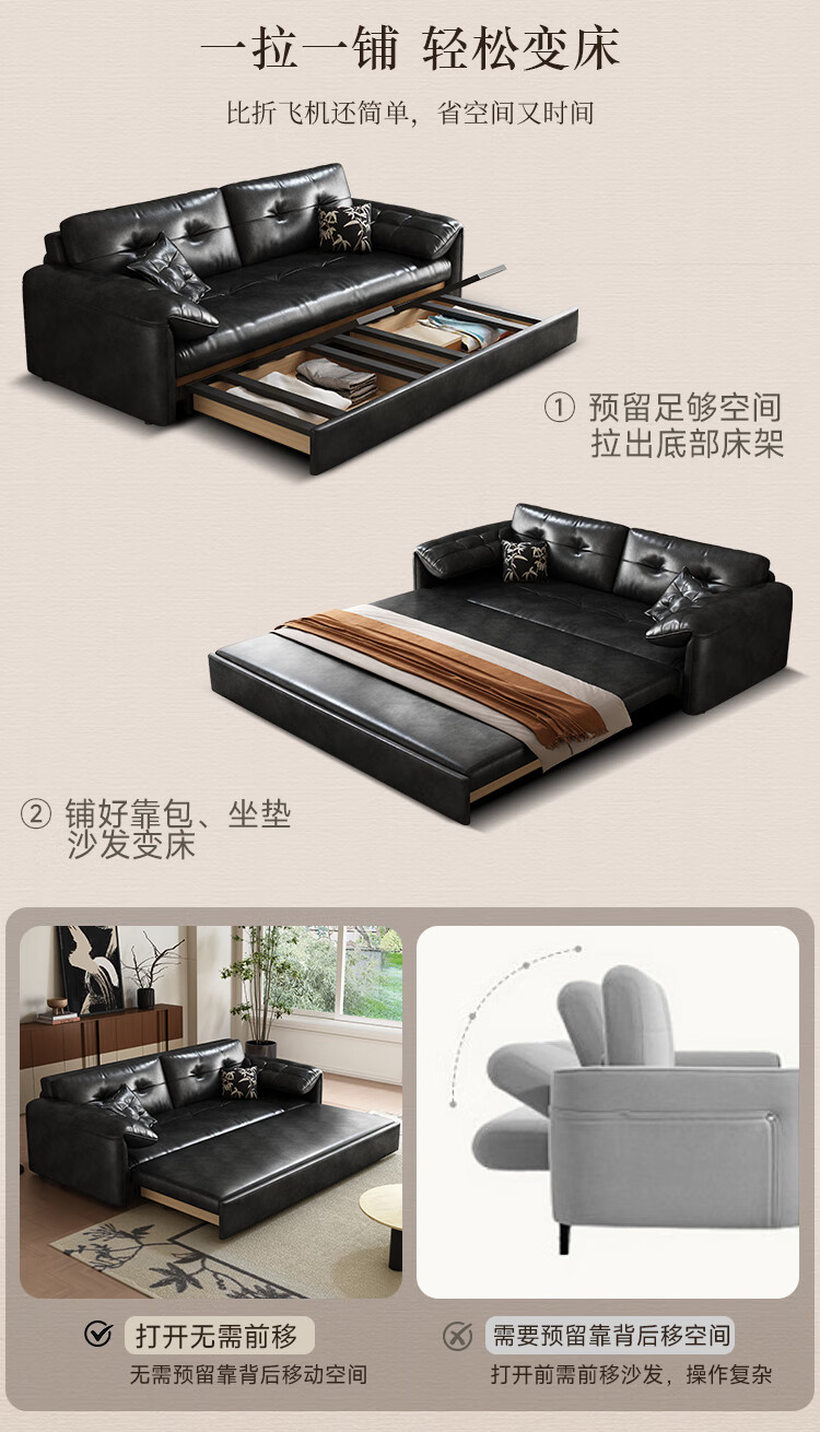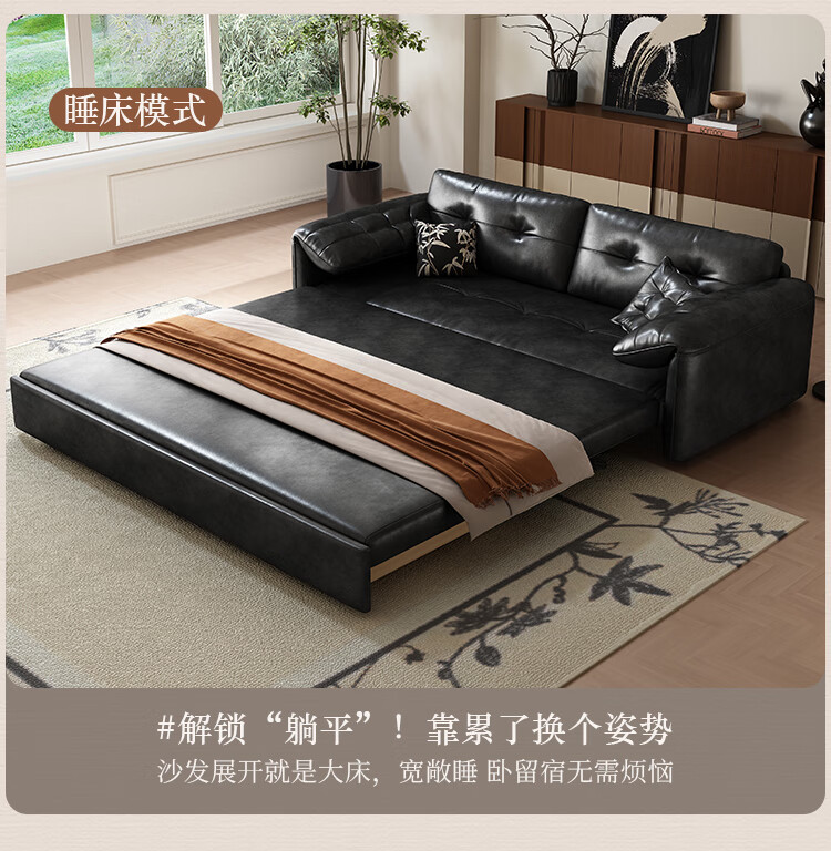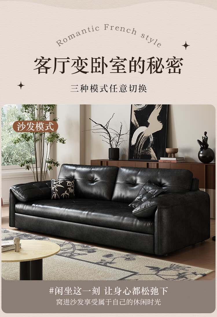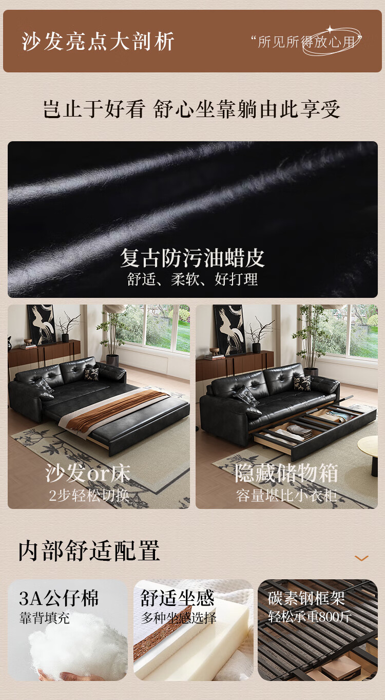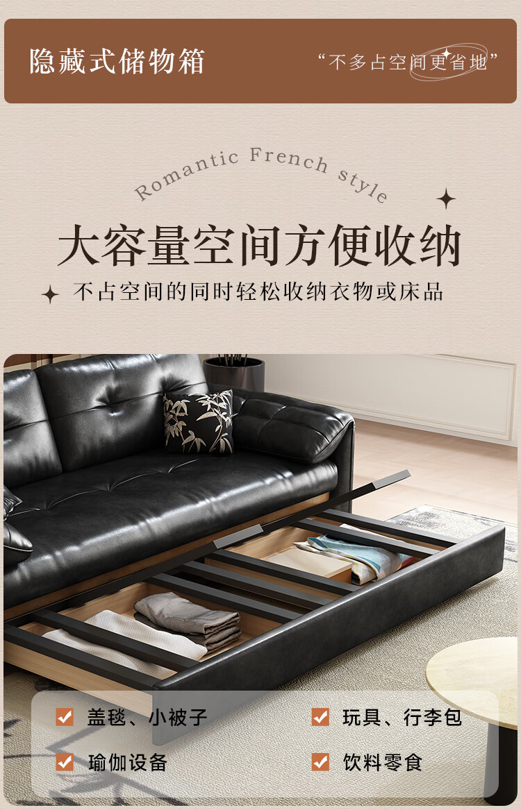 莘联原创复古风可折叠沙发床一体两用小户型客厅新款广东佛山伸缩沙发 外径:1.26m(无储物)S+级油蜡皮 高弹海绵款(软硬适中)