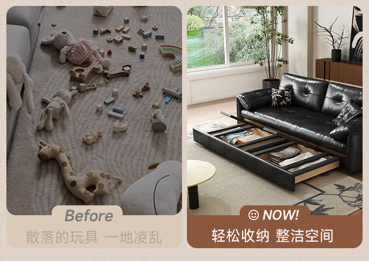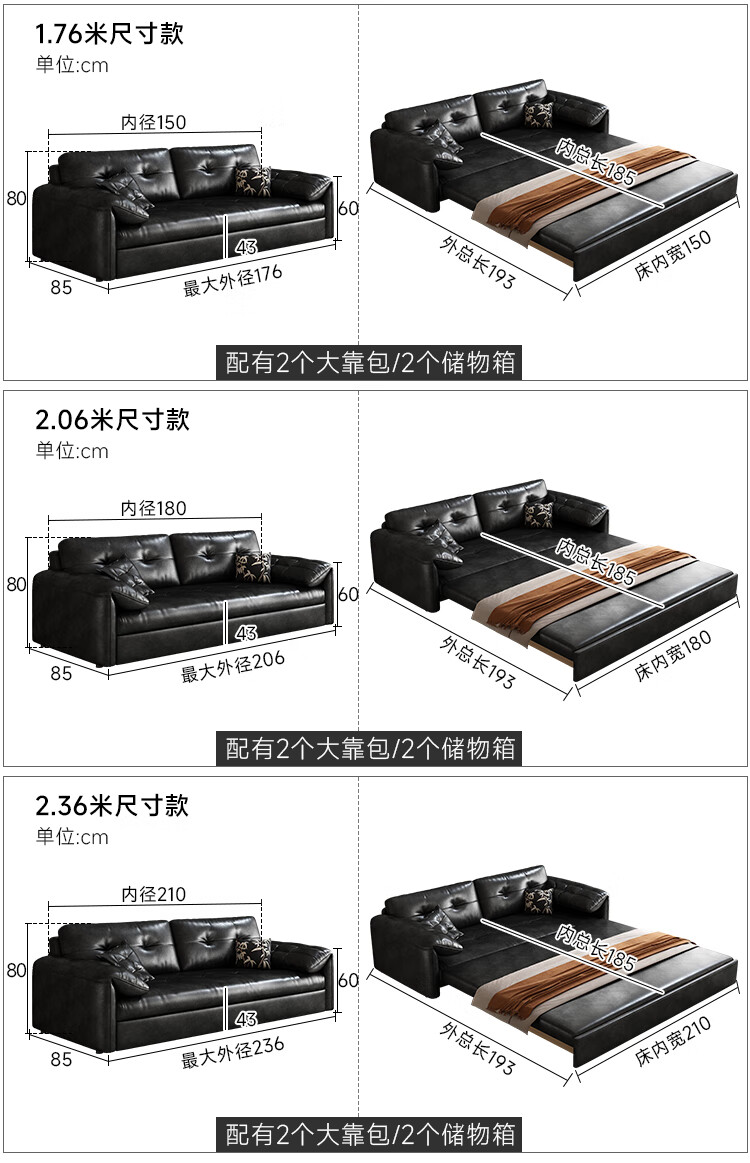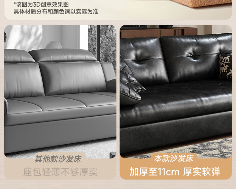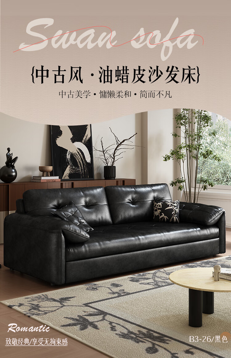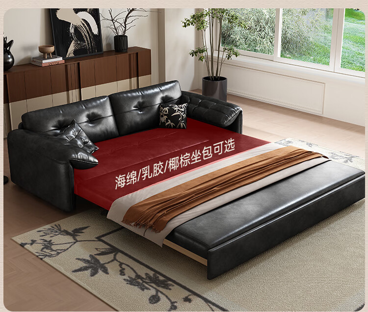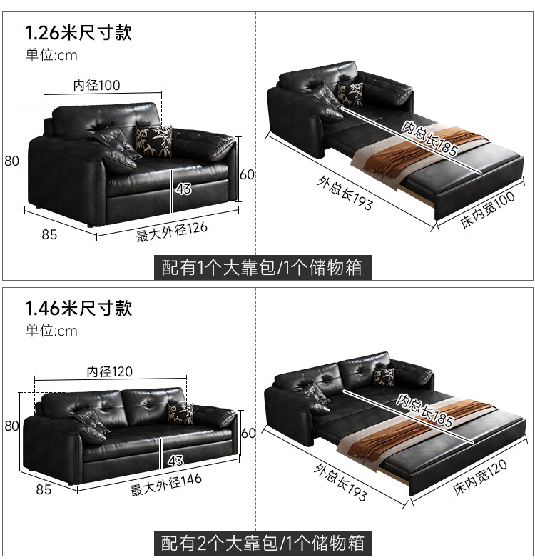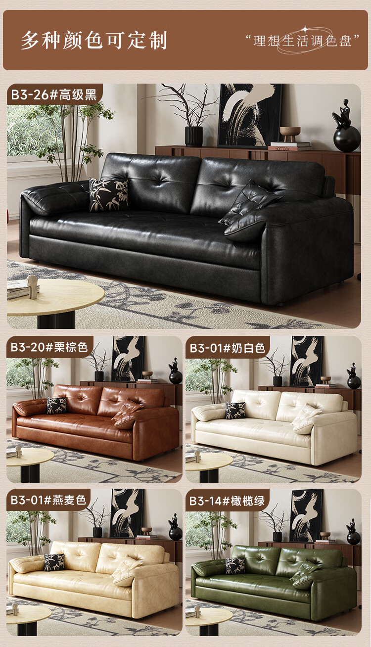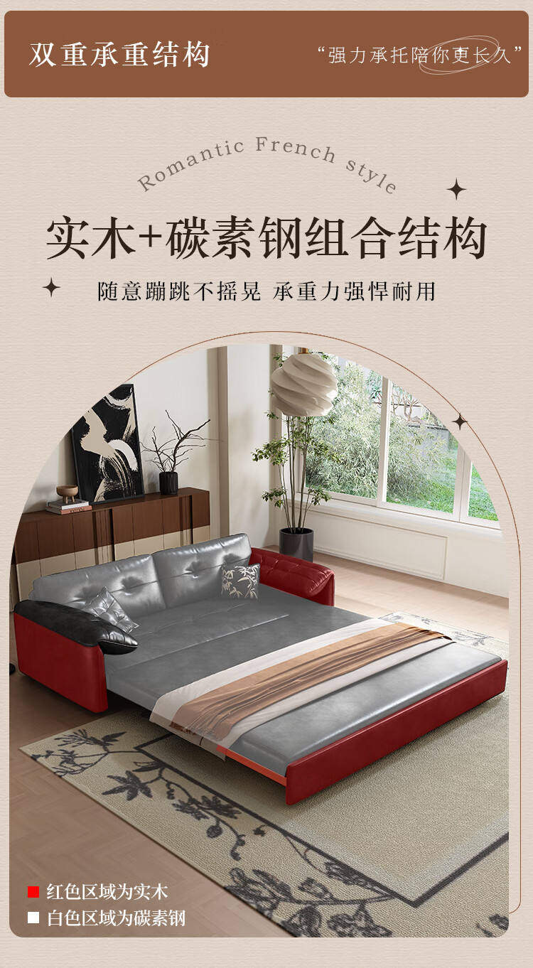 莘联原创复古风可折叠沙发床一体两用小户型客厅新款广东佛山伸缩沙发 外径:1.26m(无储物)S+级油蜡皮 高弹海绵款(软硬适中)