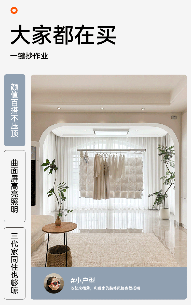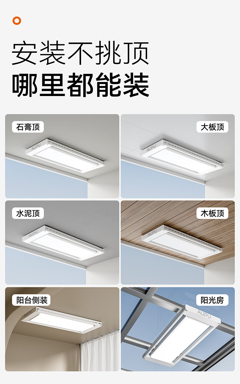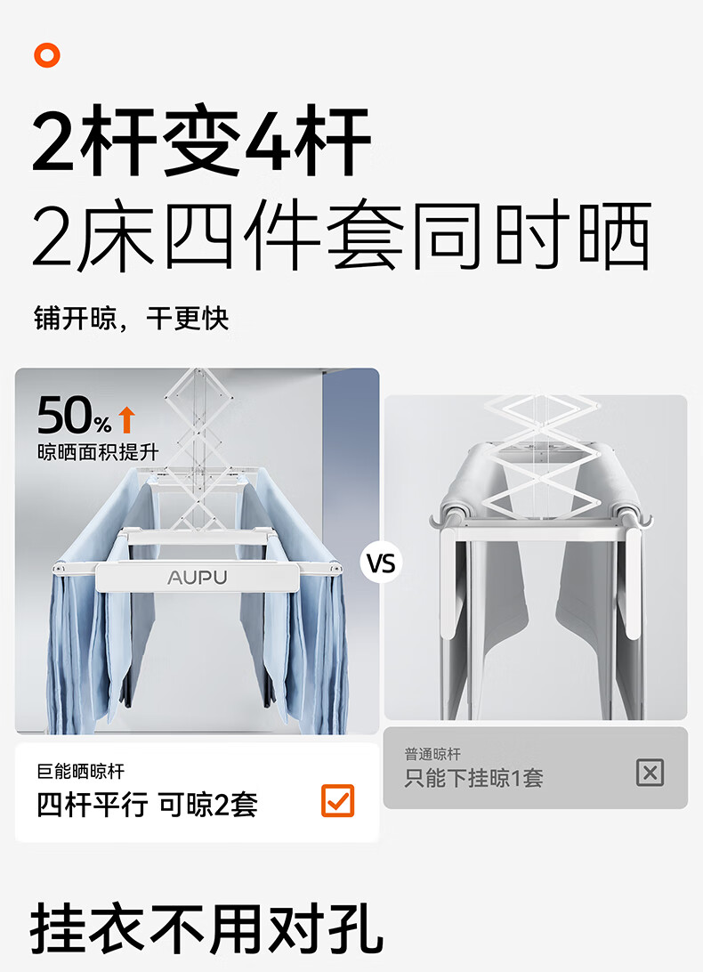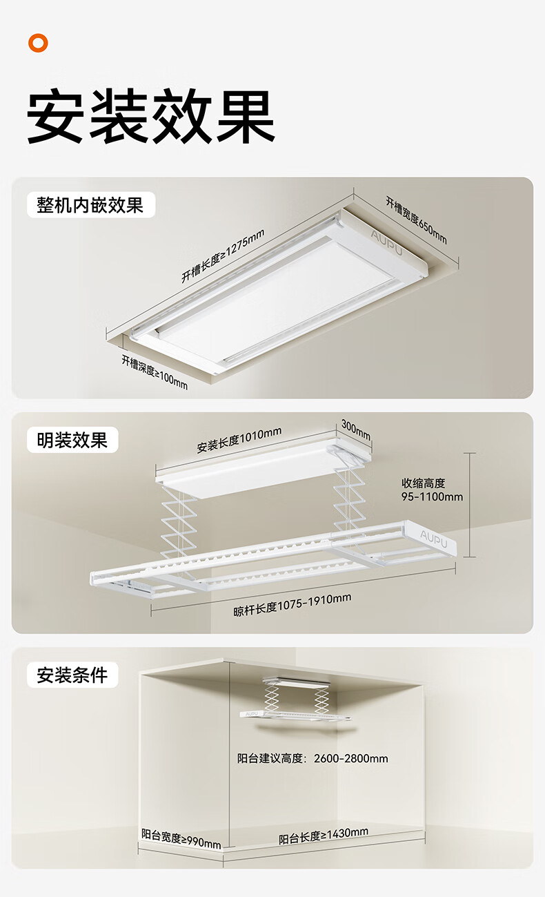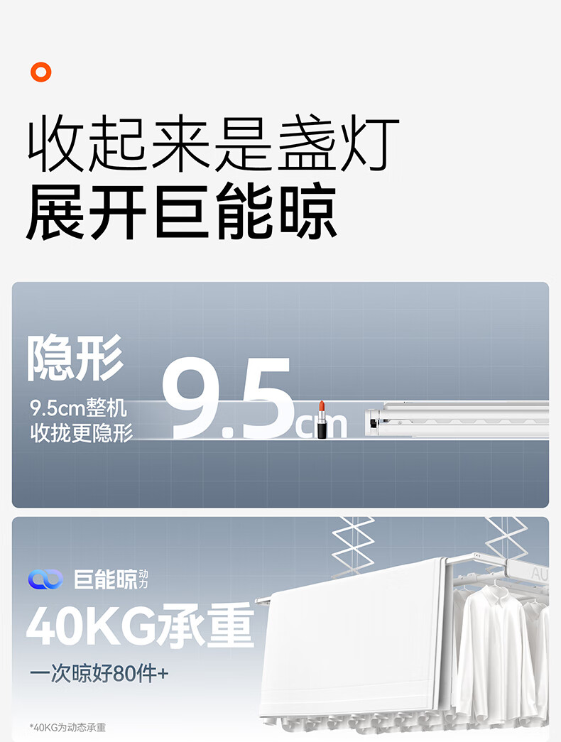 奥普(AUPU)智能晾衣机【政府补贴】电动隐形超薄遥控升降伸缩晾衣杆照明D350 D350S声控款丨伸缩四杆+整机超薄+大屏照明+声控