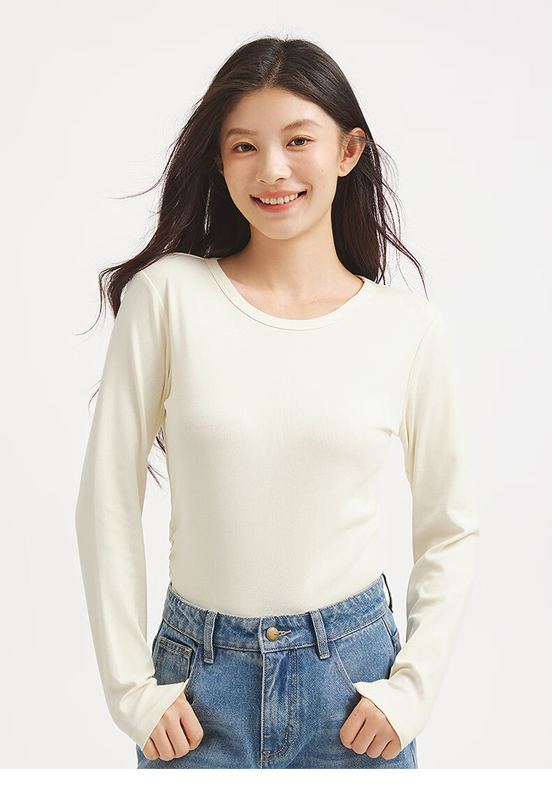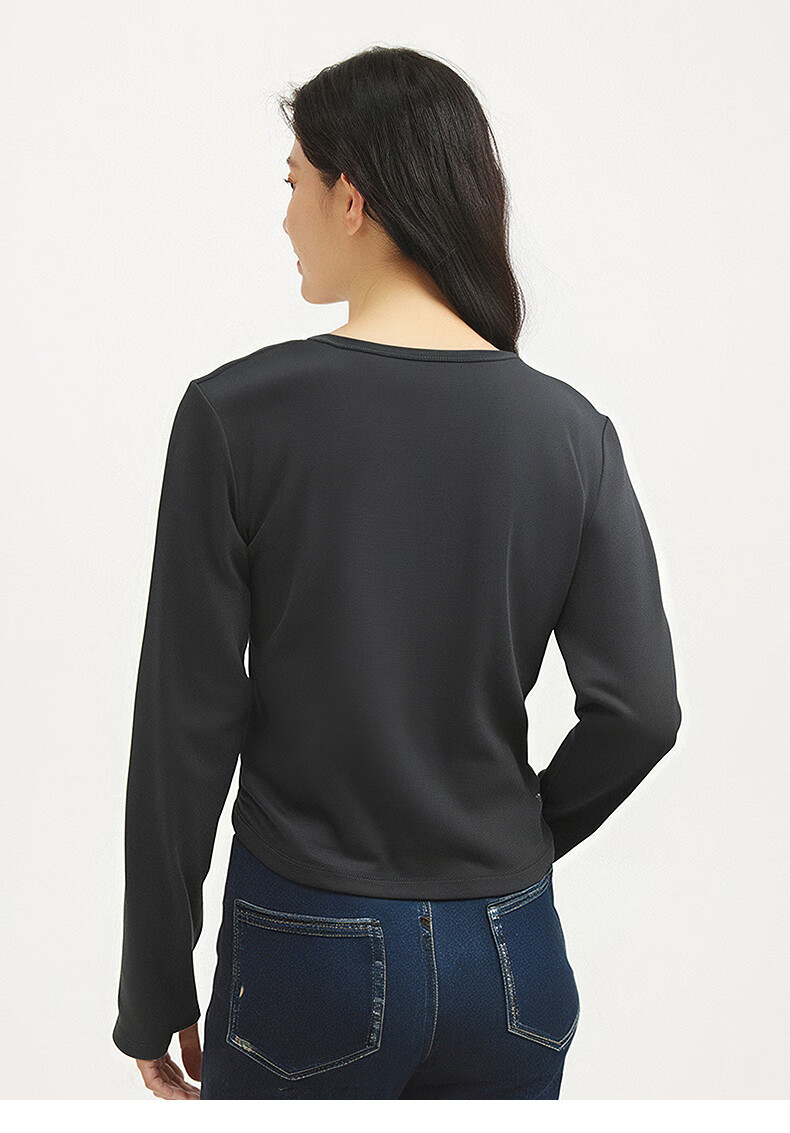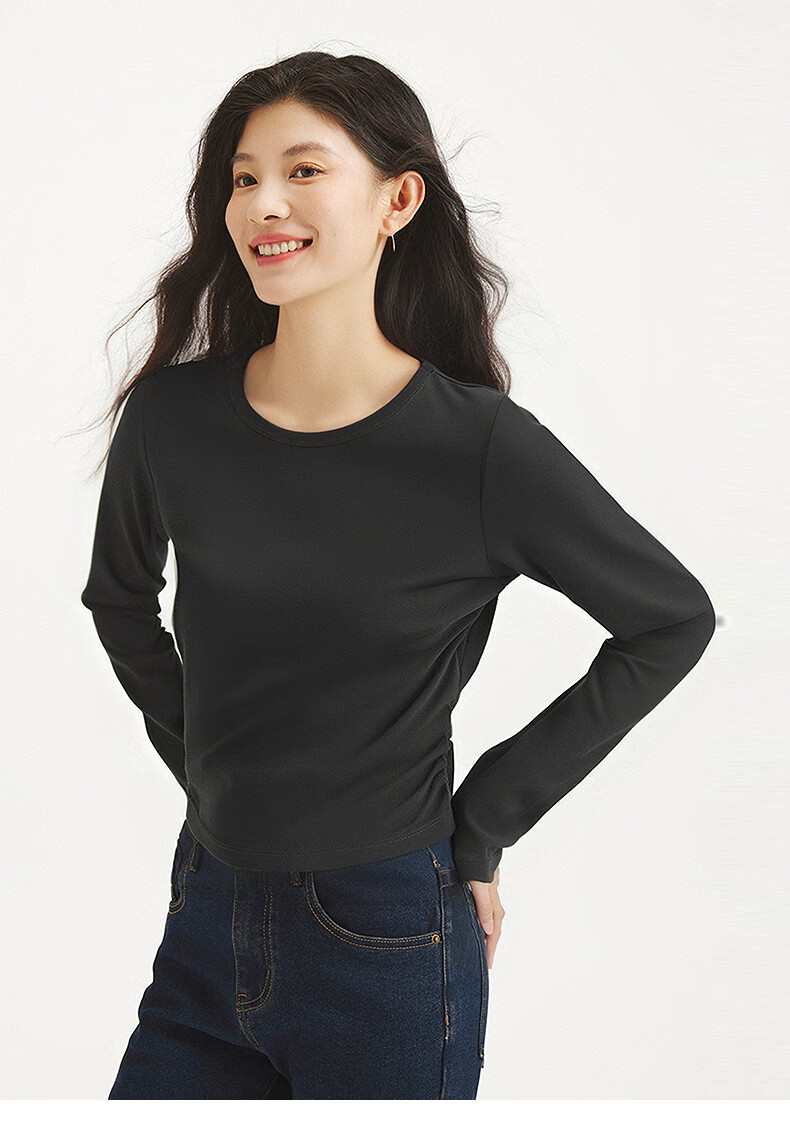 热风(Hotwind)女士长袖T恤上衣2025年秋季新款圆领收腰显瘦基础款百搭长袖T 52深灰 S