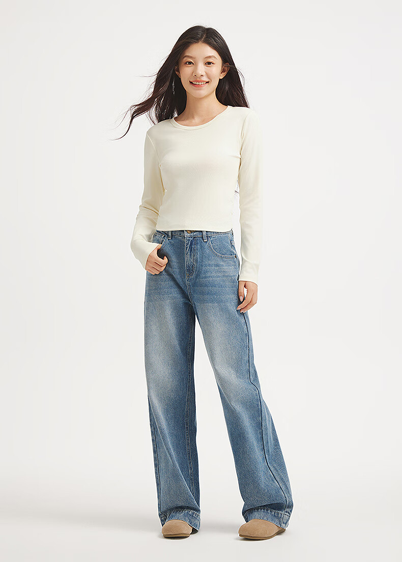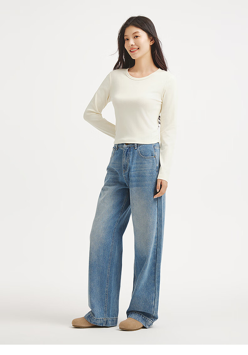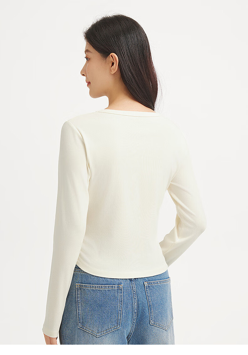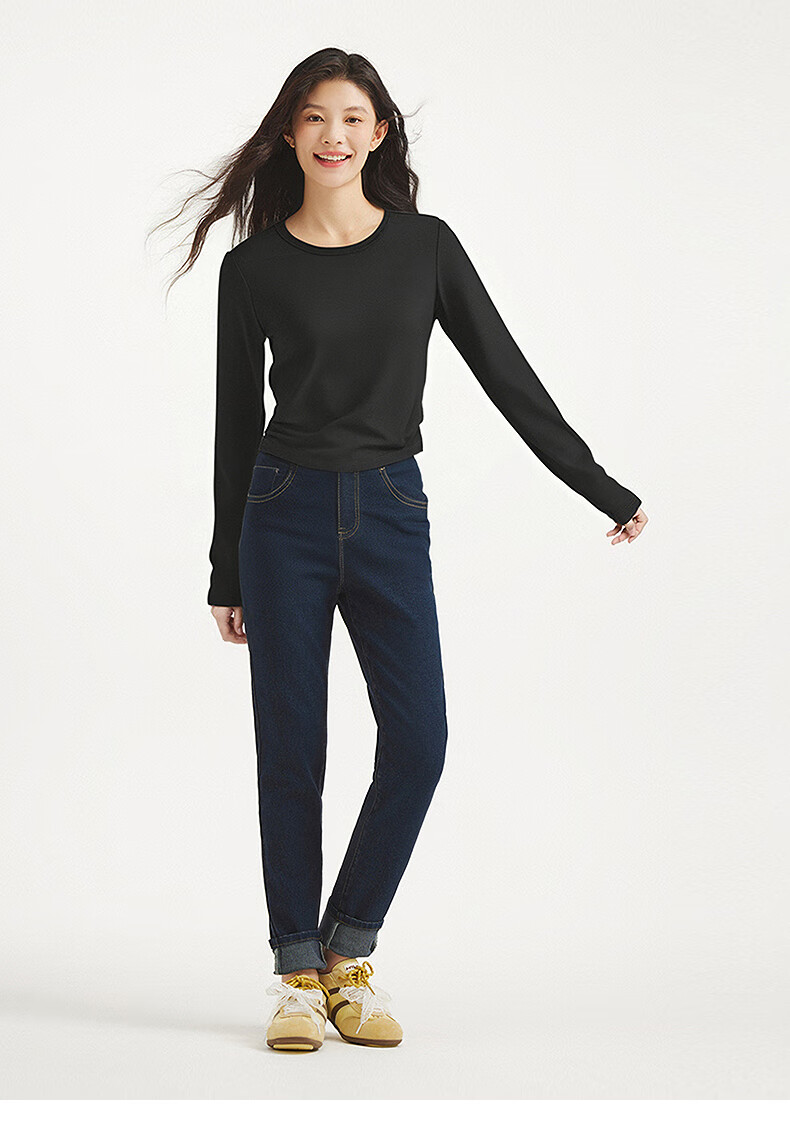 热风(Hotwind)女士长袖T恤上衣2025年秋季新款圆领收腰显瘦基础款百搭长袖T 52深灰 S