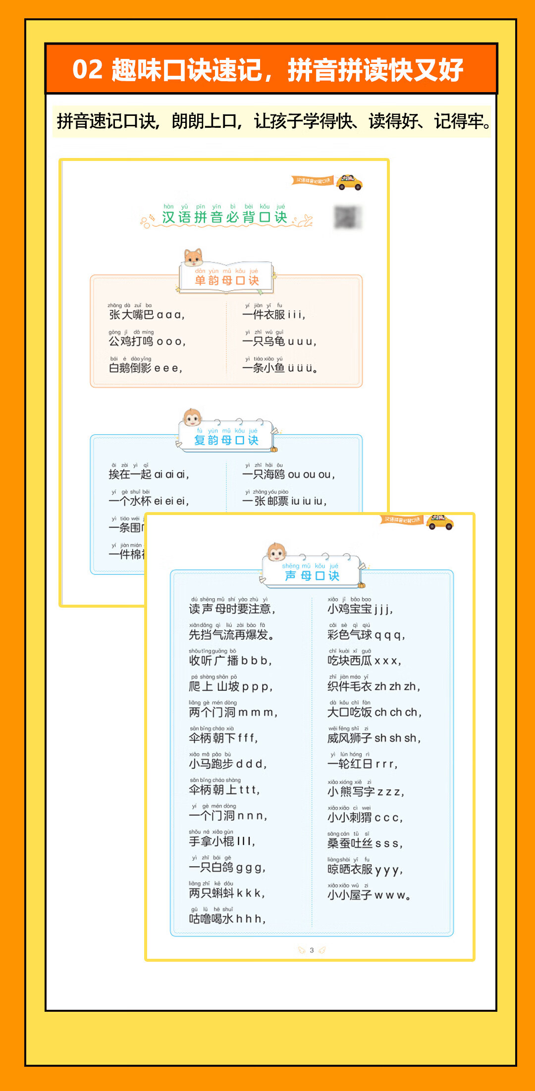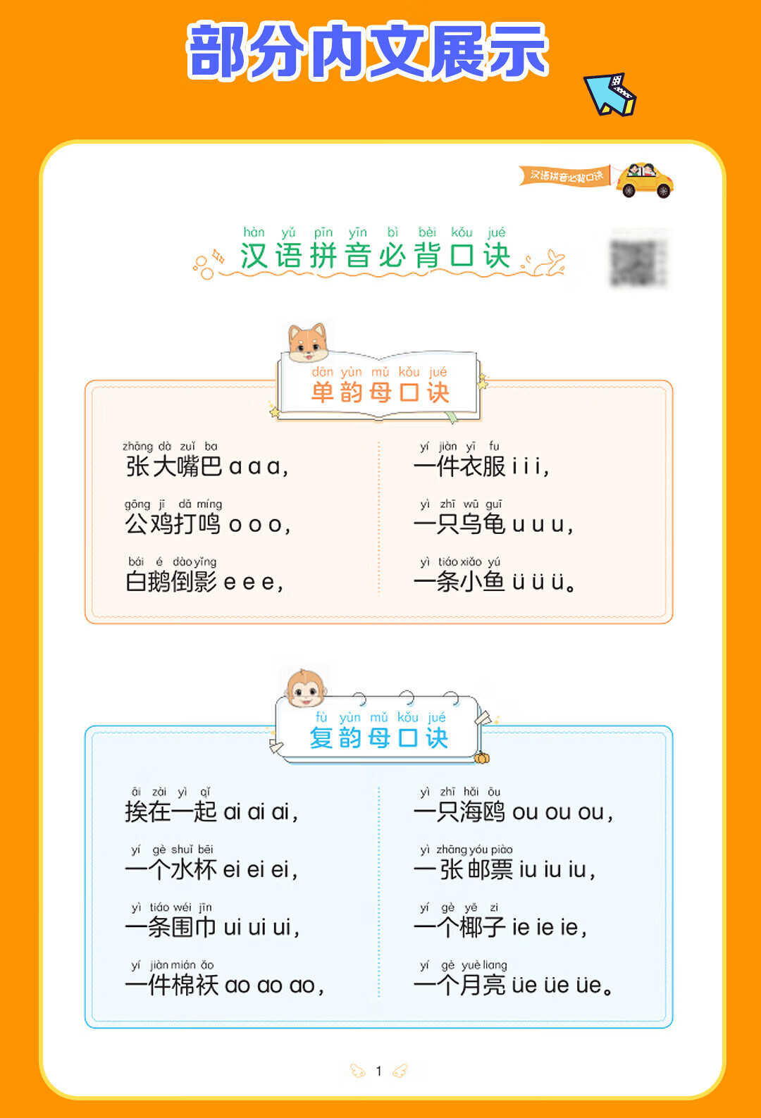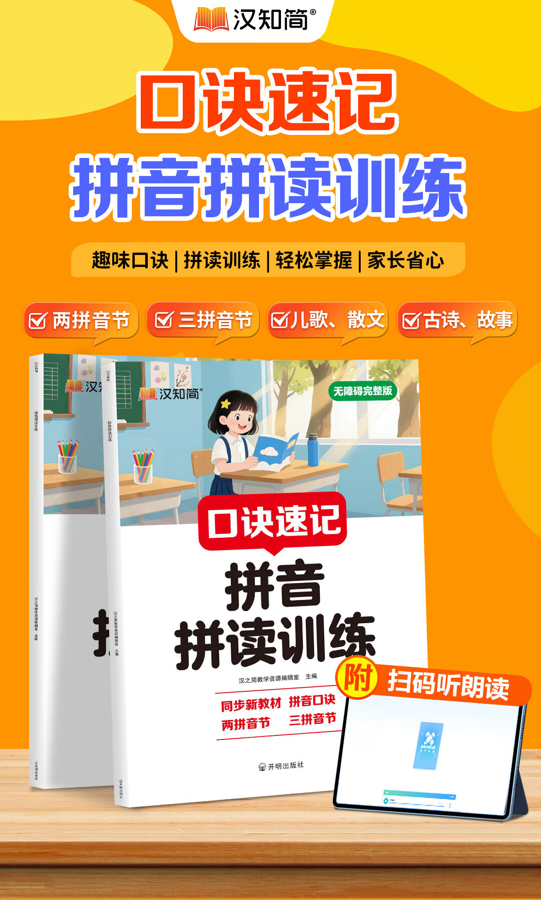 【一年级拼音拼读训练】口诀速记音节拼读学好拼音小学一二年级语文声母韵母整体认读音节练习幼小衔接同步新教材拼音核心知识扫码听朗读无障碍完整版启明星汉知简 口诀速记拼音拼读训练