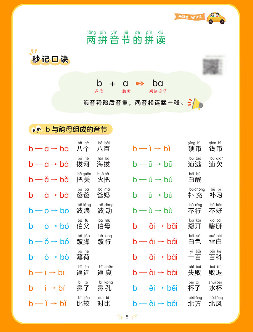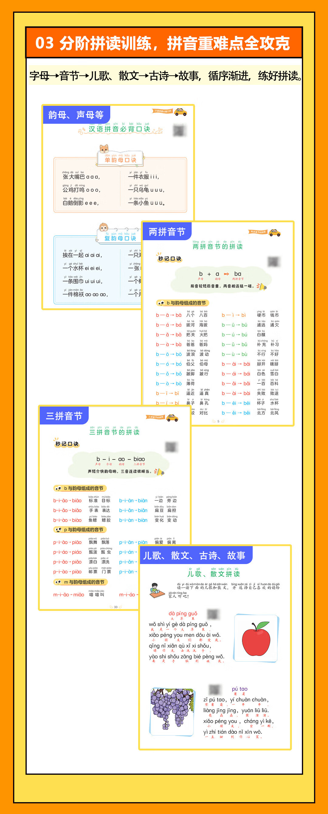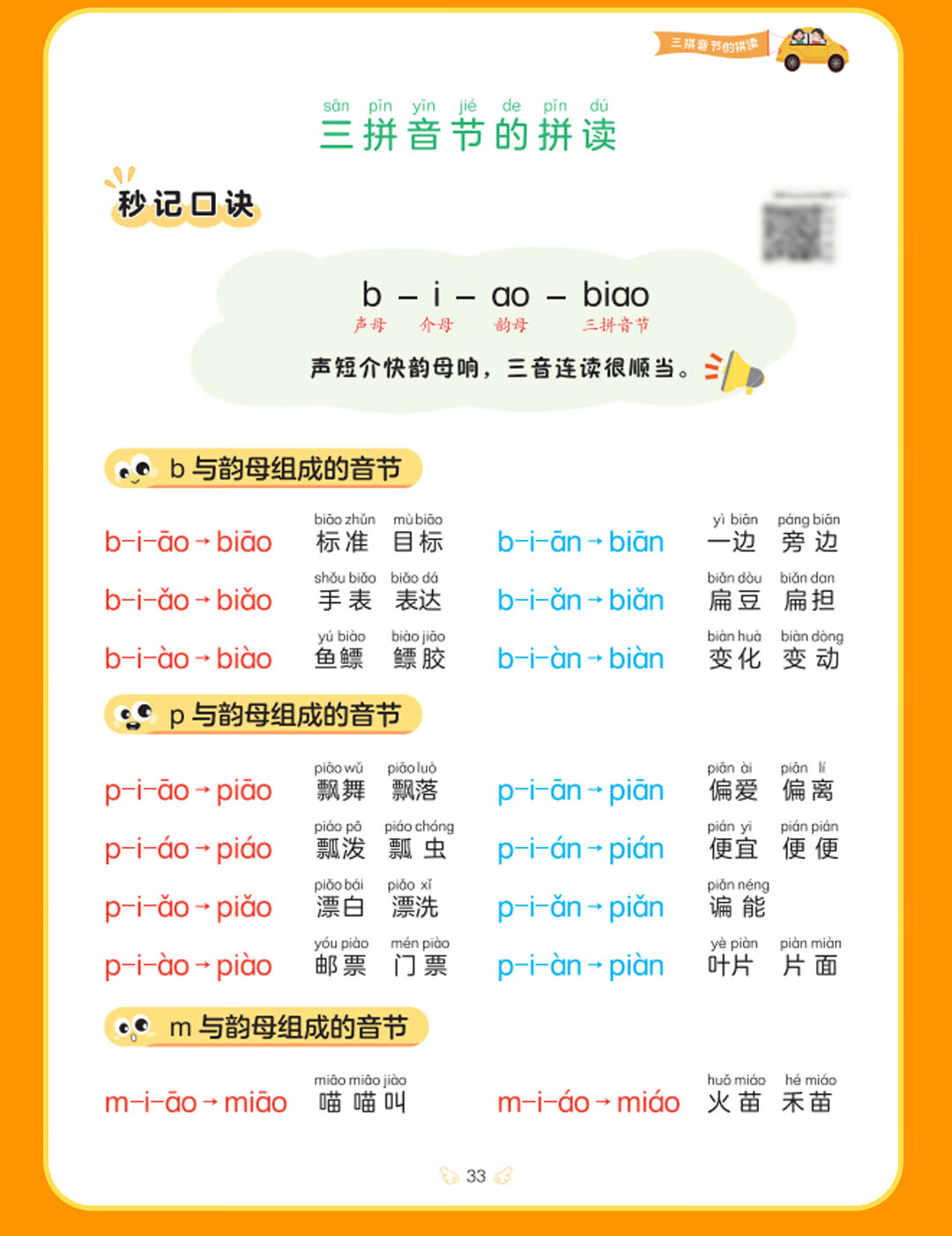 【一年级拼音拼读训练】口诀速记音节拼读学好拼音小学一二年级语文声母韵母整体认读音节练习幼小衔接同步新教材拼音核心知识扫码听朗读无障碍完整版启明星汉知简 口诀速记拼音拼读训练