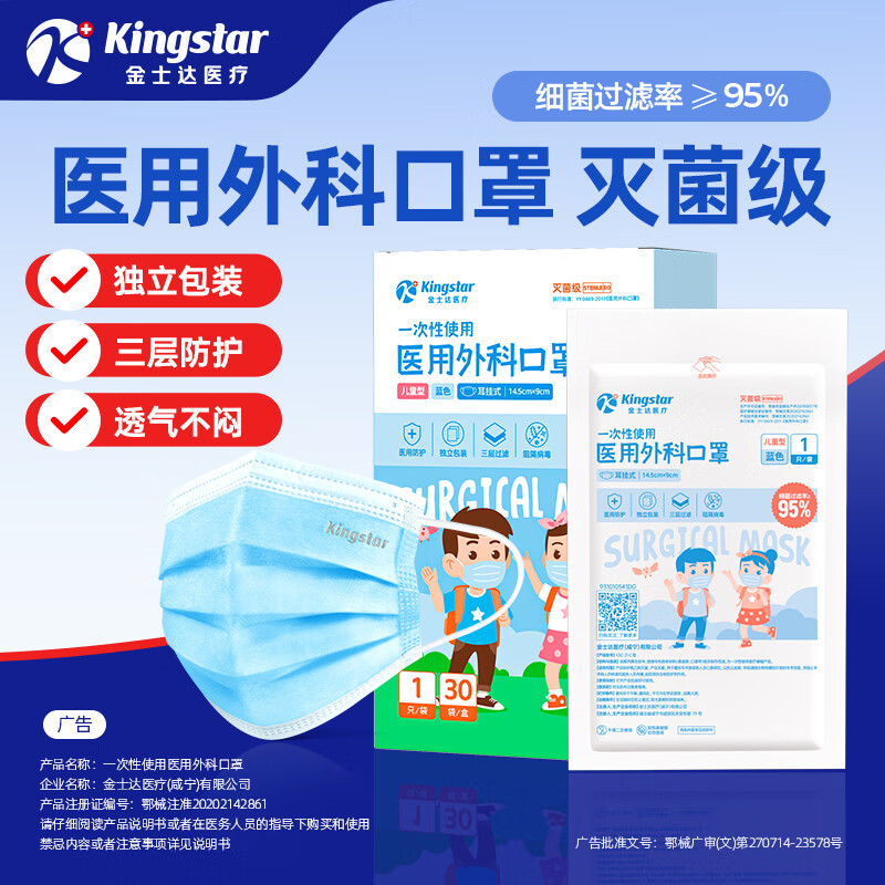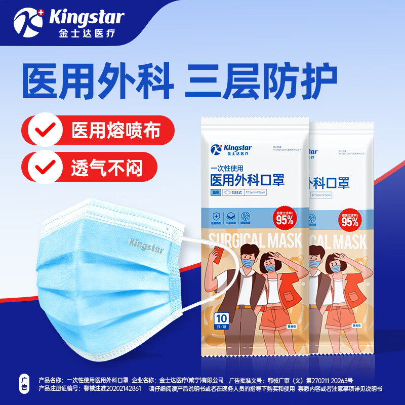 金士达tk一次性医用外科口罩3层防护过滤病菌男女医用口罩 【便携式】医用外科口罩10只*10袋共100只