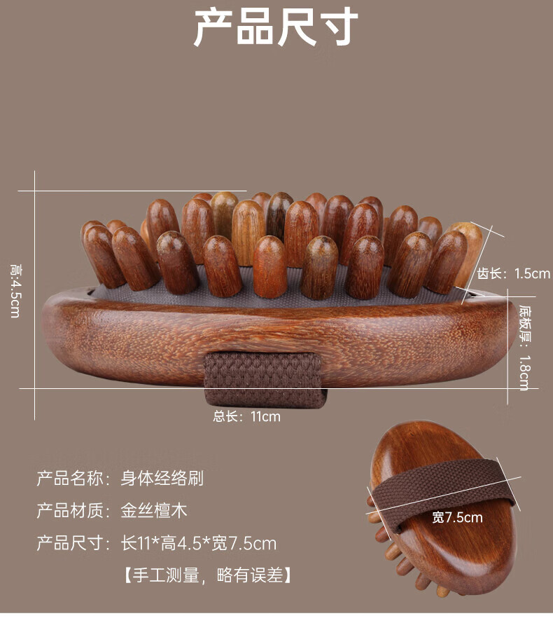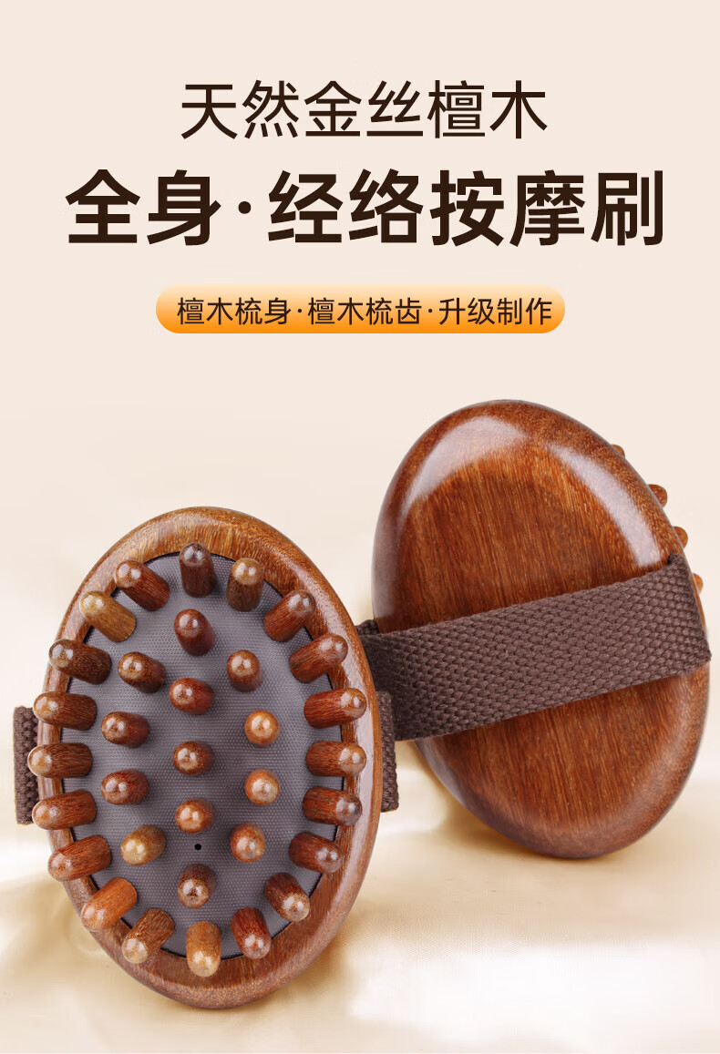 通用檀木带脉经络刷按摩神器全身通用疏通燃脂揉腹部腿肚子肝胆筋络 [金丝檀木]身体·经络刷原木色