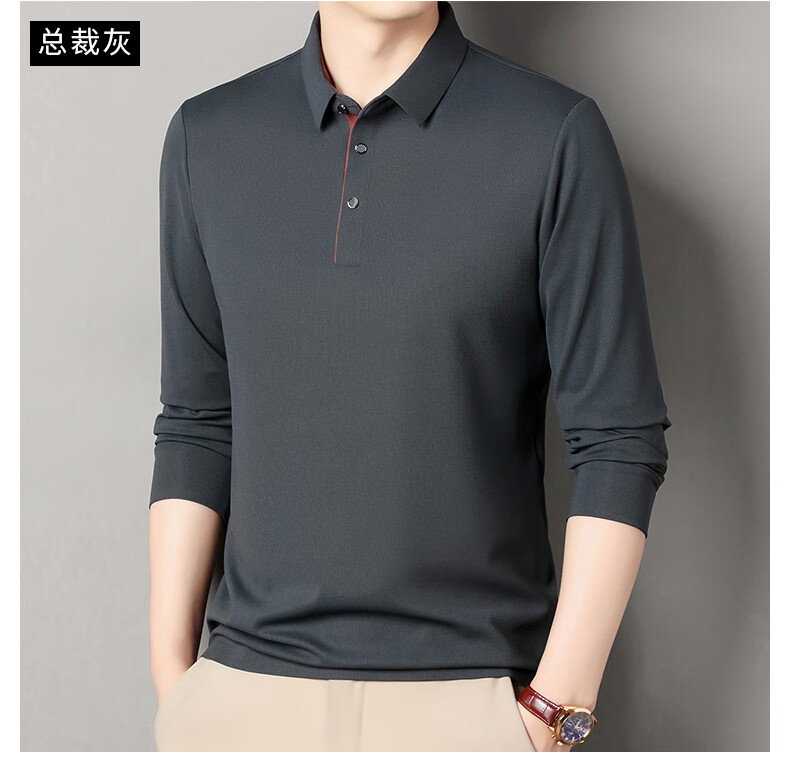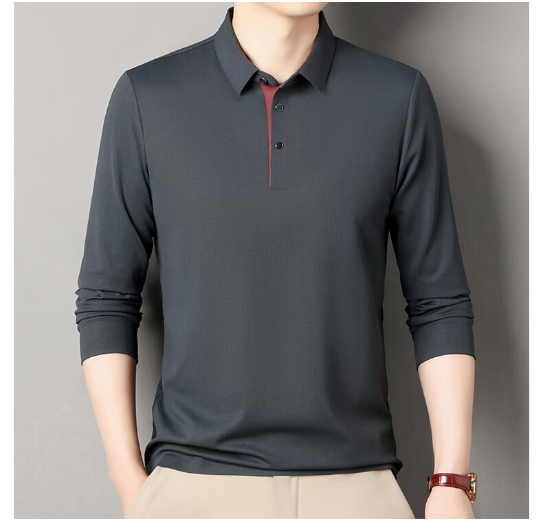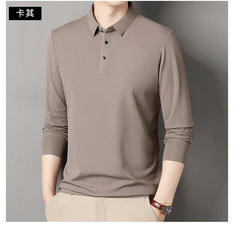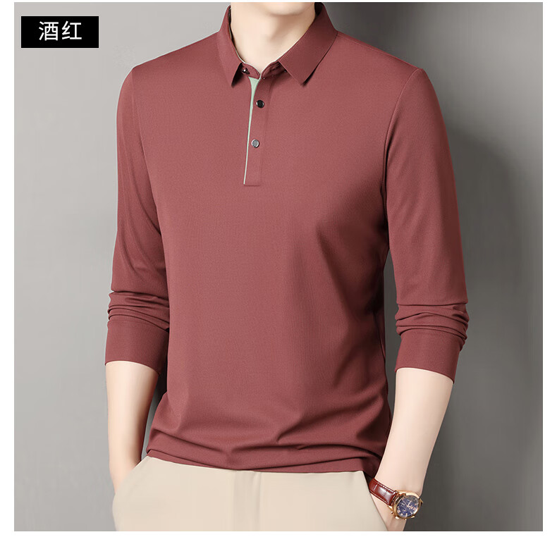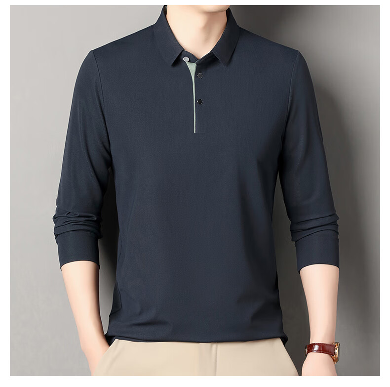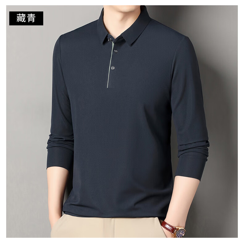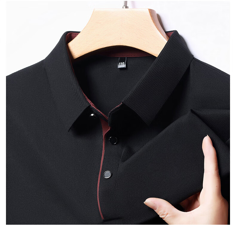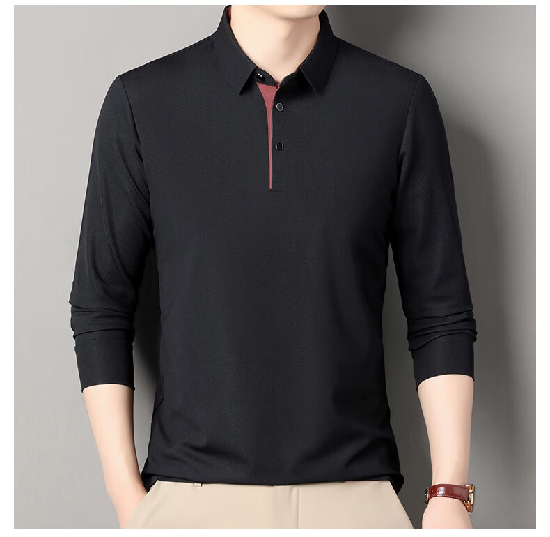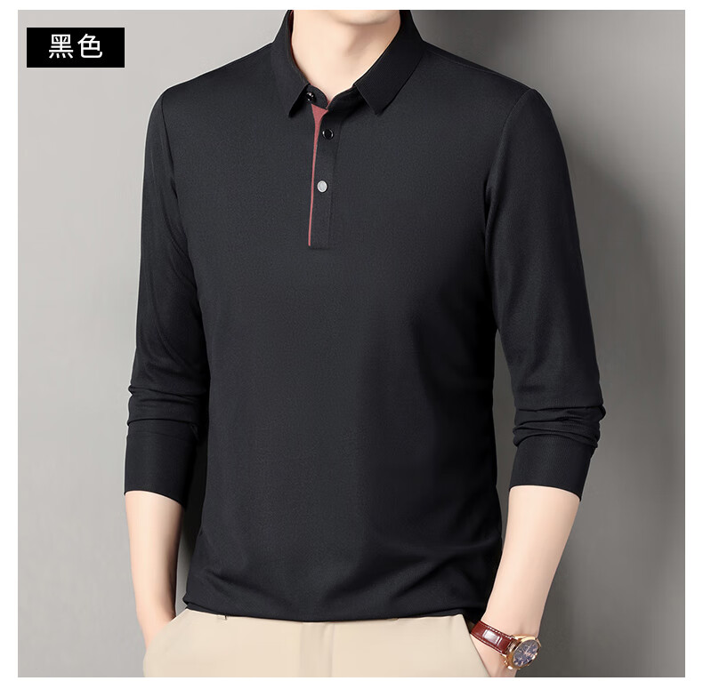 俞兆林男士长袖T恤春秋季新款商务休闲纯色POLO衫中青年翻领打底体恤衫 黑色 M (165) (建议100到120斤穿)