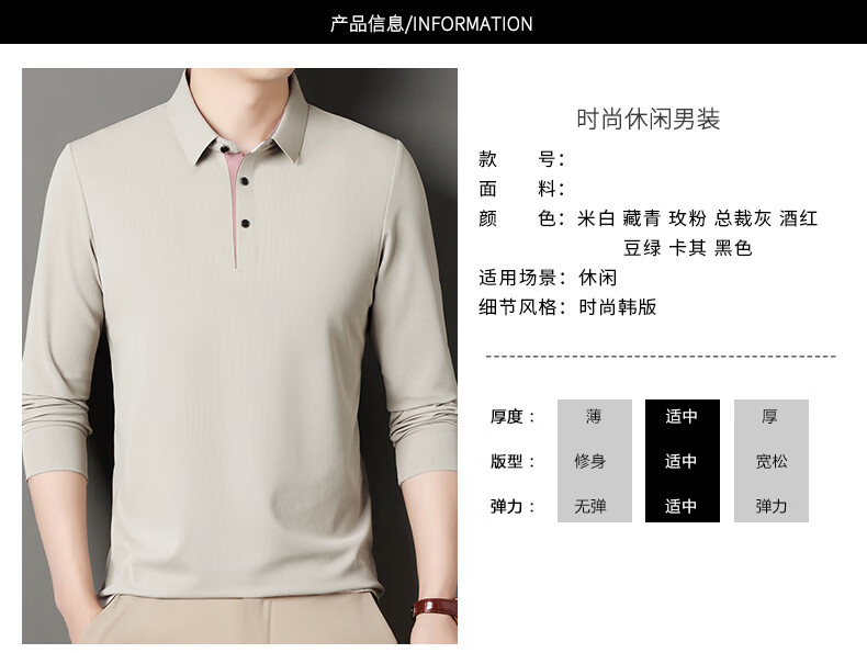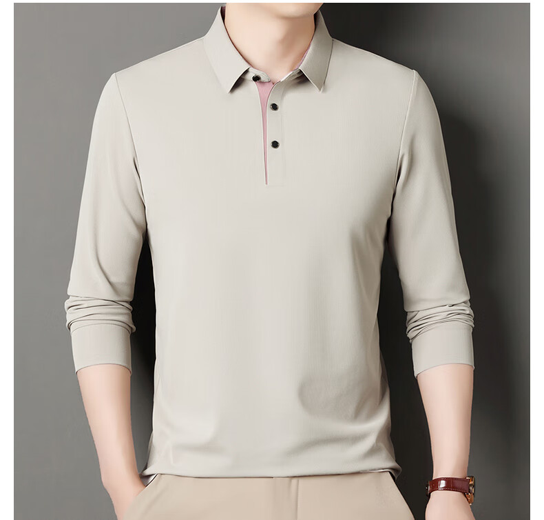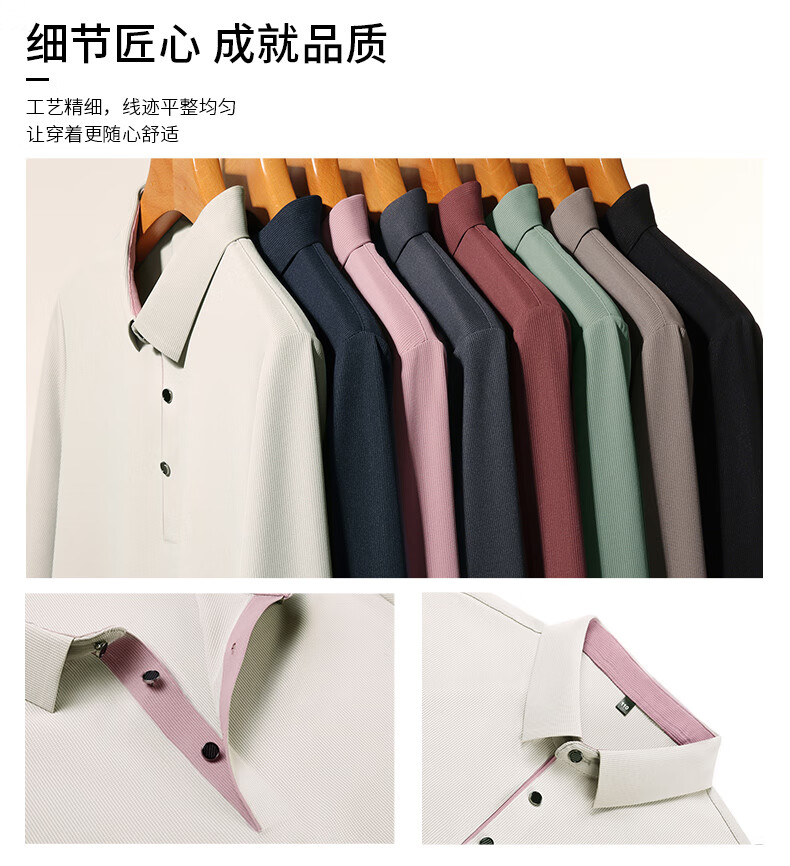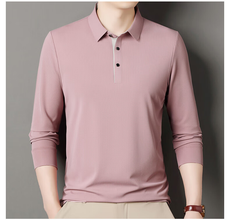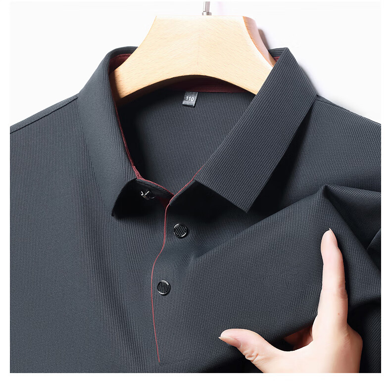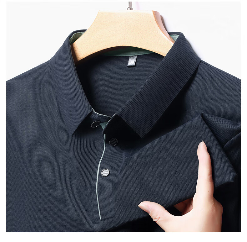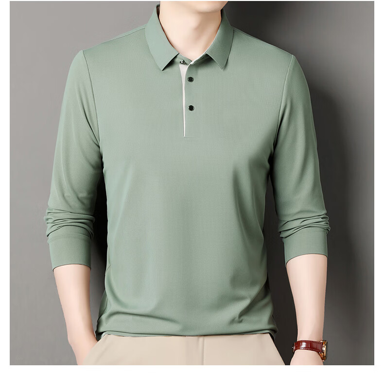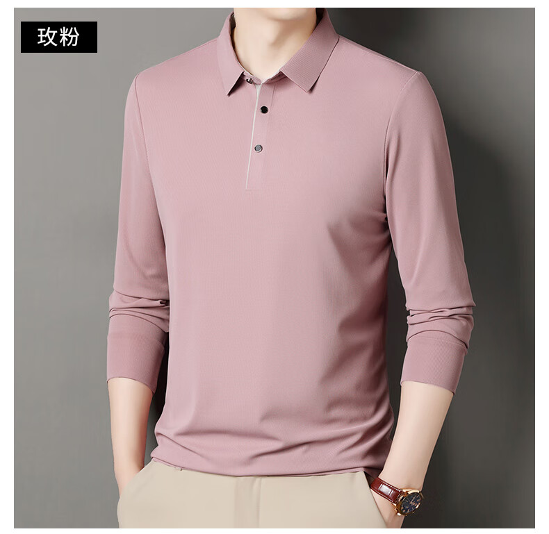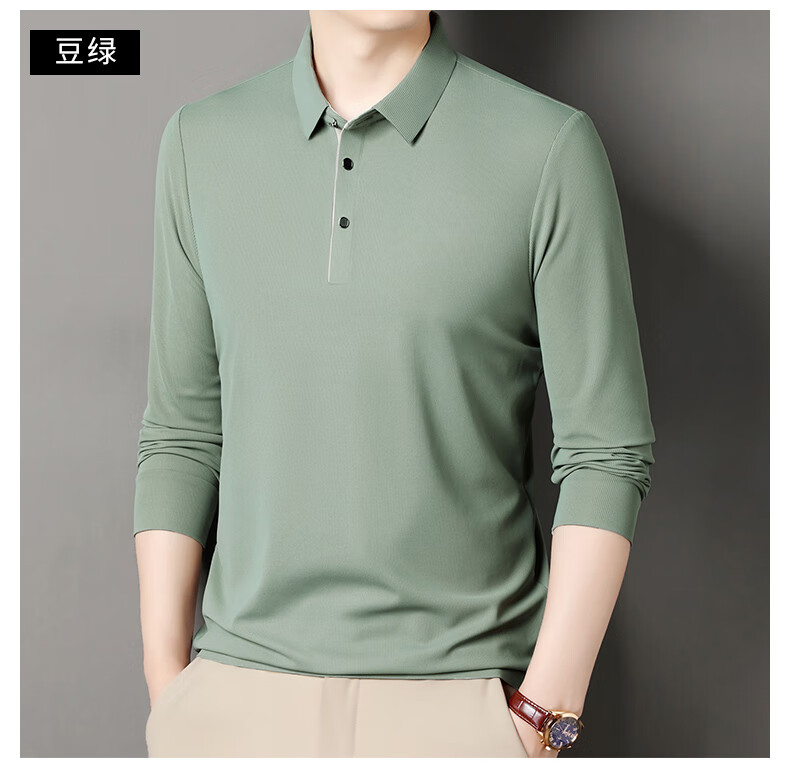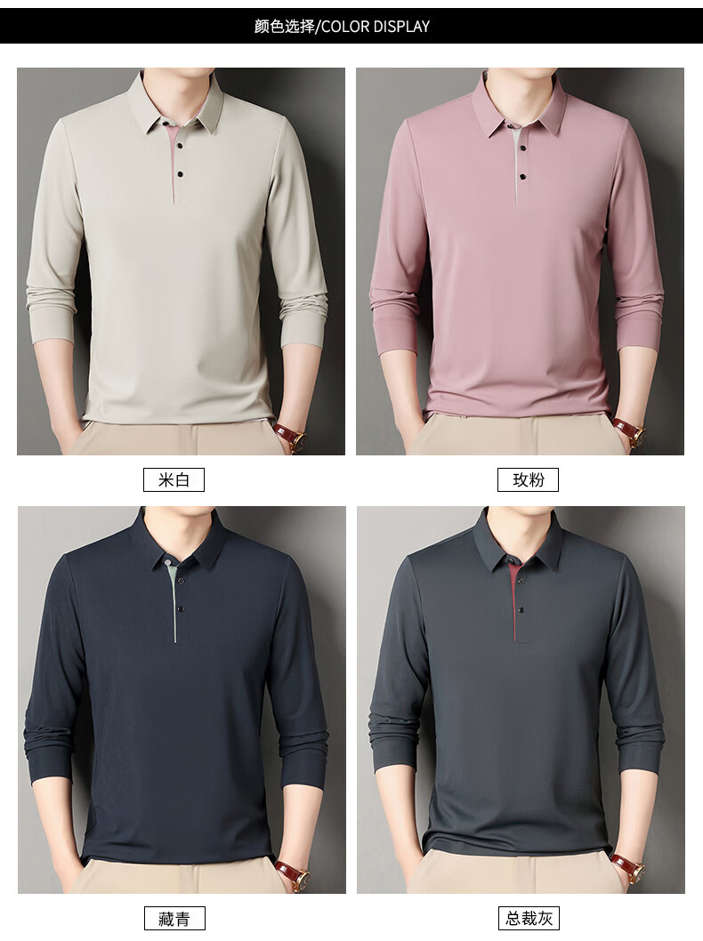 俞兆林男士长袖T恤春秋季新款商务休闲纯色POLO衫中青年翻领打底体恤衫 黑色 M (165) (建议100到120斤穿)