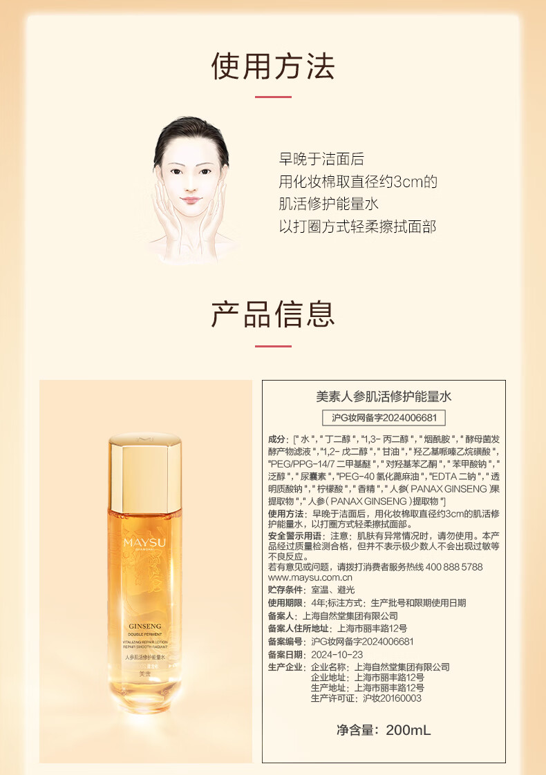 美素人参能量水补水保湿护肤清爽滋润强韧肌底送礼礼物 200ml*2