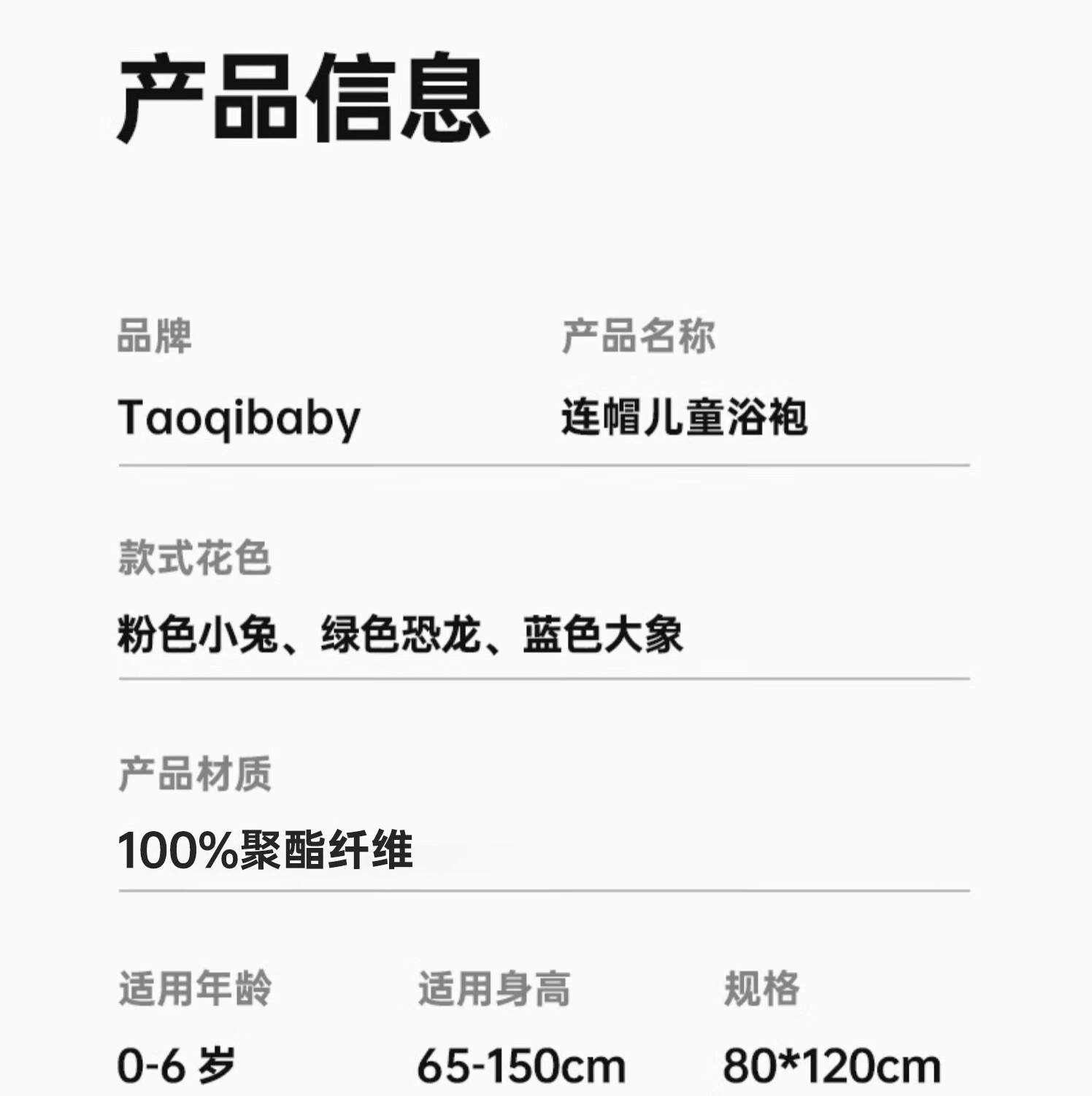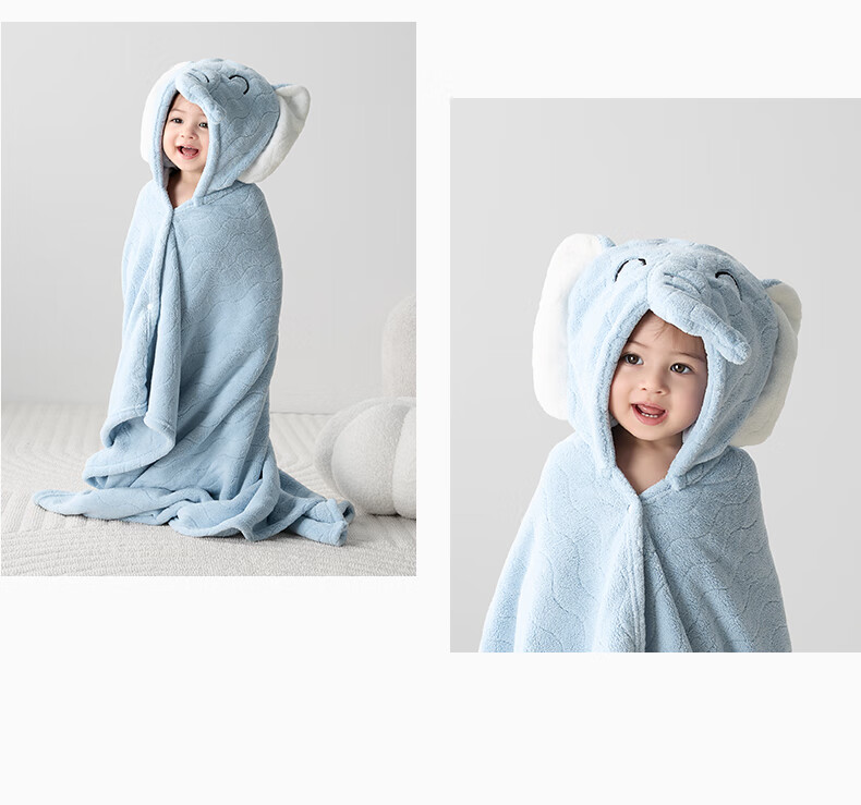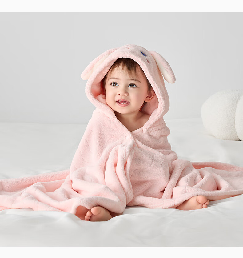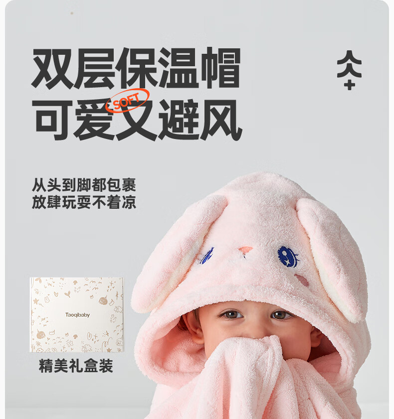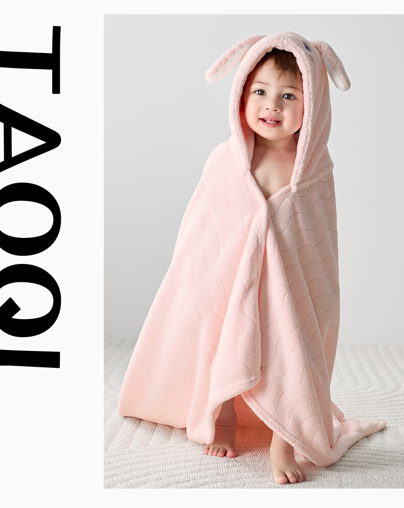 taoqibaby宝宝浴巾儿童带帽斗篷浴袍新生儿超软吸水浴巾包巾速干80*120cm