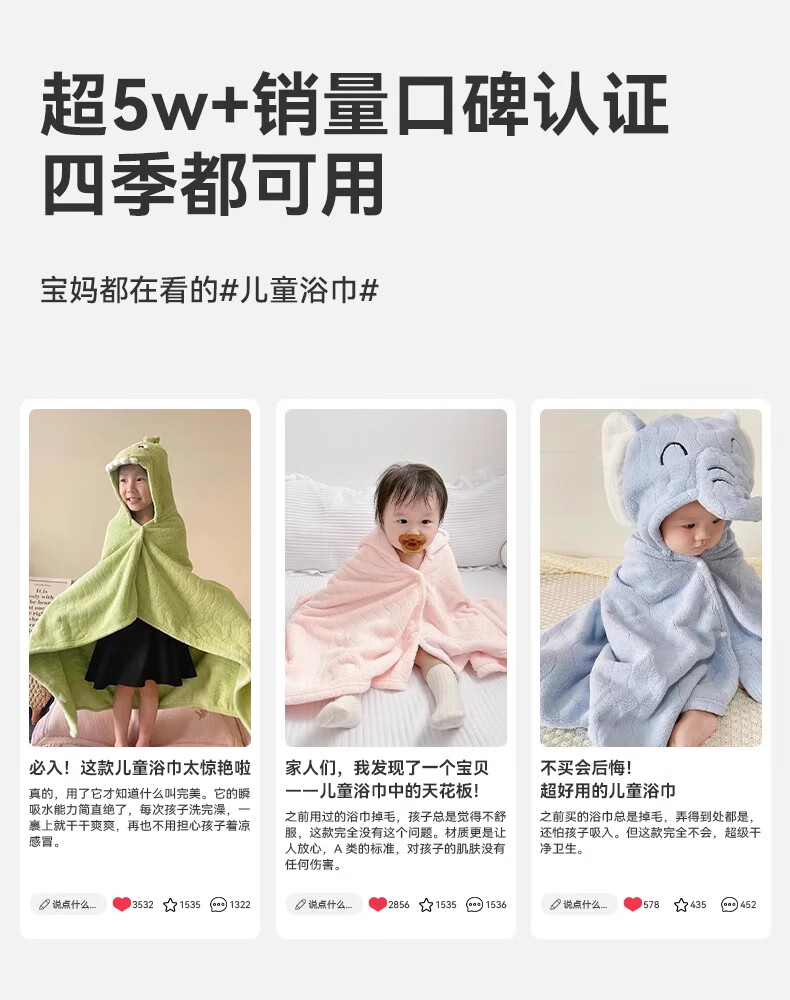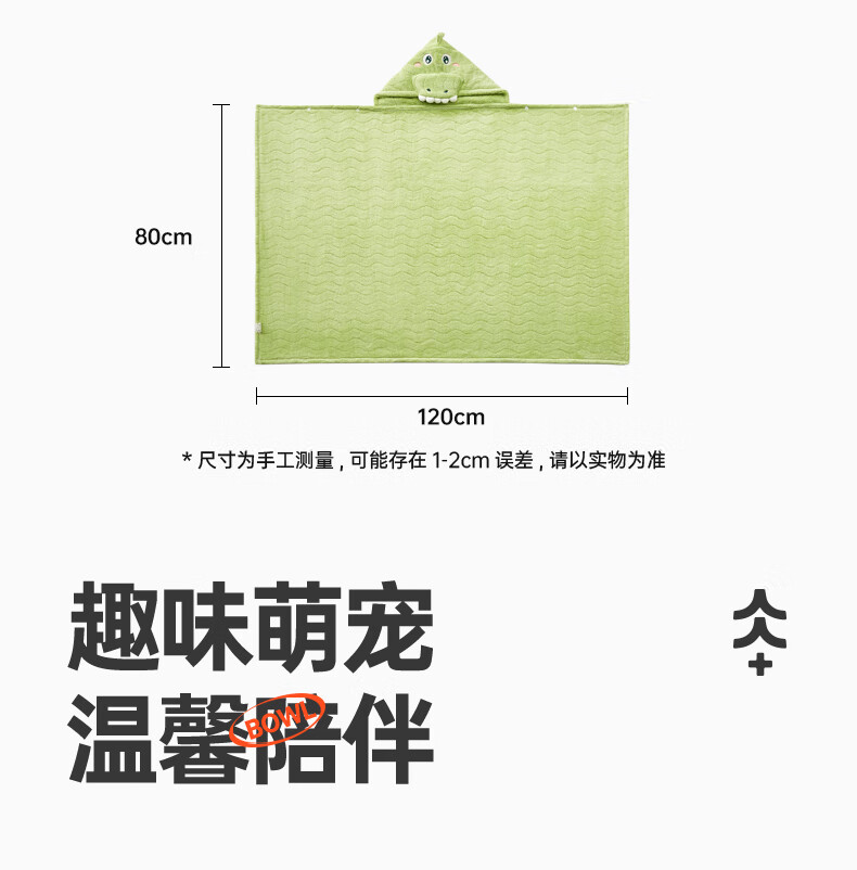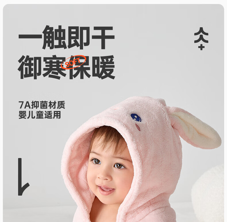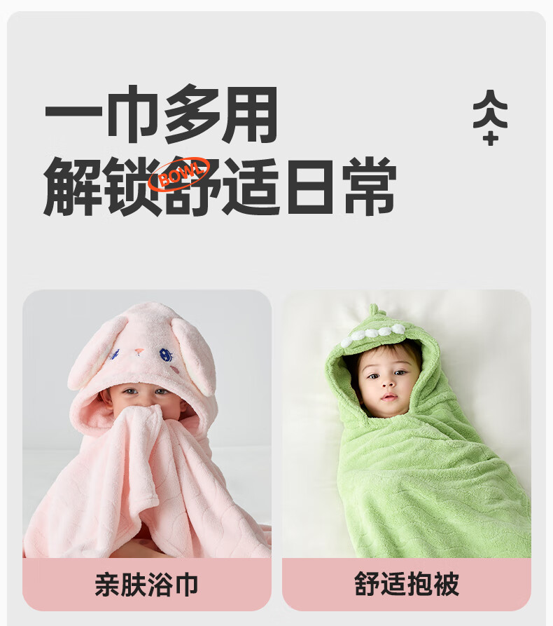 taoqibaby宝宝浴巾儿童带帽斗篷浴袍新生儿超软吸水浴巾包巾速干80*120cm