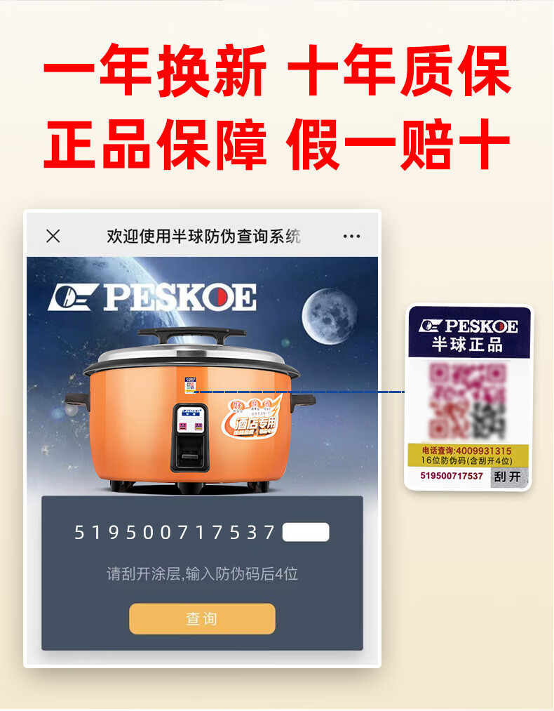 半球(PESKOE)商用电饭锅食堂大容量20人以上电饭锅 老式饭店用大型电饭煲 LX190-265B