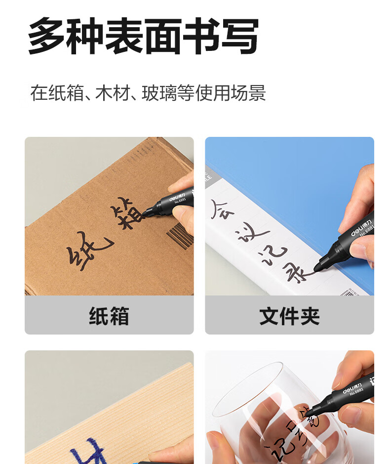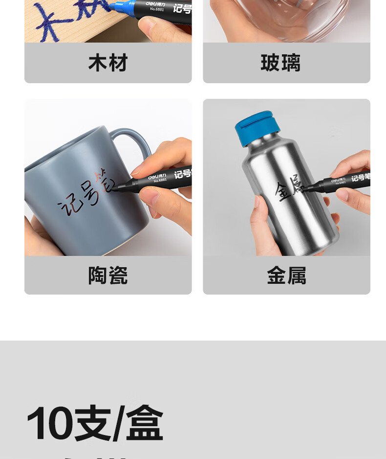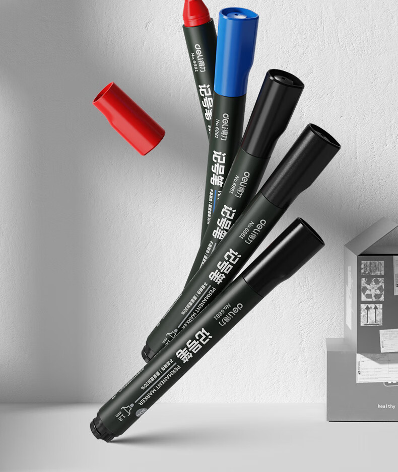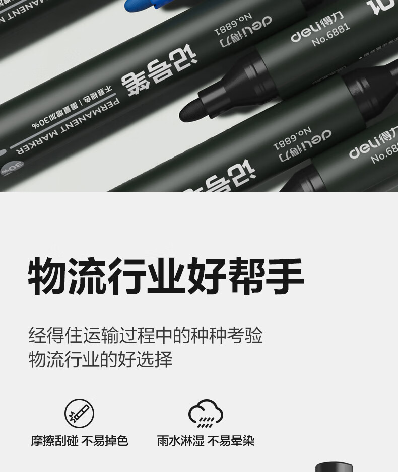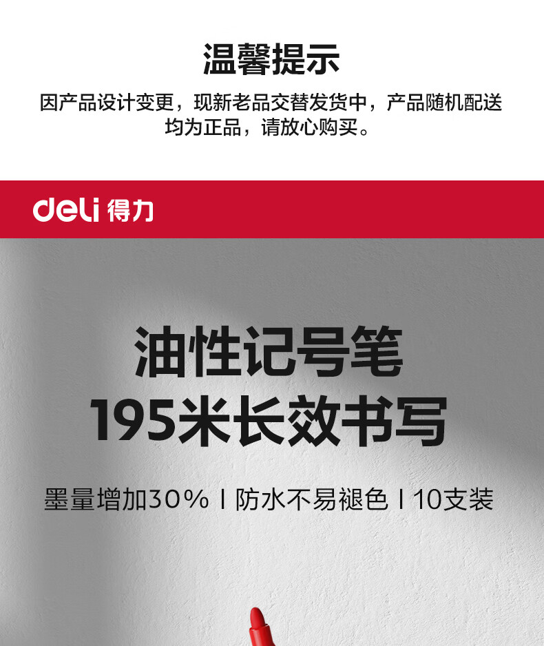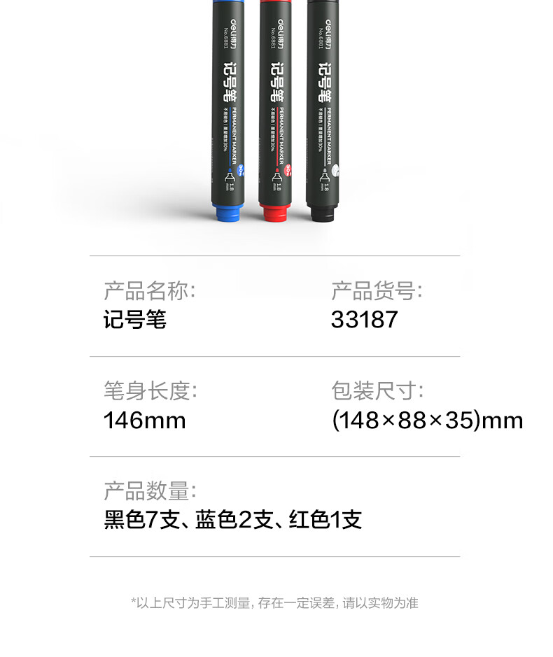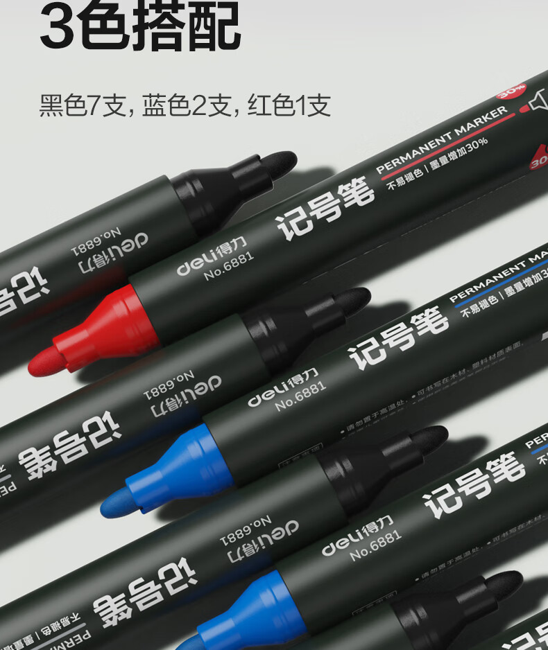 得力(deli)快干油性记号笔 物流用大头笔马克笔 10支/盒(7黑2蓝1红)33187 办公用品