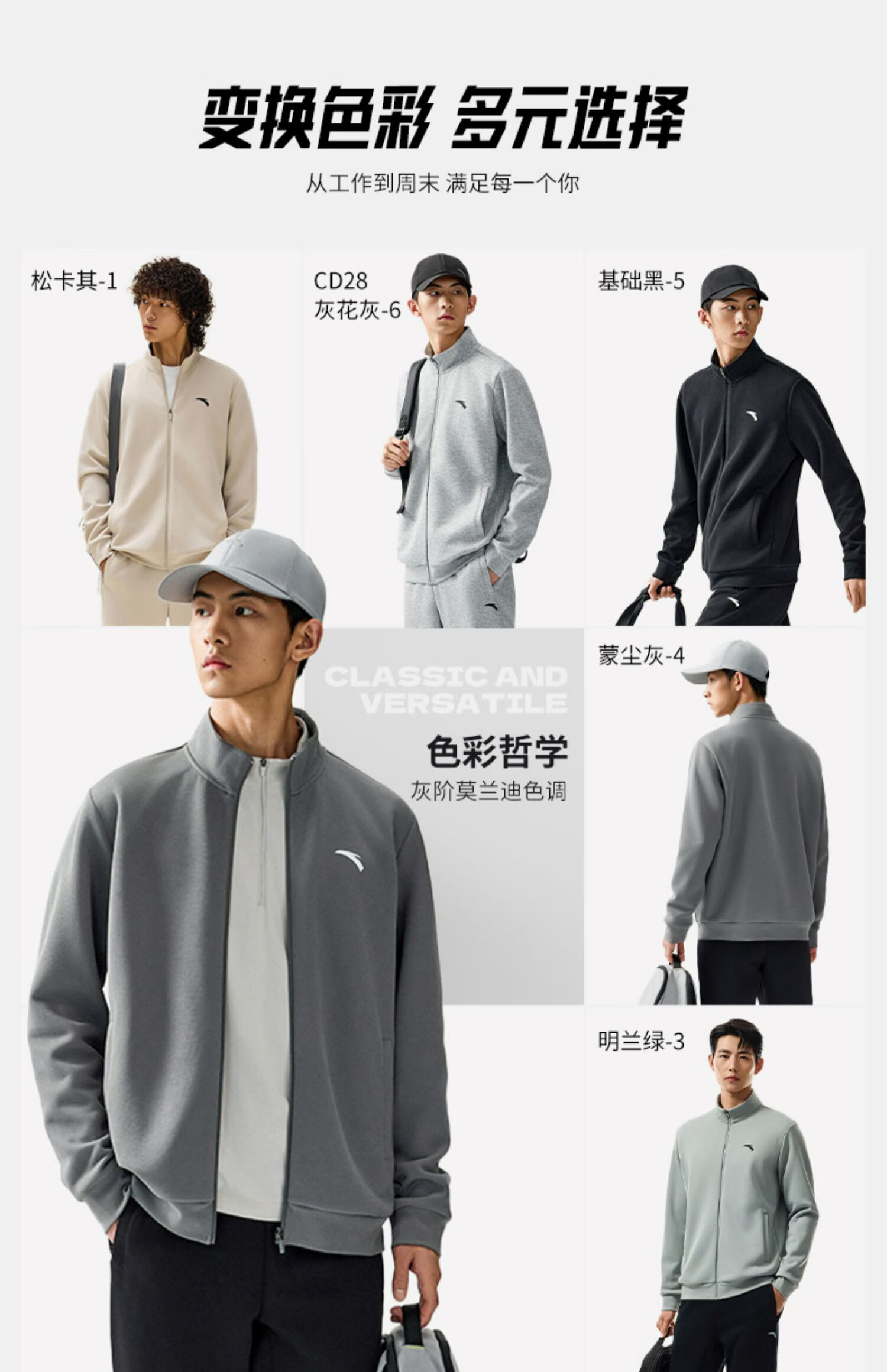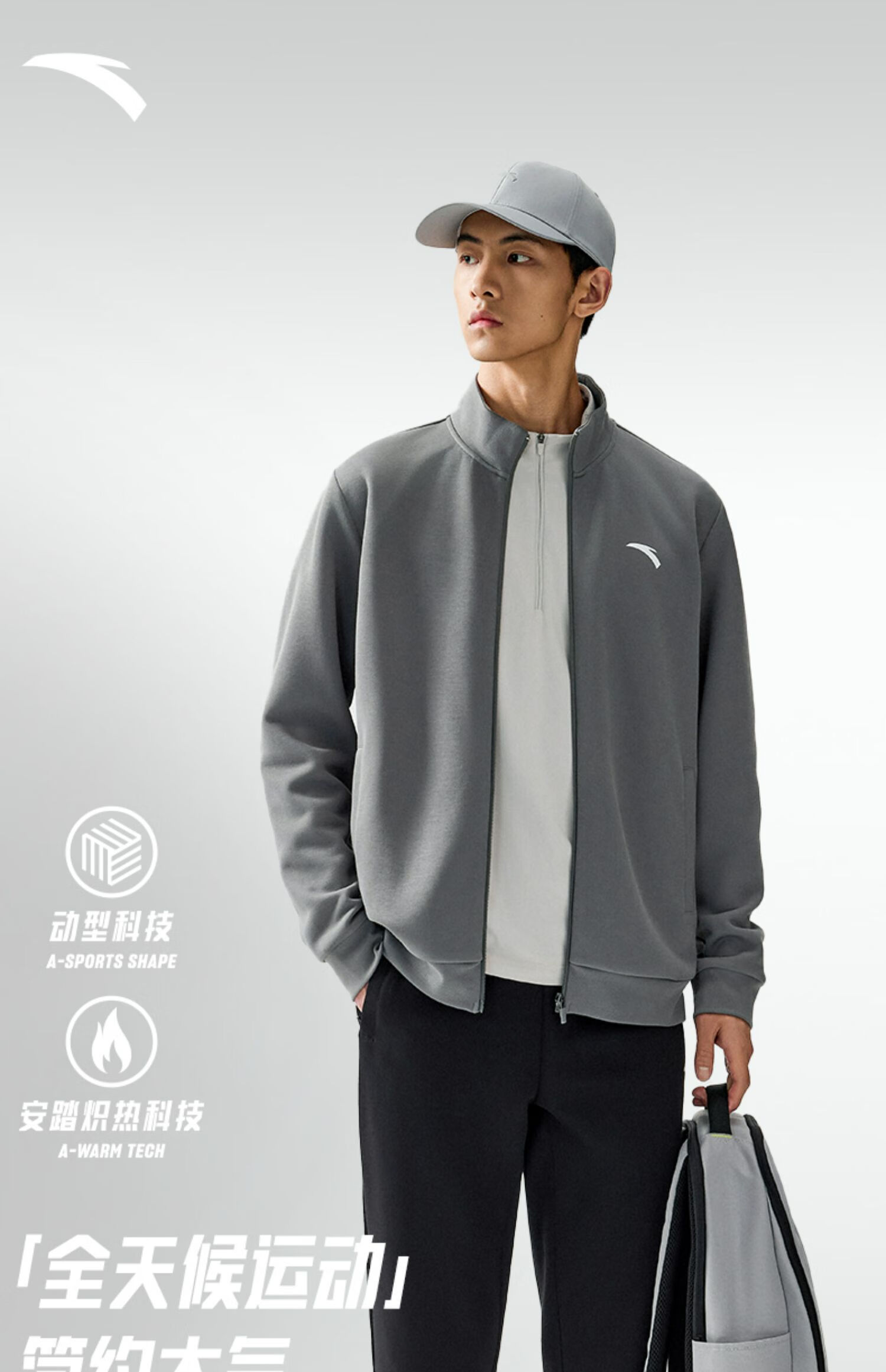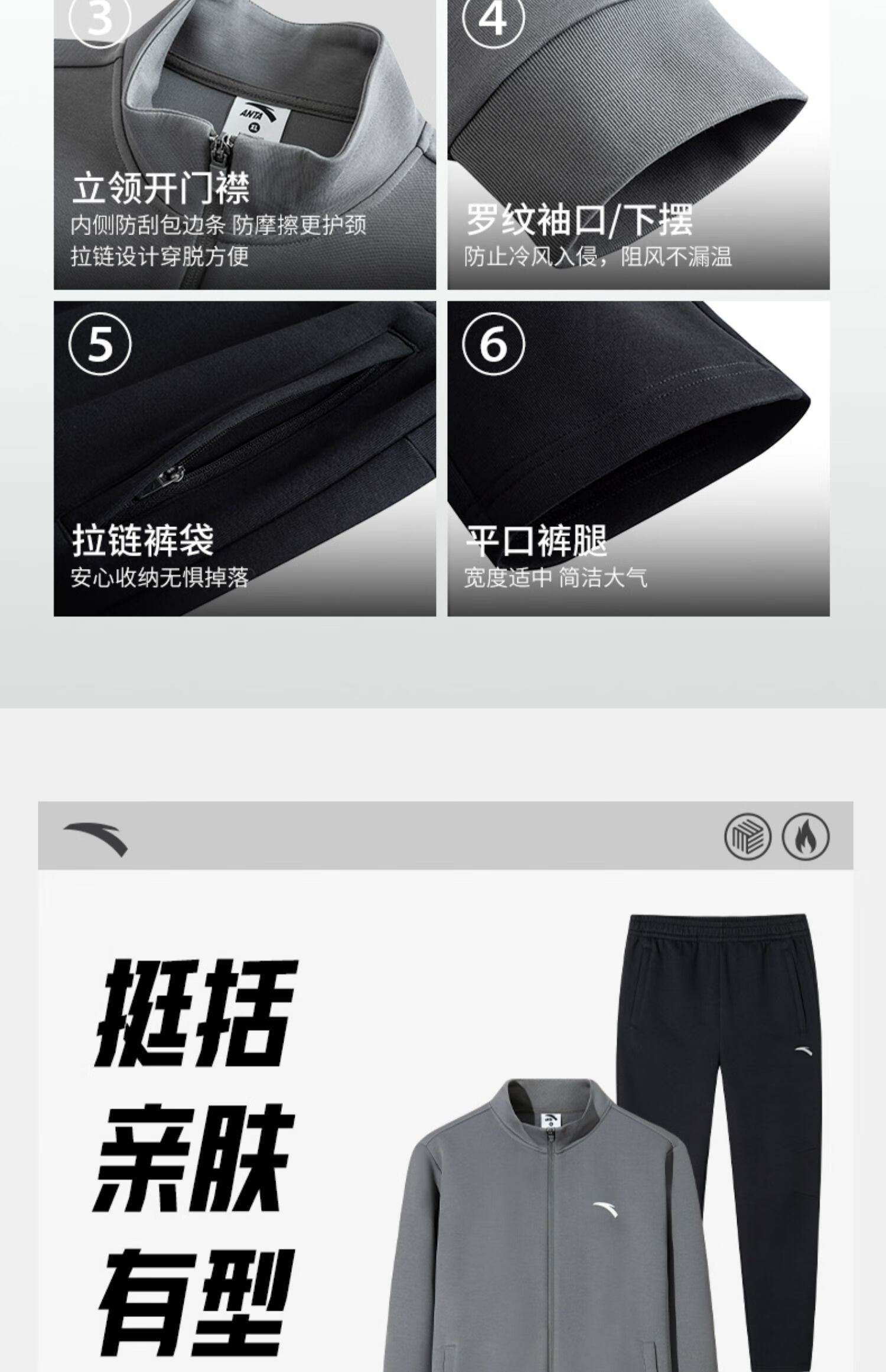 安踏运动套装男士秋季防风立领开衫外套跑步长裤运动服裤休闲服裤