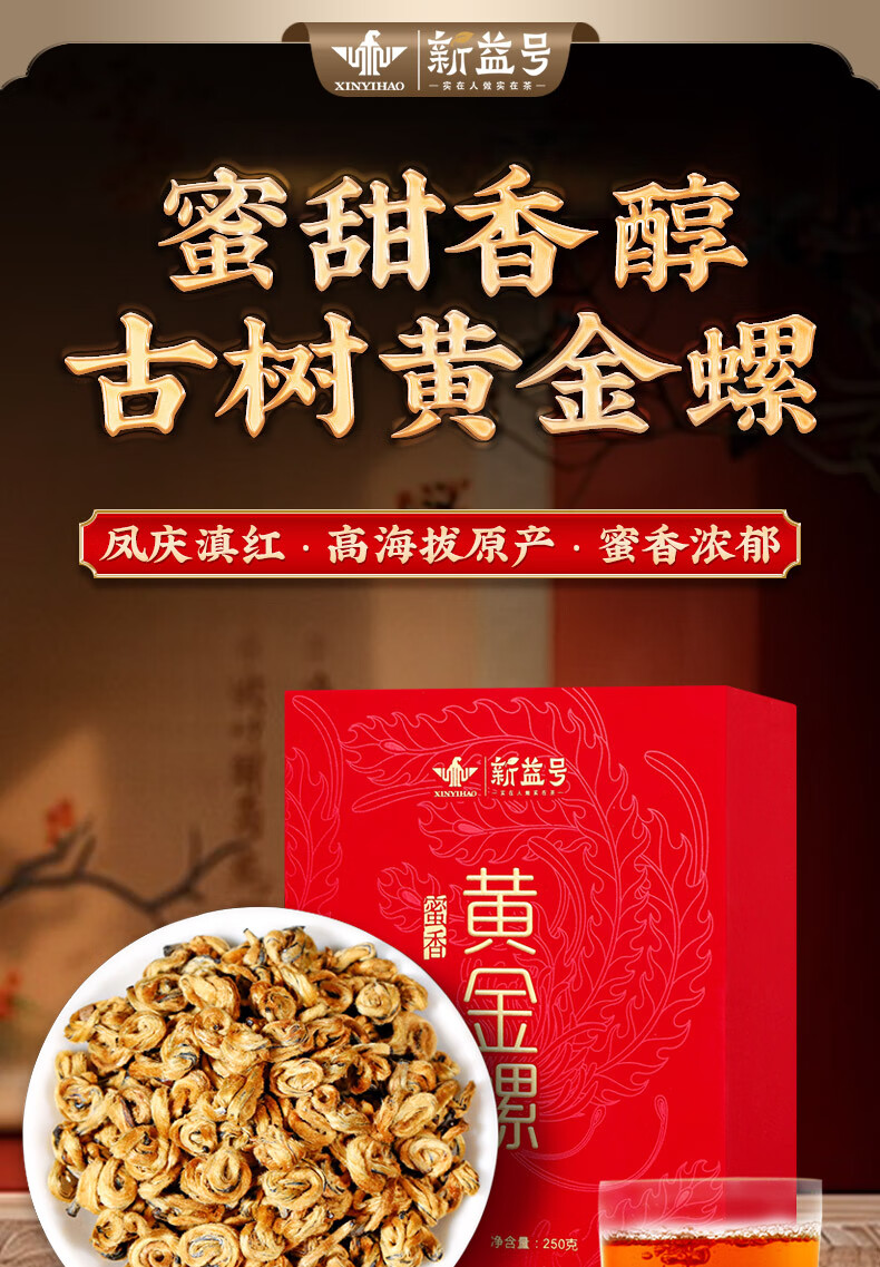 新益号茶叶滇红茶特级蜜香金螺红茶2025年新茶云南凤庆古树茶礼盒装250g