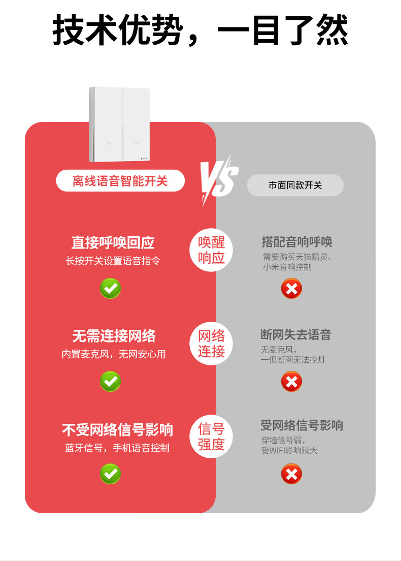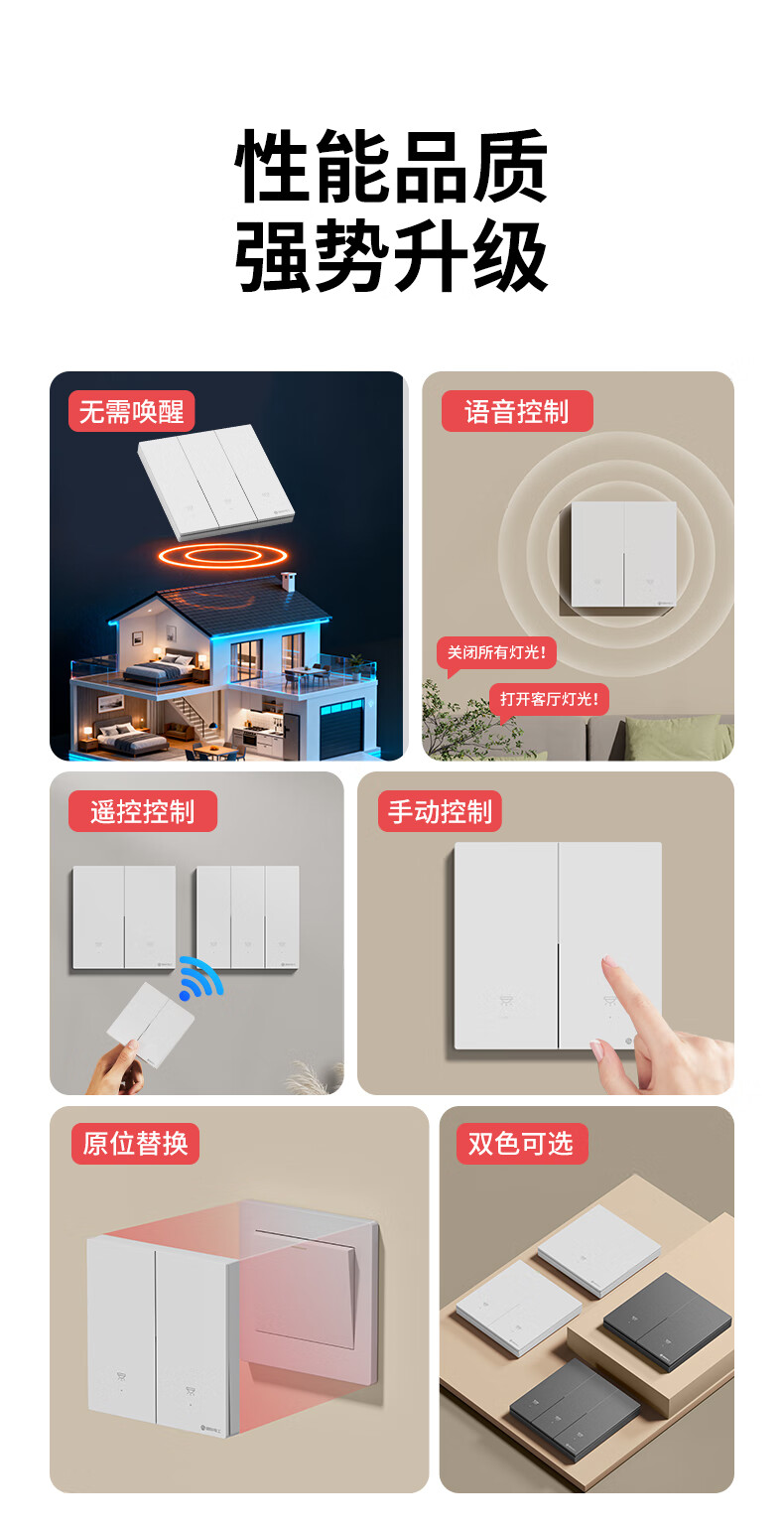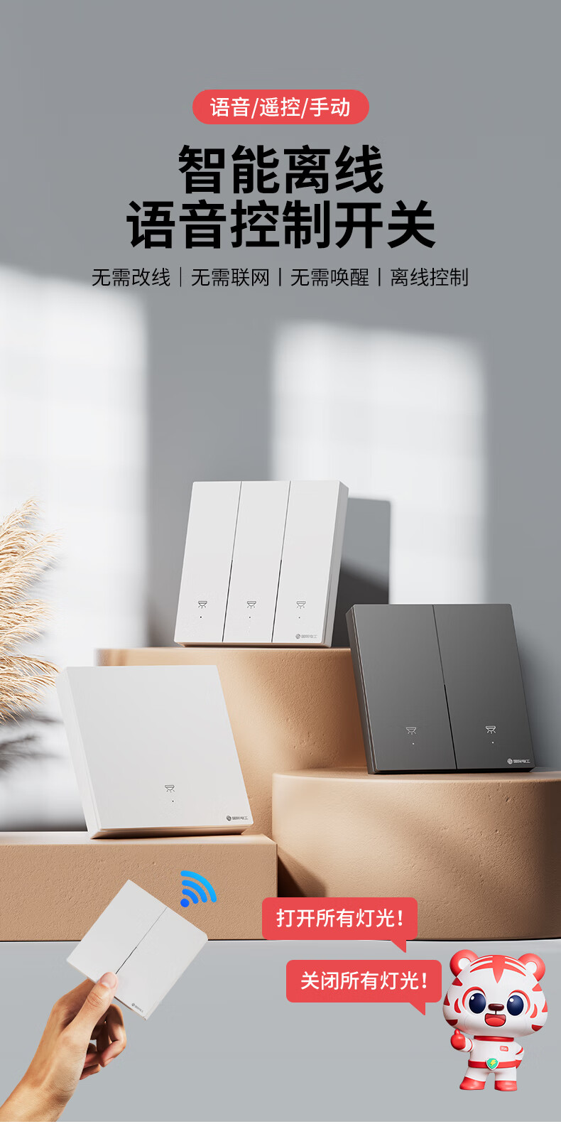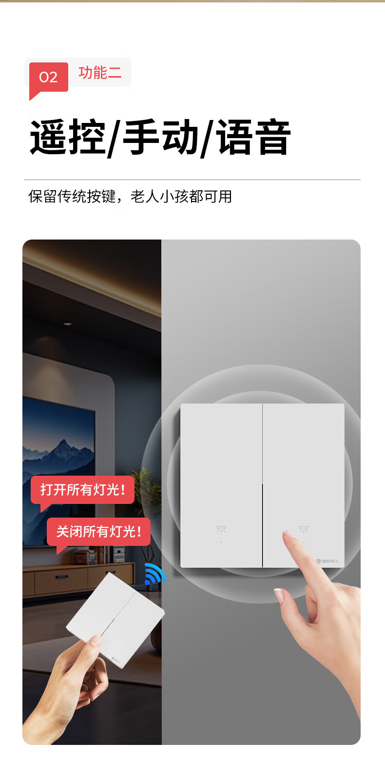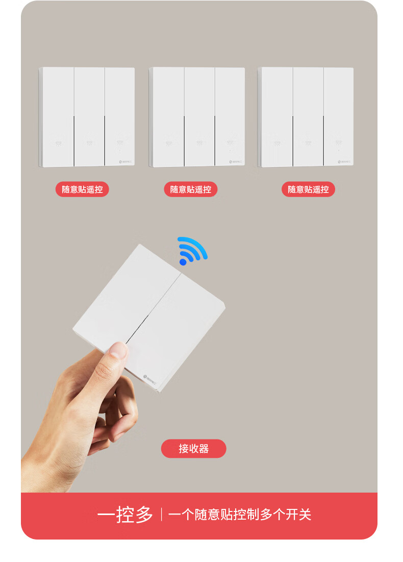 国际电工无线遥控智能开关双控免布线面板家用远程语音控制卧室随意贴 【离线语音】一开主机1个+一开随意贴1个