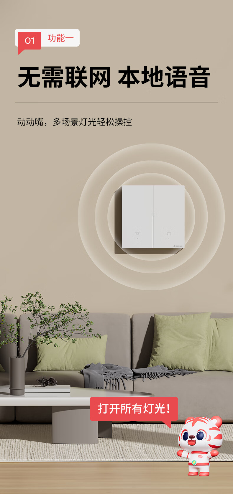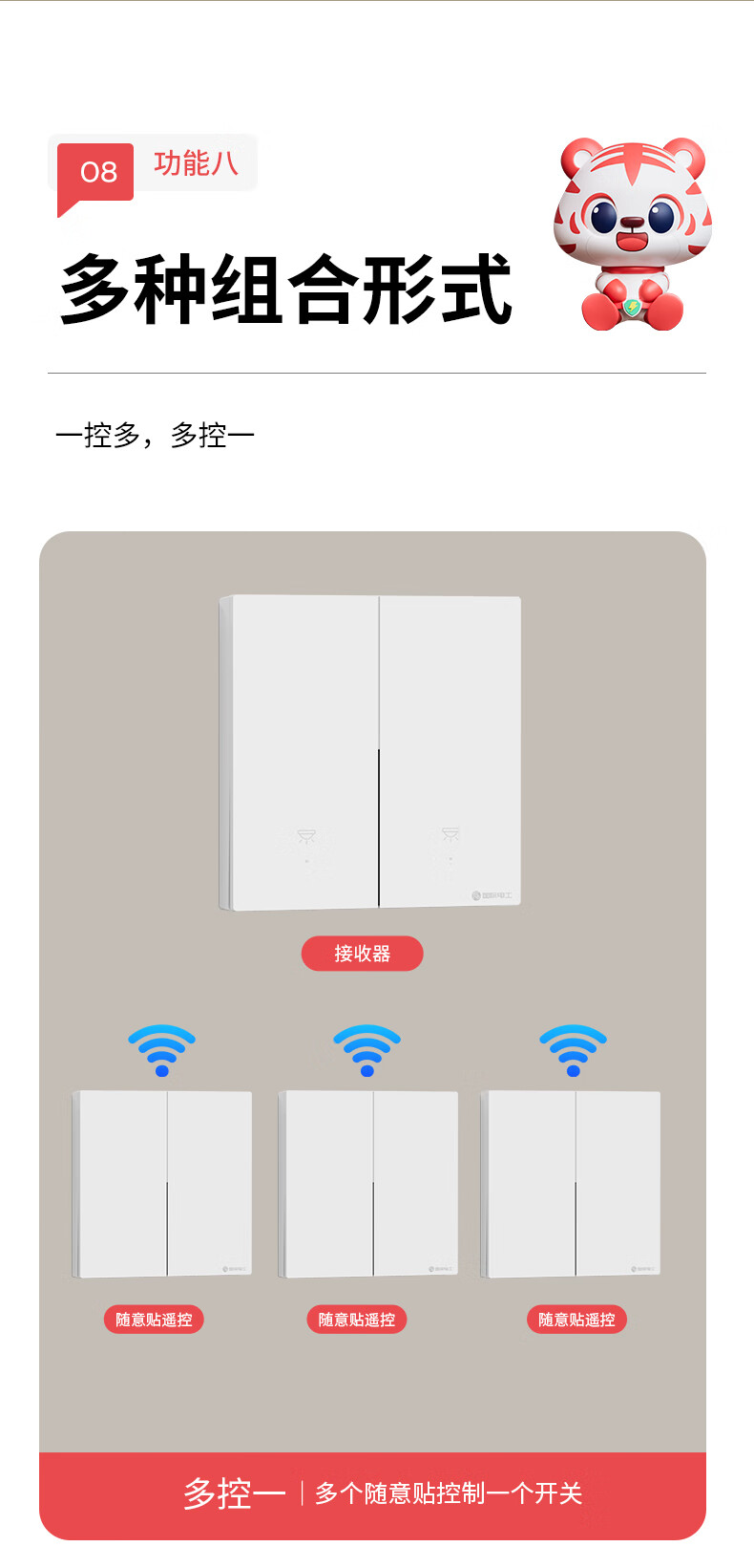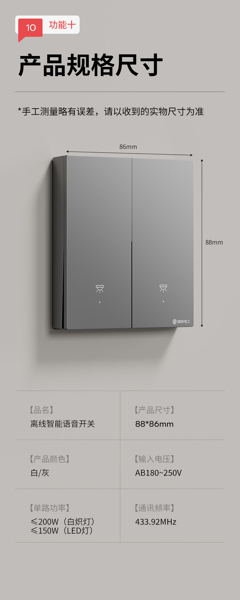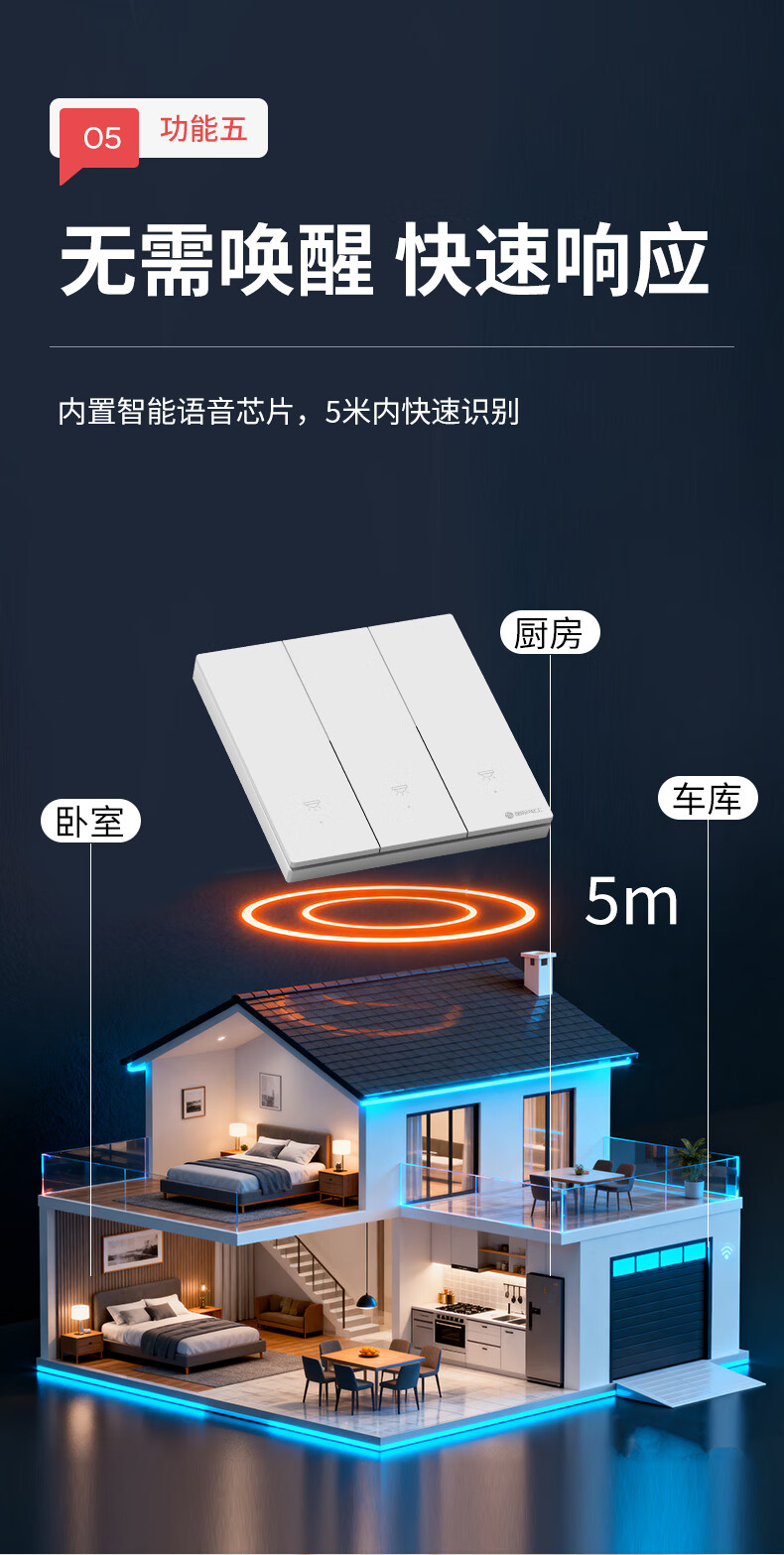 国际电工无线遥控智能开关双控免布线面板家用远程语音控制卧室随意贴 【离线语音】一开主机1个+一开随意贴1个