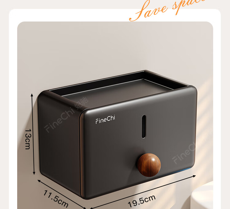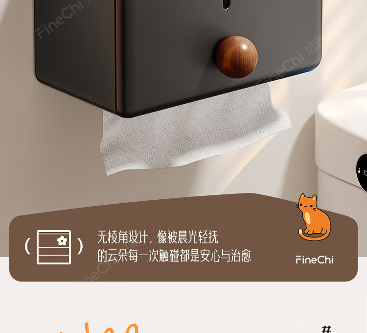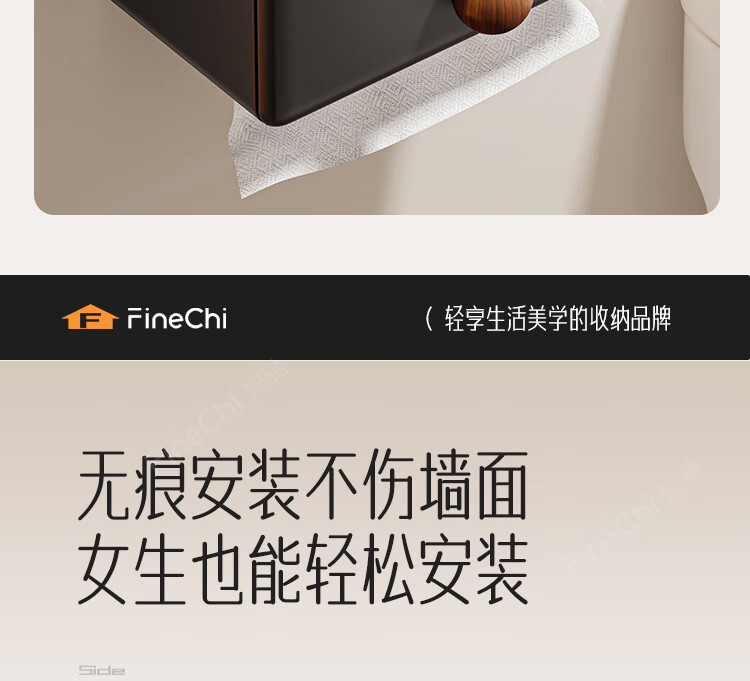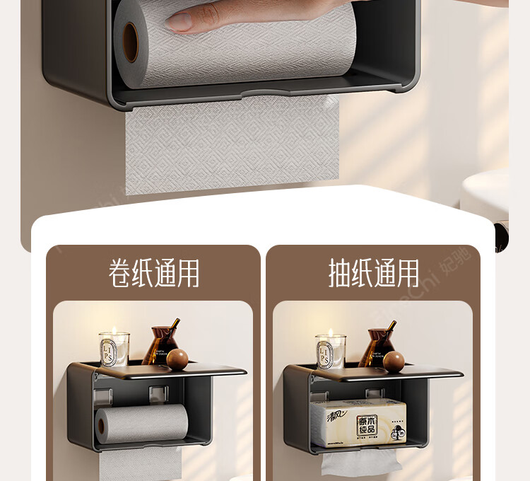 妃驰卫生间纸巾盒装厕所纸盒壁挂抽卷纸挂架浴室洗手间放置物架中古风 【中古风-黑色】纸巾盒+马桶刷