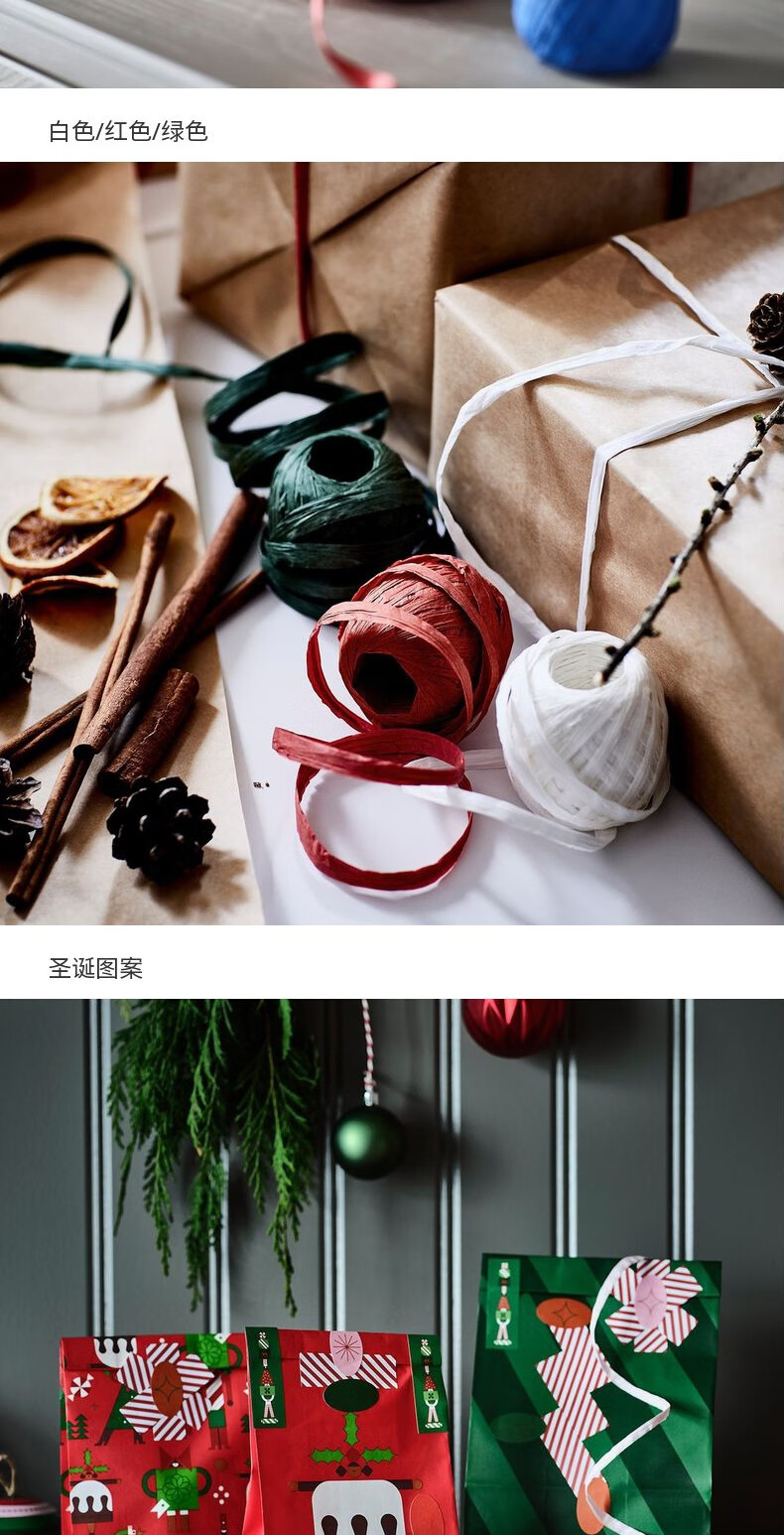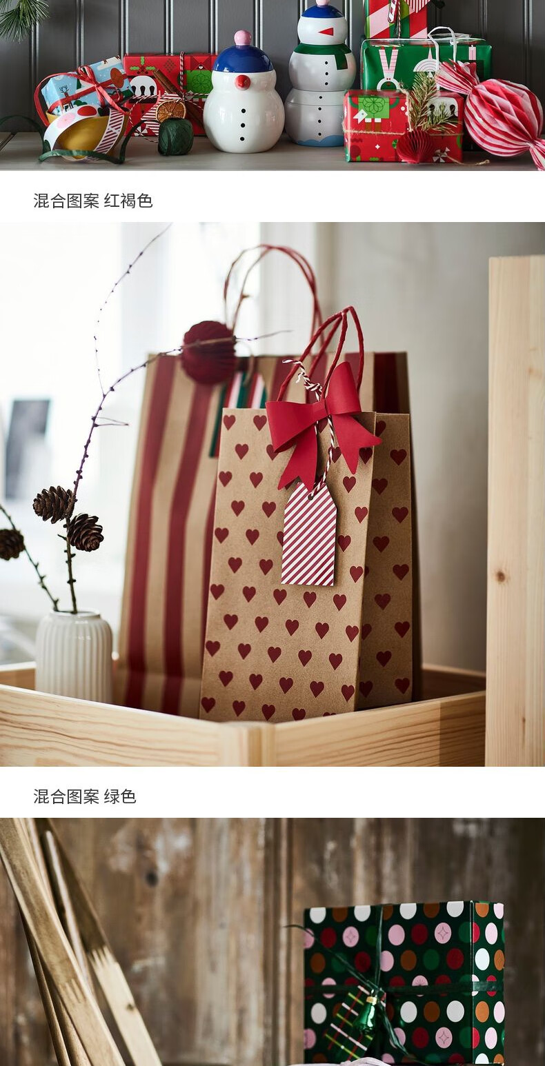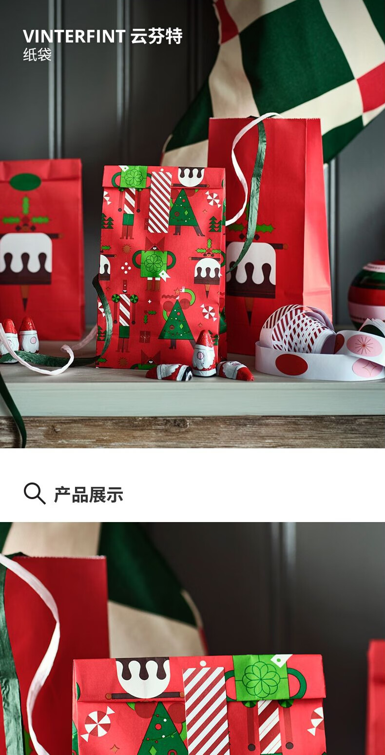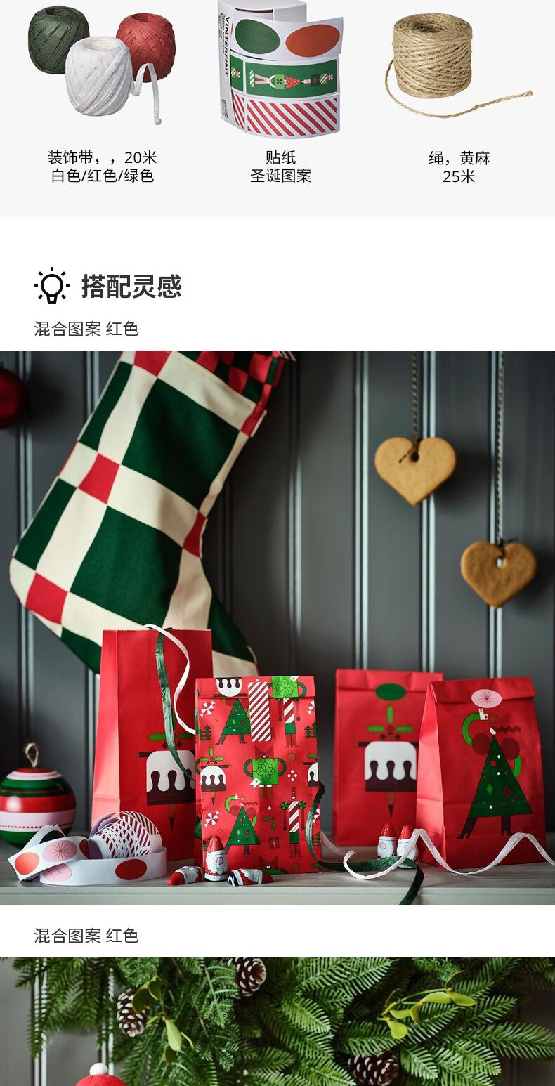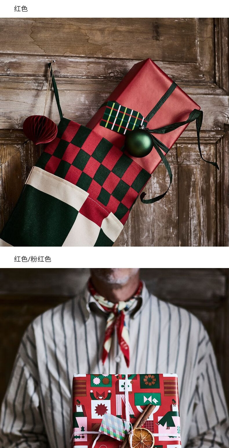 宜家(IKEA)【新品】VINTERFINT云芬特纸袋圣诞节礼物袋装饰袋家用 礼品包装红/绿色3x0.7m