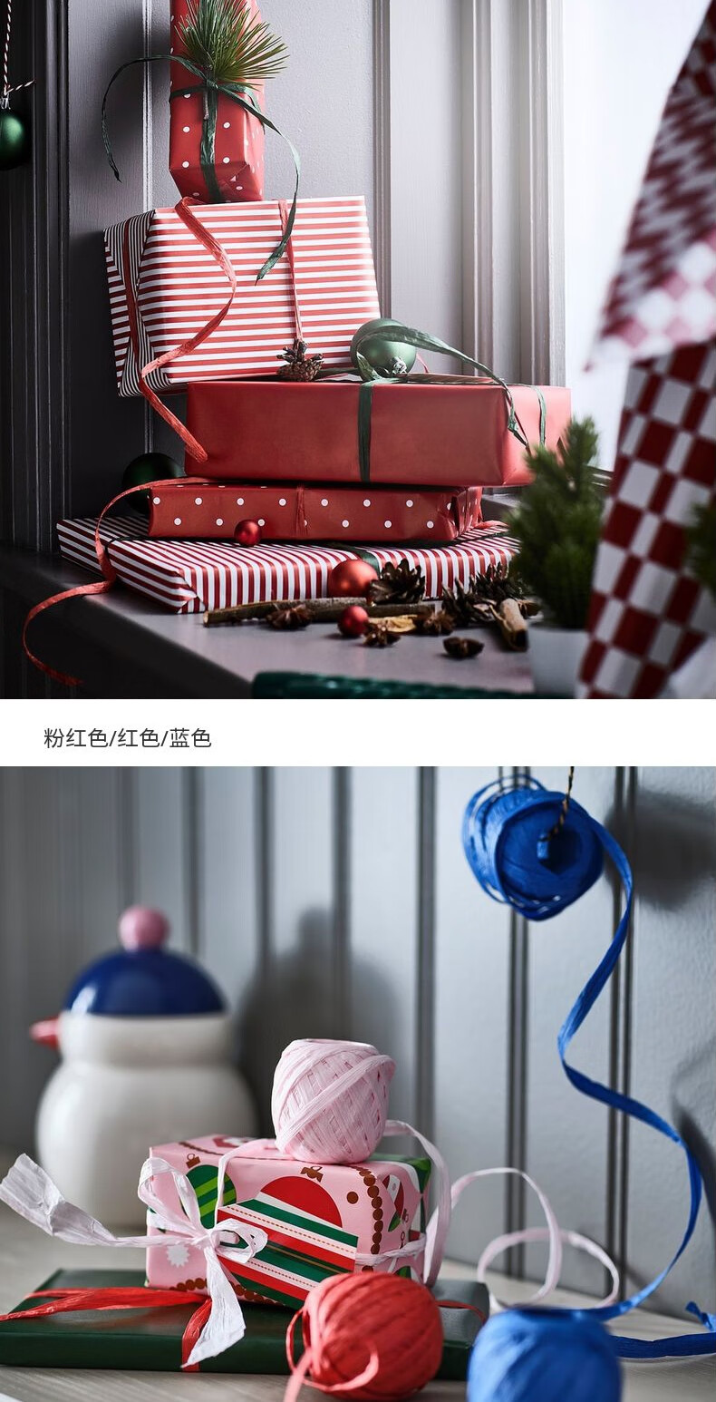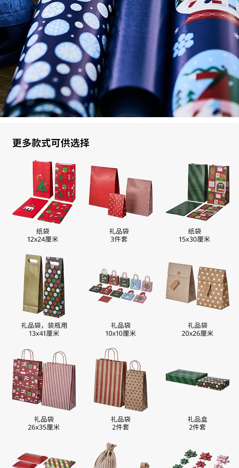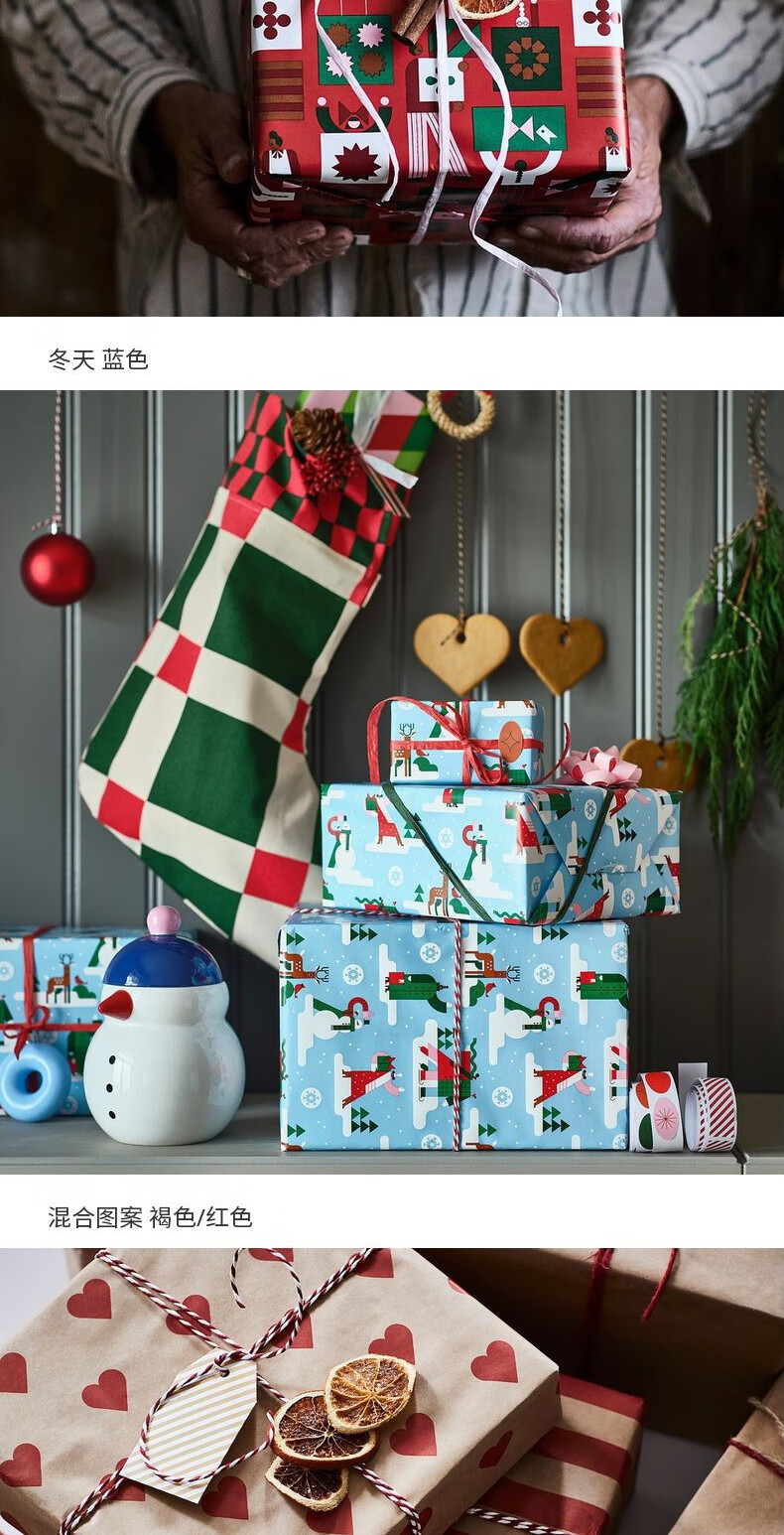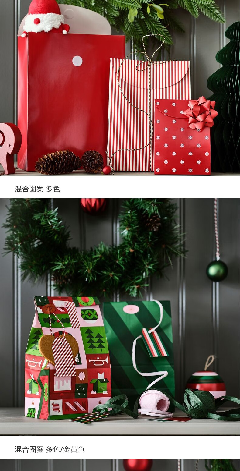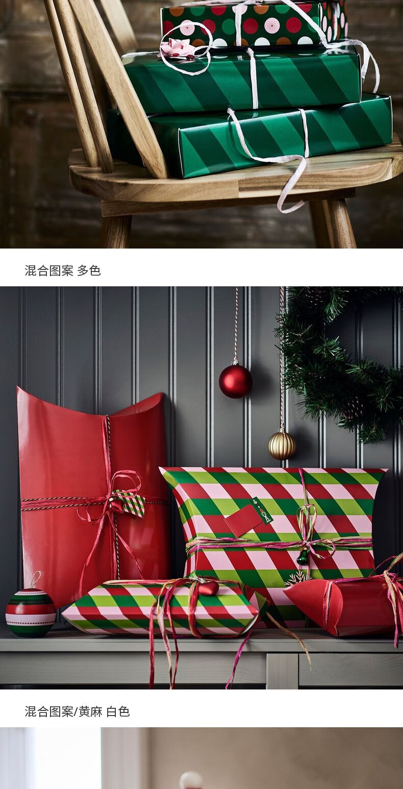 宜家(IKEA)【新品】VINTERFINT云芬特纸袋圣诞节礼物袋装饰袋家用 礼品包装红/绿色3x0.7m