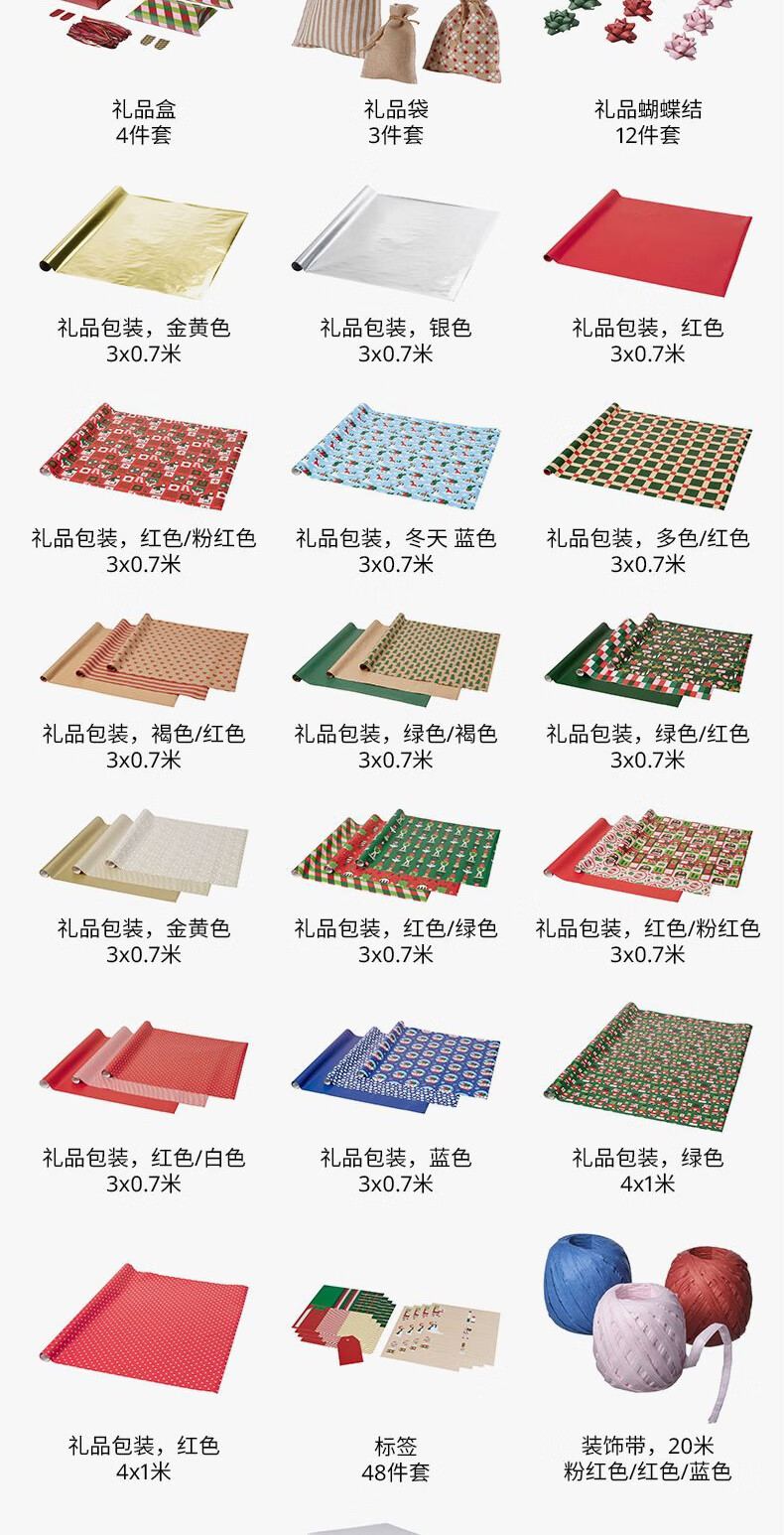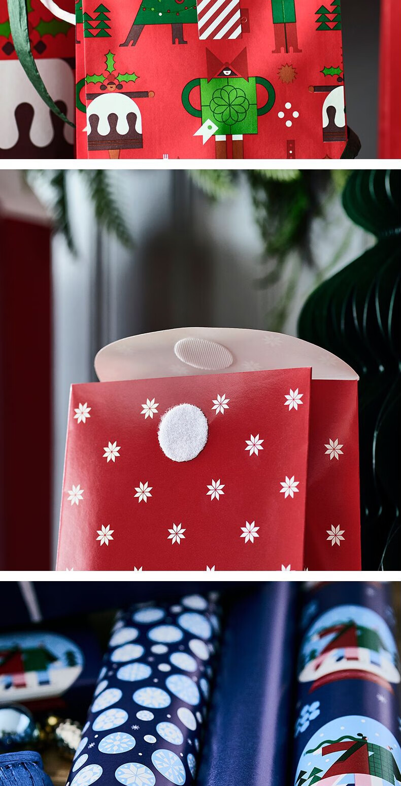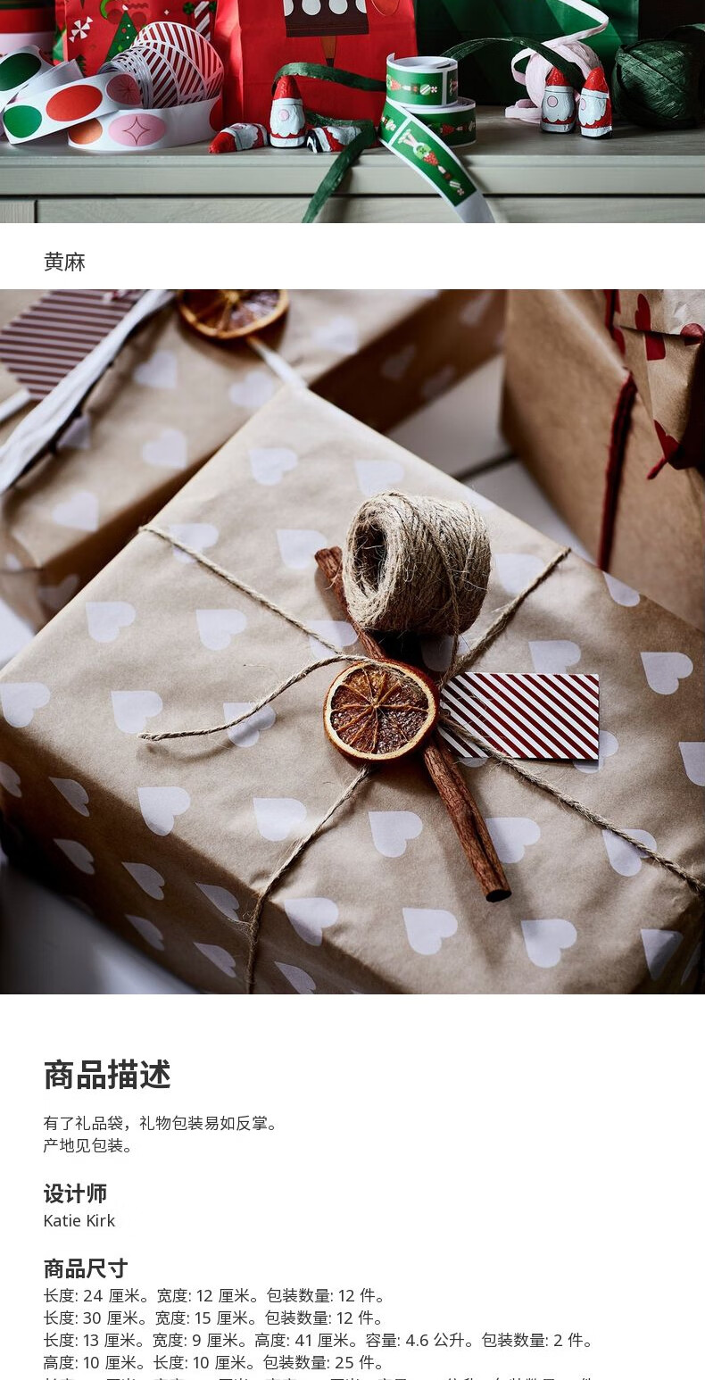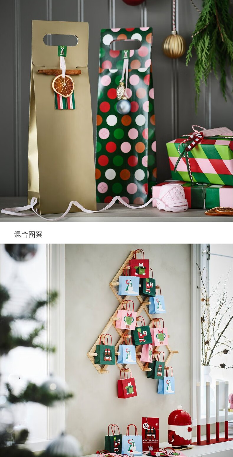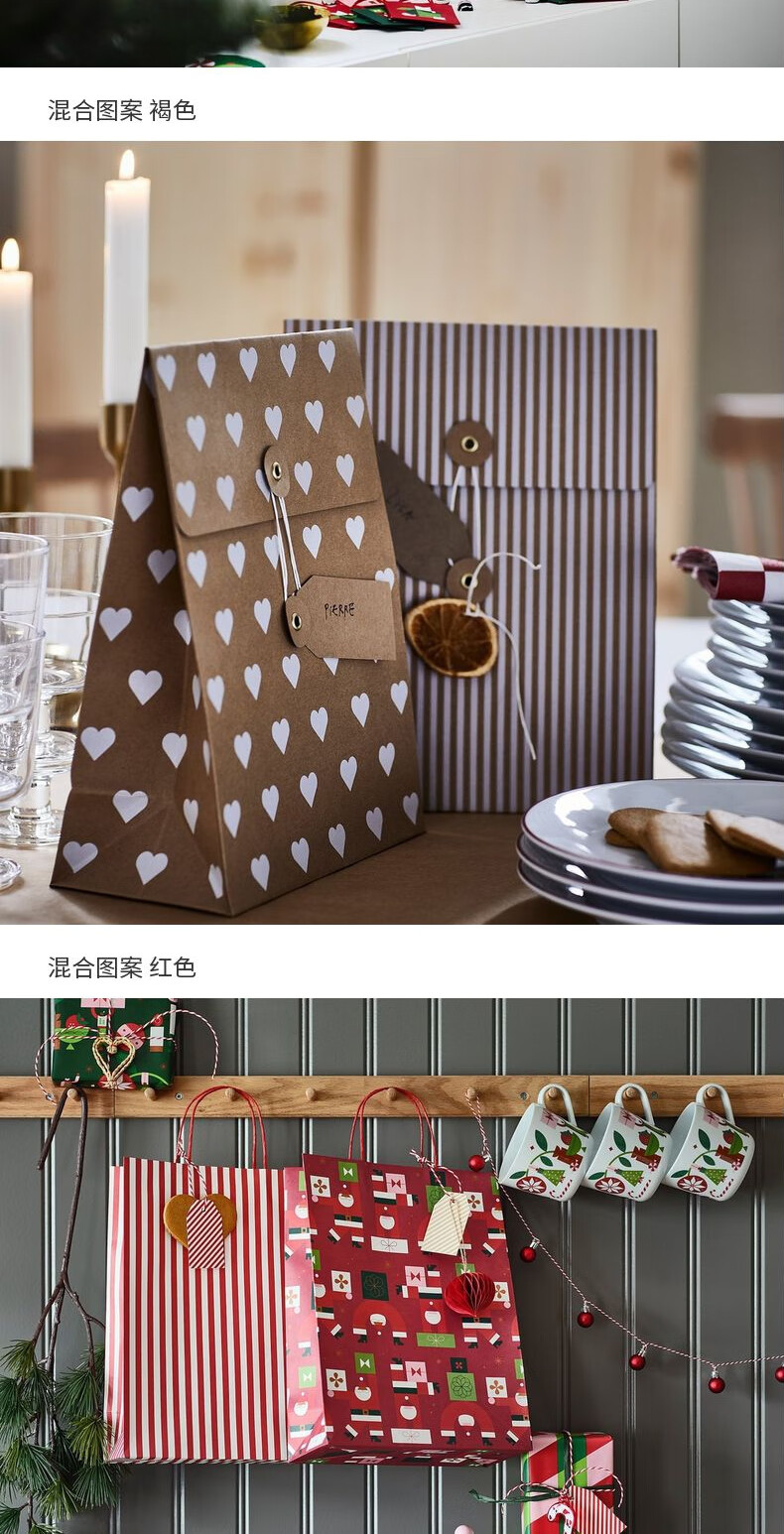 宜家(IKEA)【新品】VINTERFINT云芬特纸袋圣诞节礼物袋装饰袋家用 礼品包装红/绿色3x0.7m