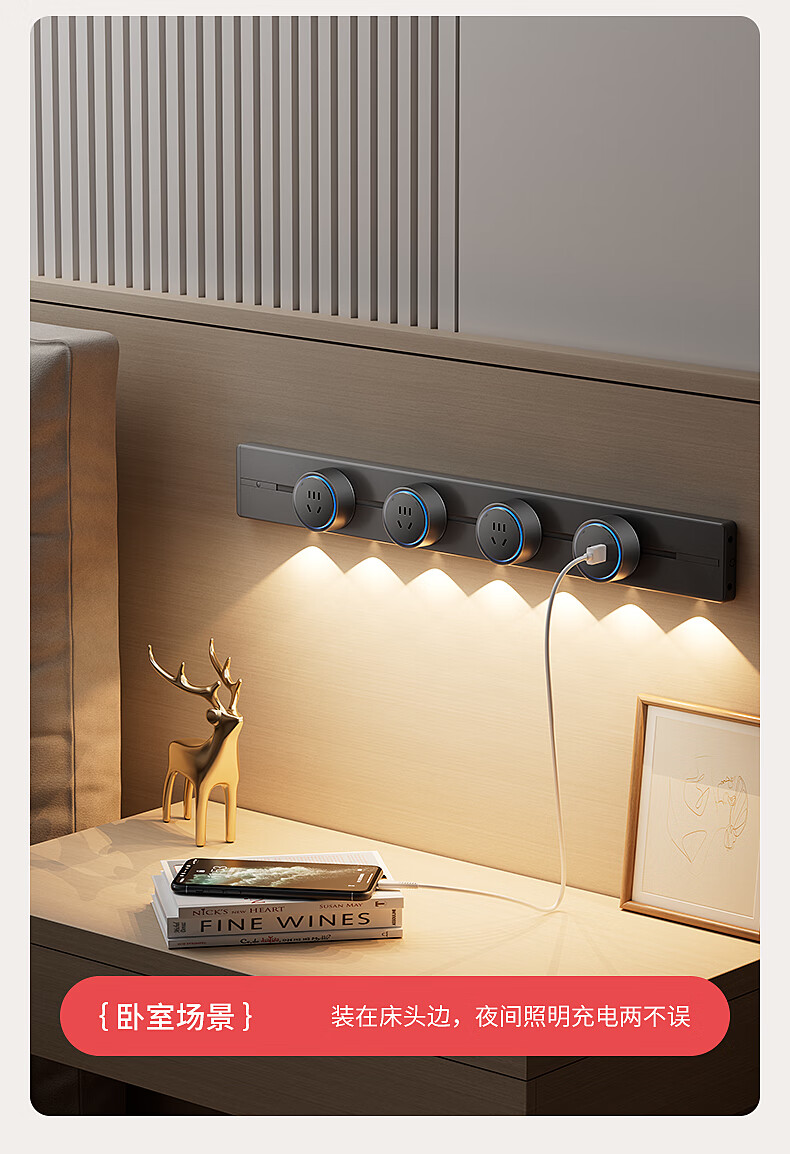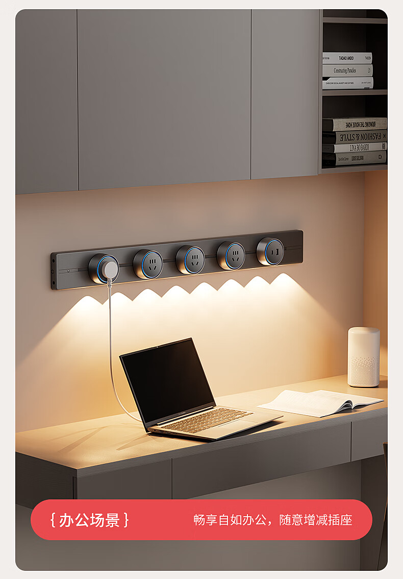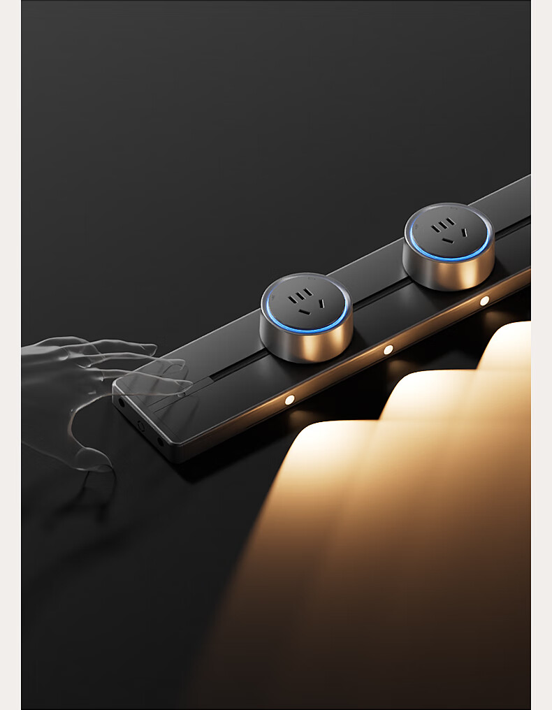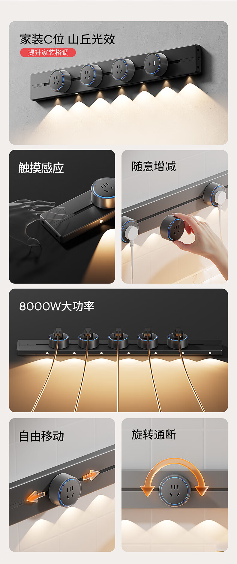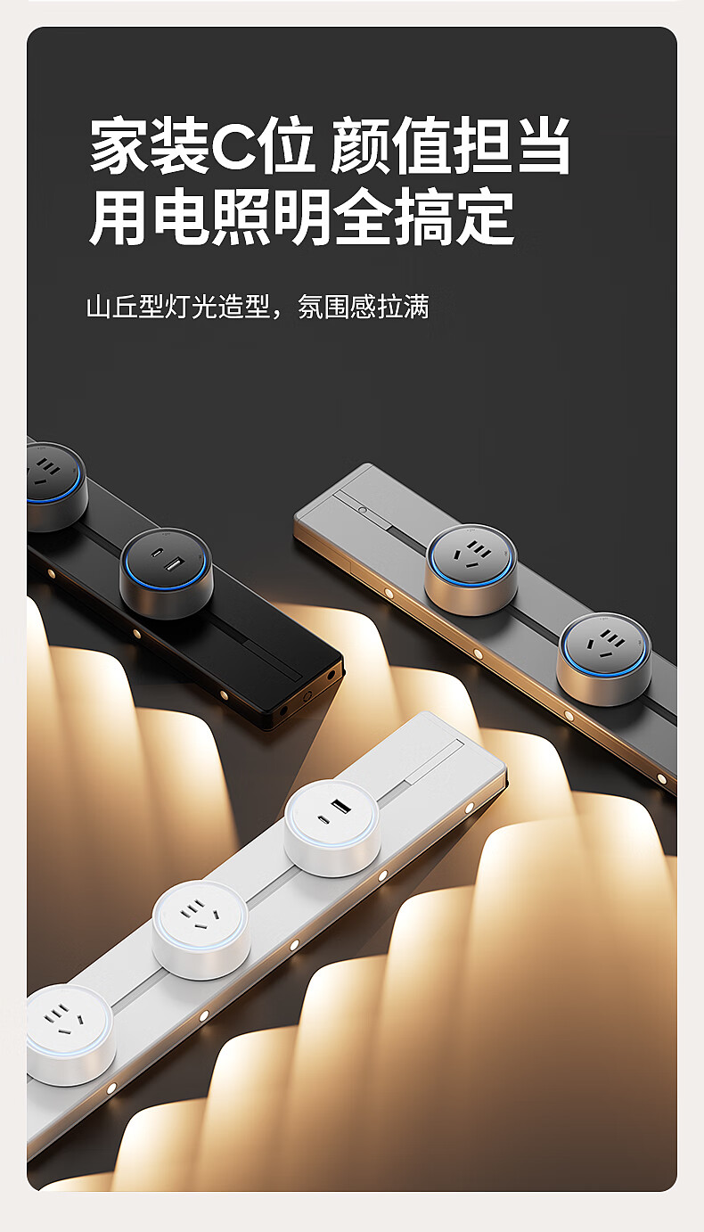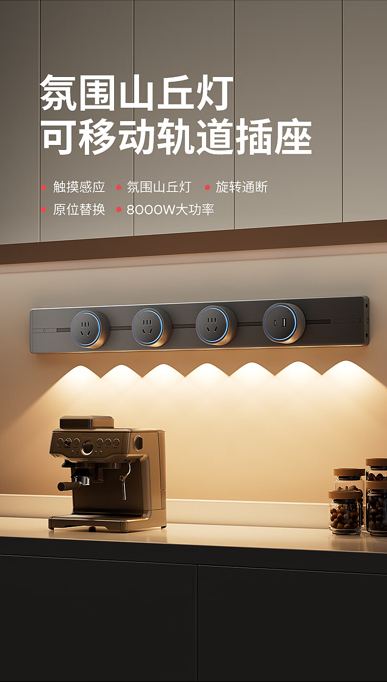 FDD国际电工山丘灯触摸感应轨道插座移动厨房书房多场景明装可移动8000w插排 山丘灯轨道插座50cm+3个五孔【白色】
