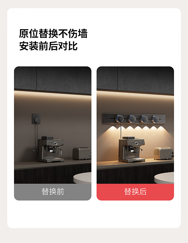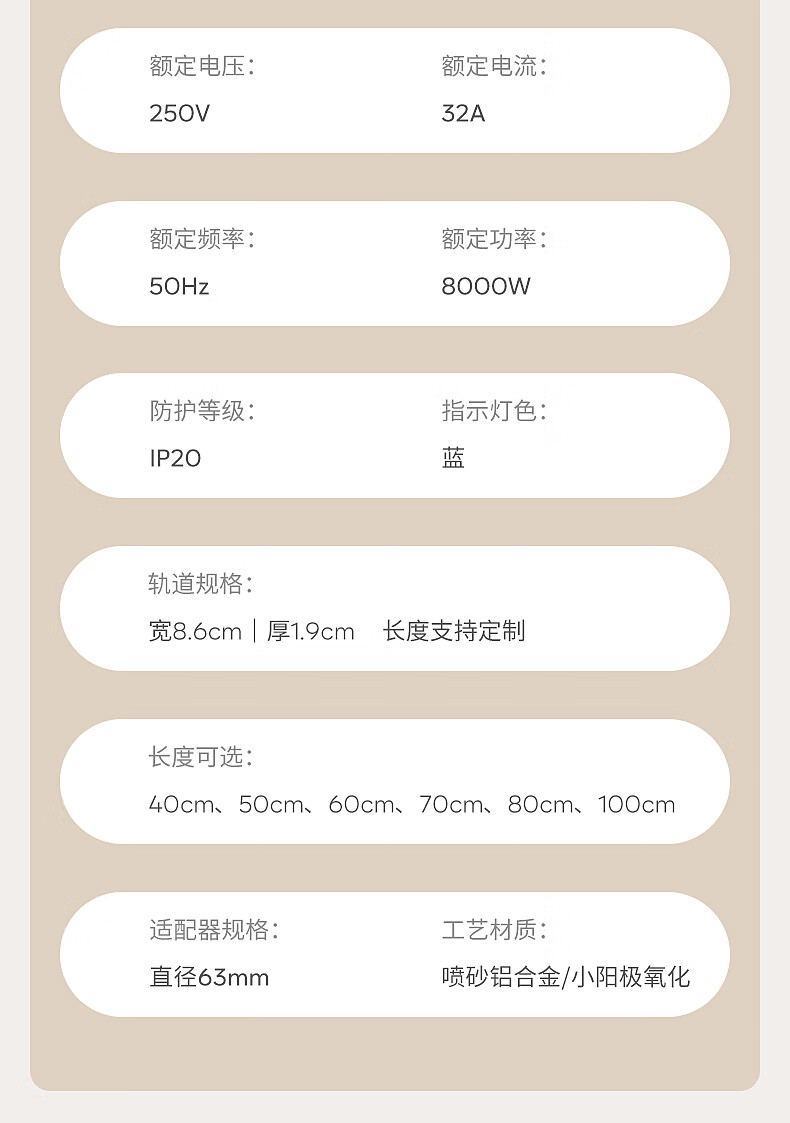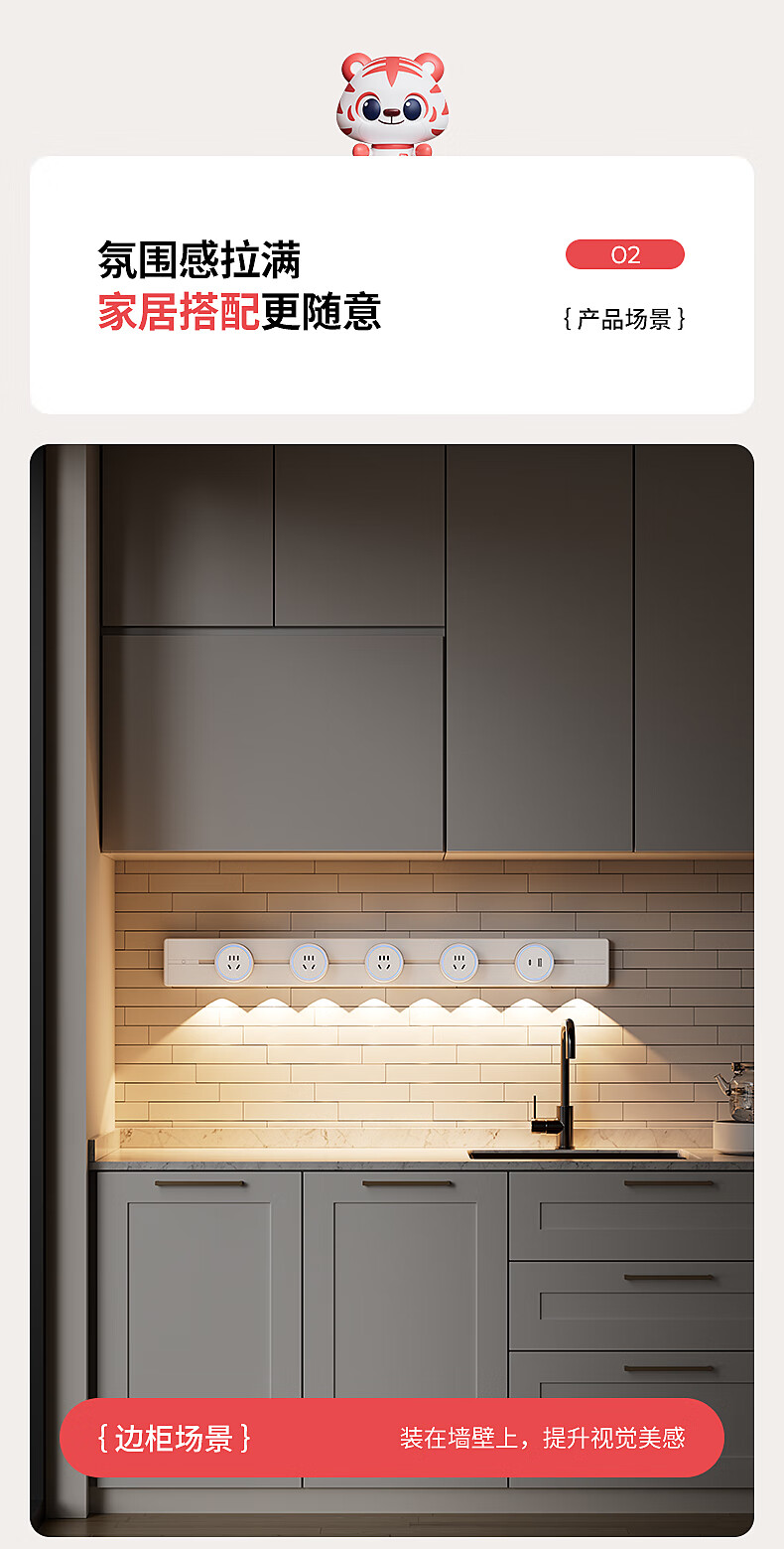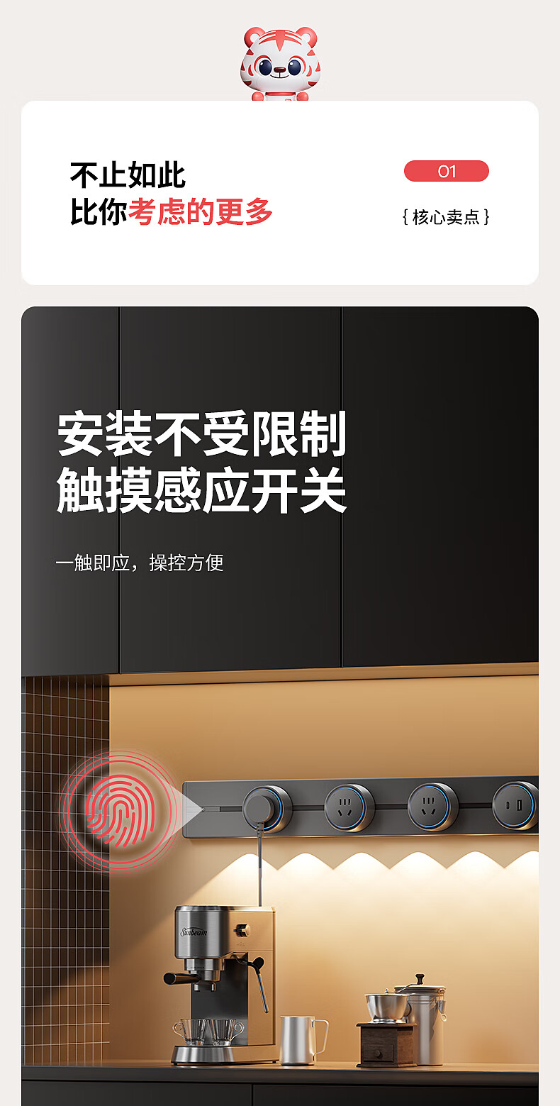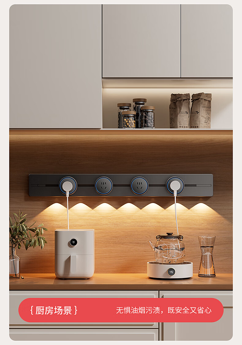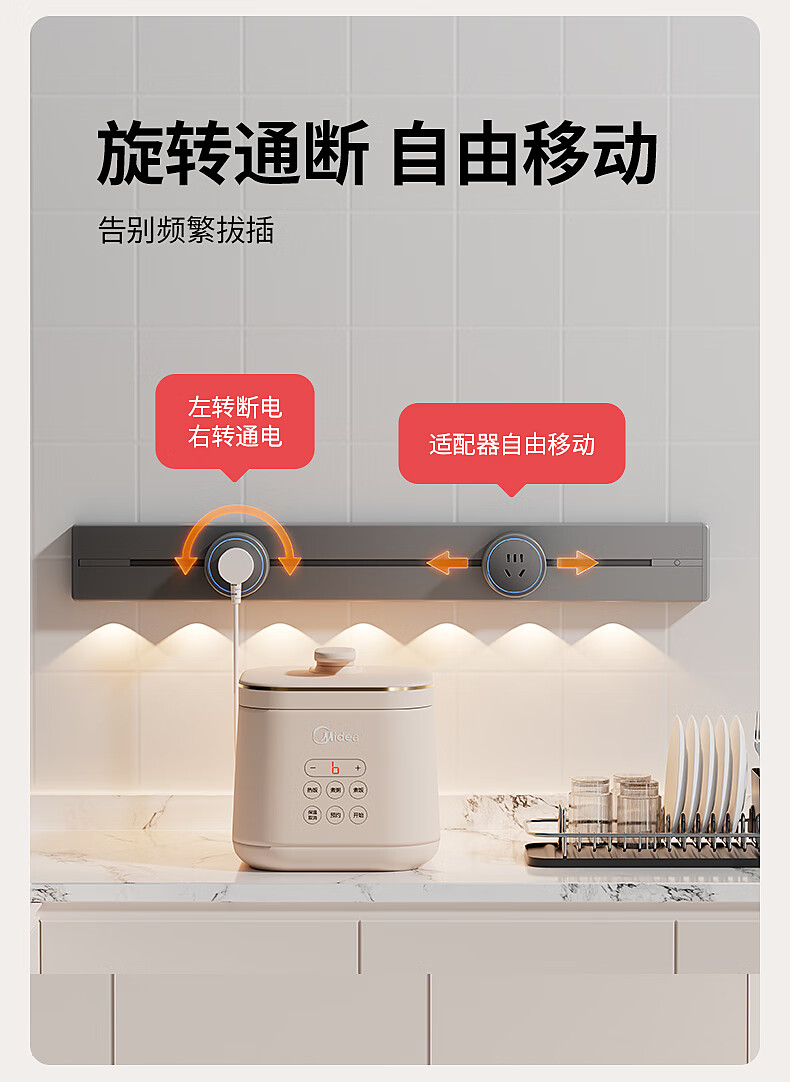 FDD国际电工山丘灯触摸感应轨道插座移动厨房书房多场景明装可移动8000w插排 山丘灯轨道插座50cm+3个五孔【白色】