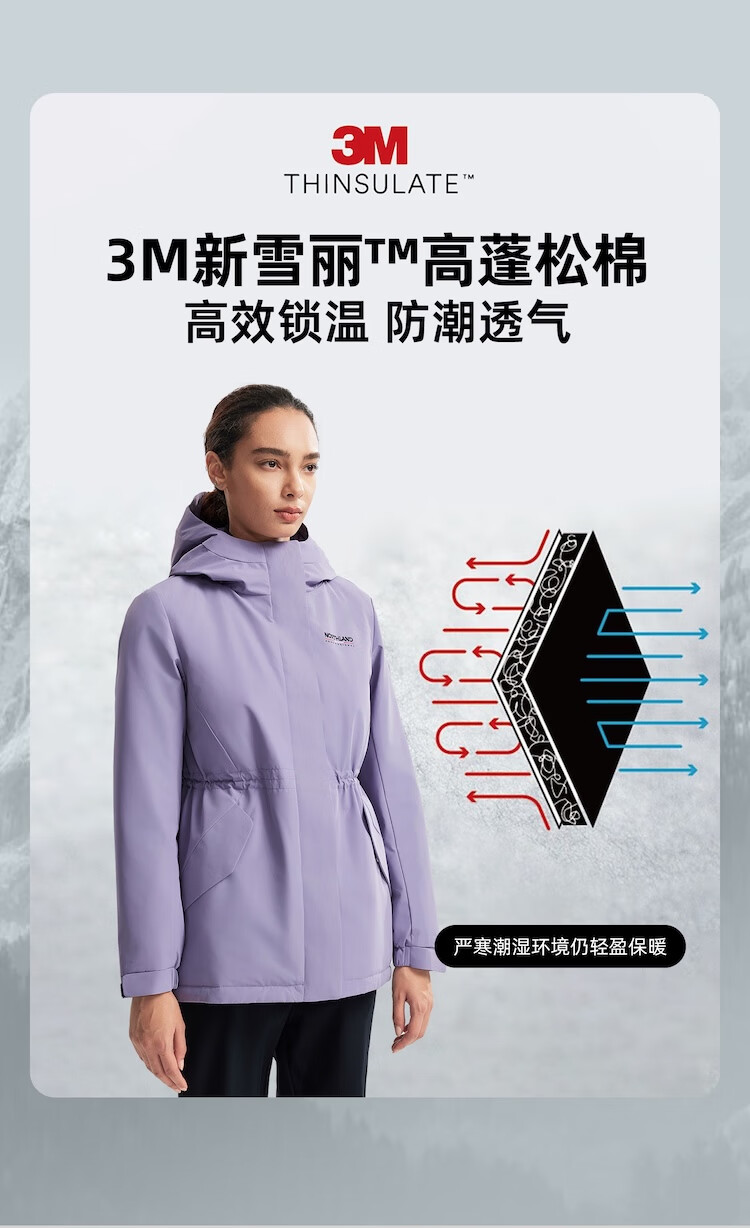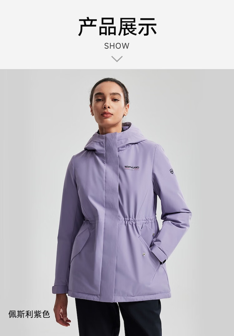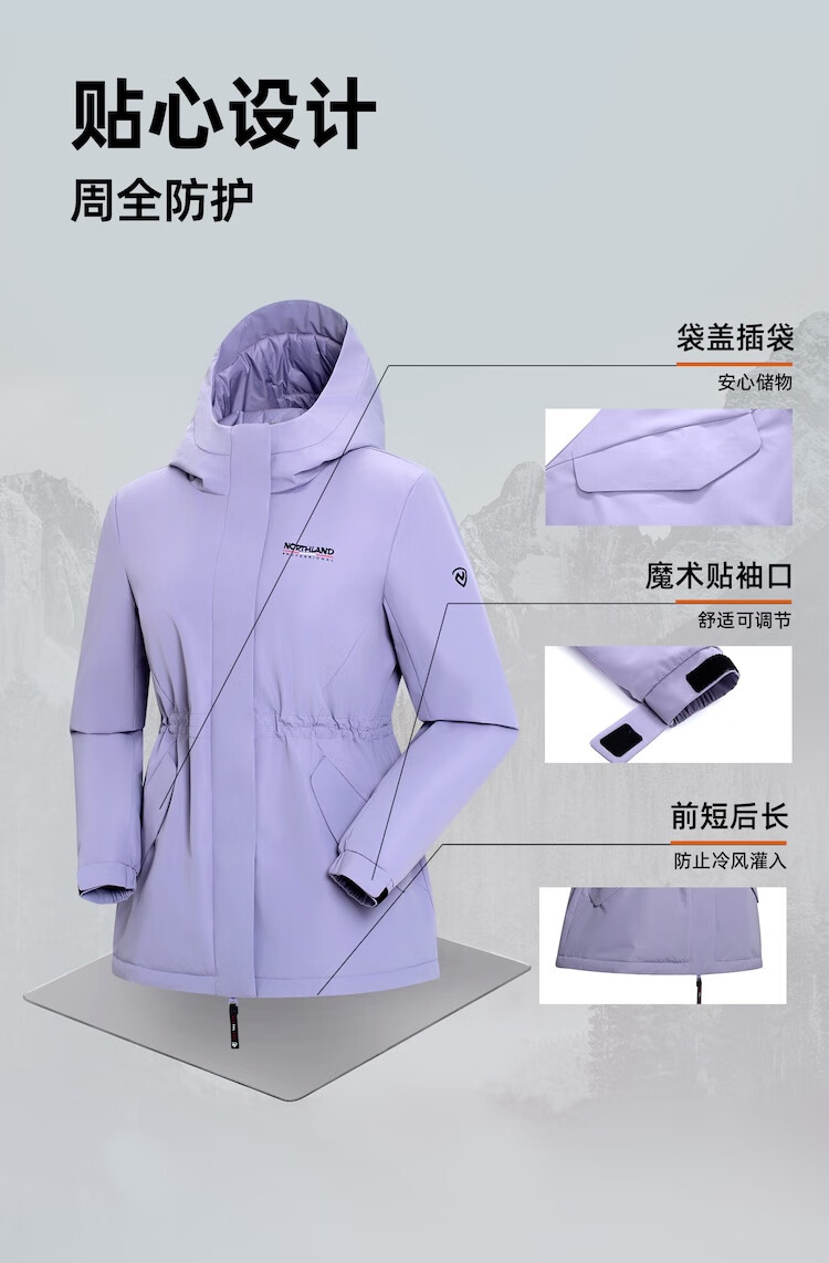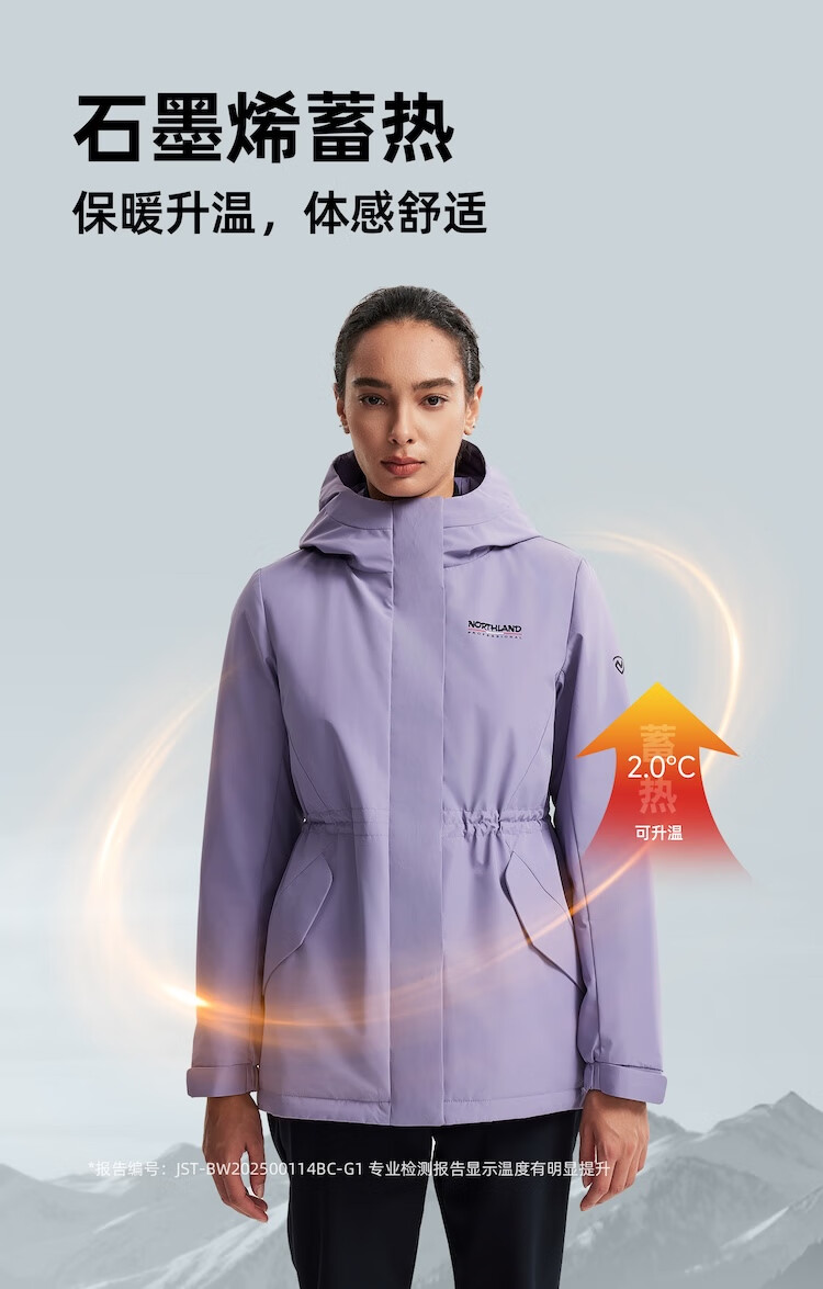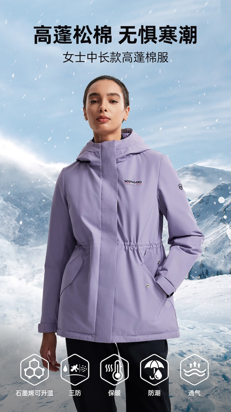 诺诗兰(NORTHLAND)棉服女士2025新款防风防泼水高蓬保暖三防石墨烯升温棉服