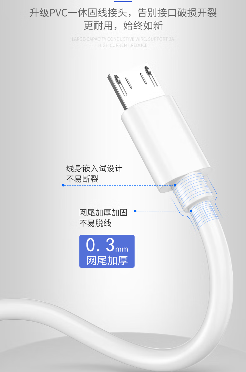 【安全高速充电】安卓数据线高速闪充适用于Micro-USB接口华为vivo小米荣耀OPPO手机行车记录仪 1条装 1米