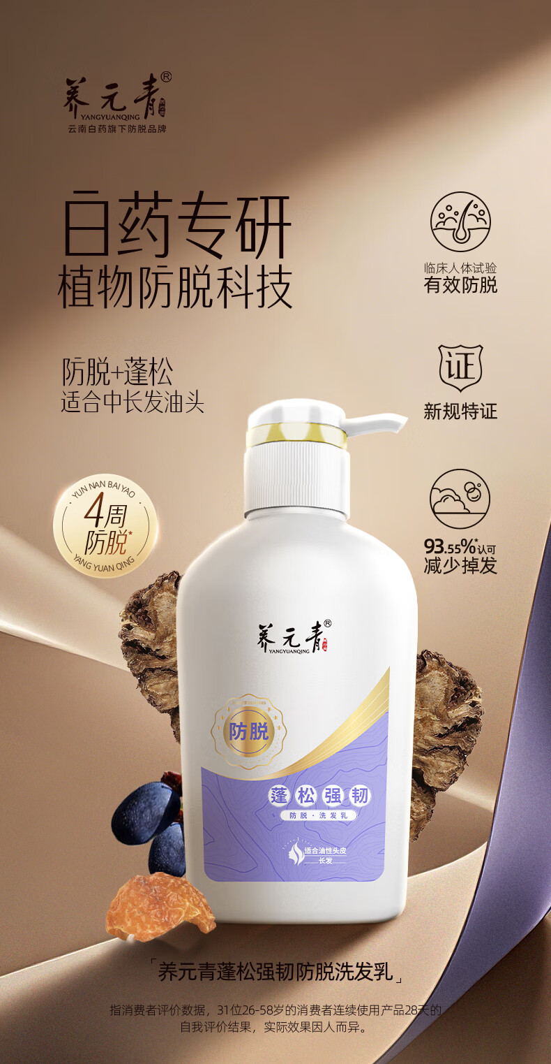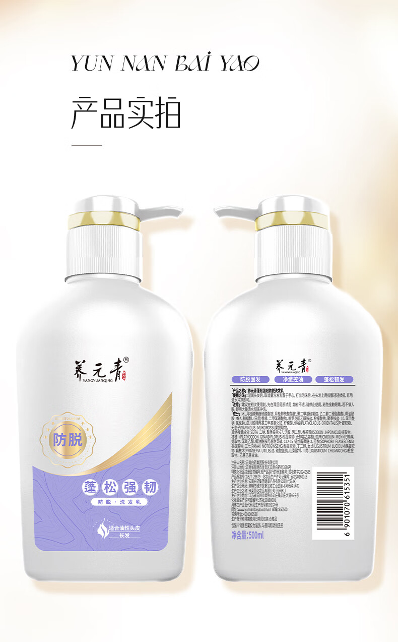 养元青洗发水云南白药女士防脱 蓬松强韧洗头膏洗发露500ml