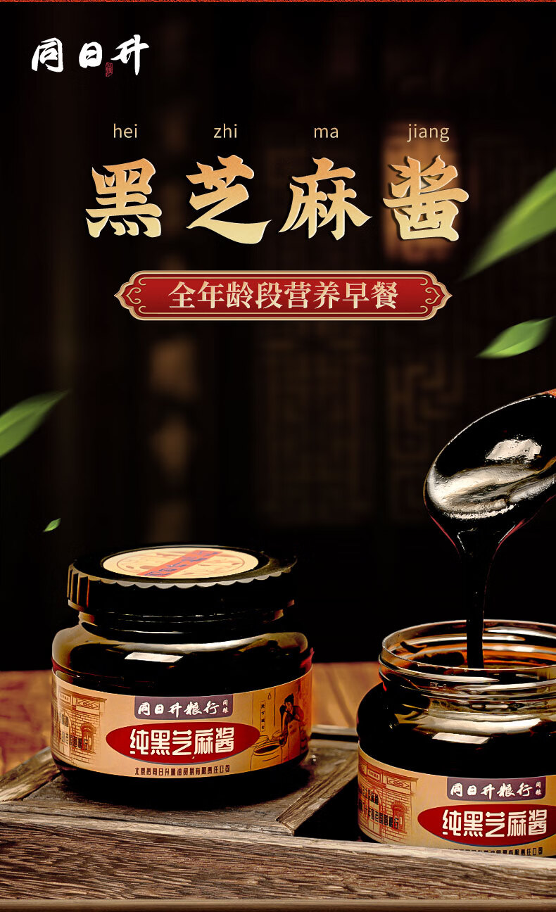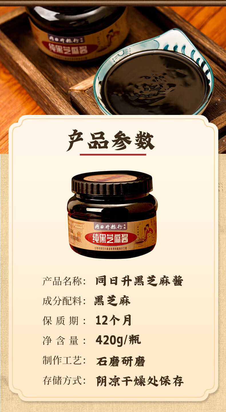 同日升纯黑芝麻酱 420g/瓶 拌面火锅蘸料面包涂抹酱正宗老北京芝麻酱
