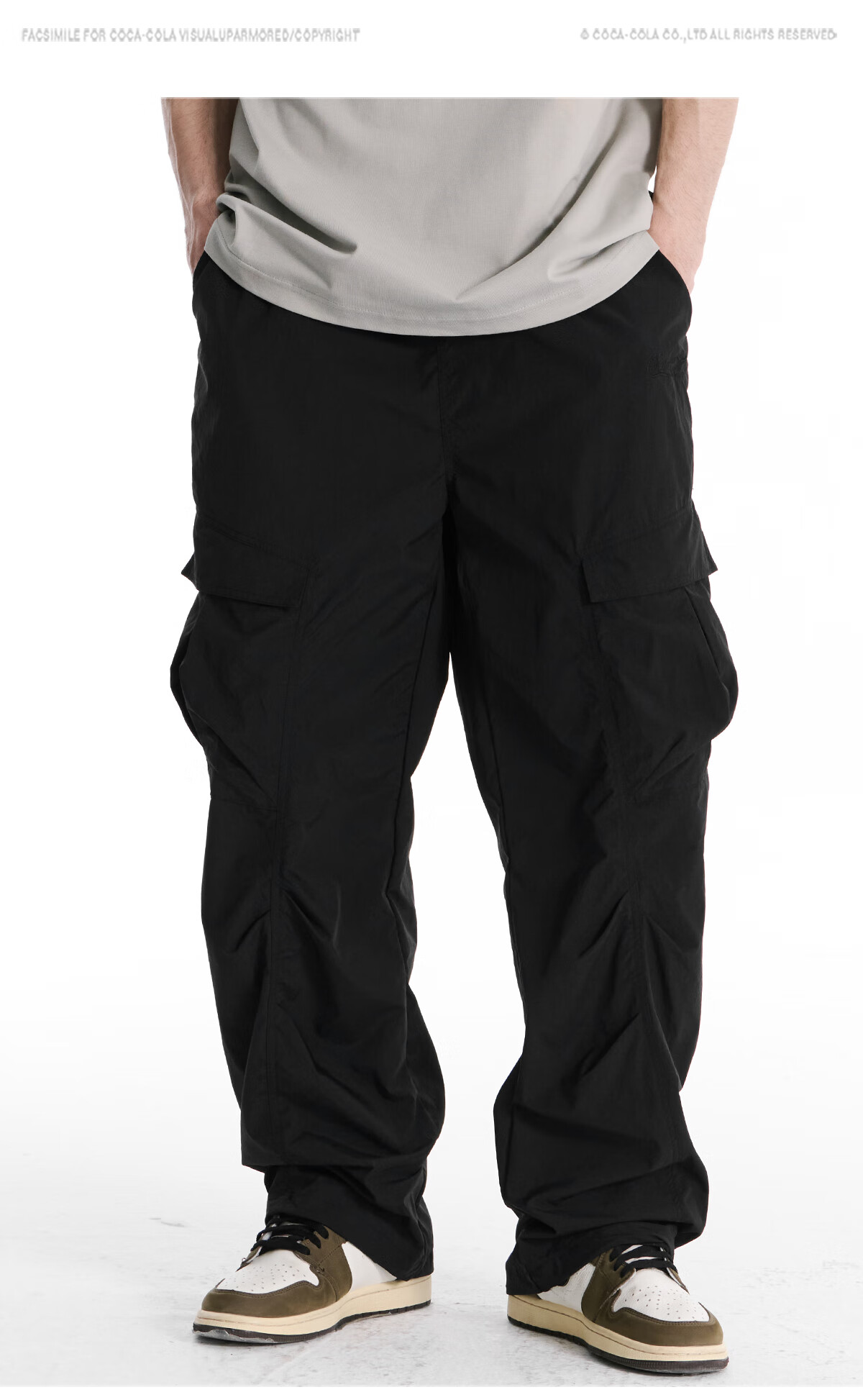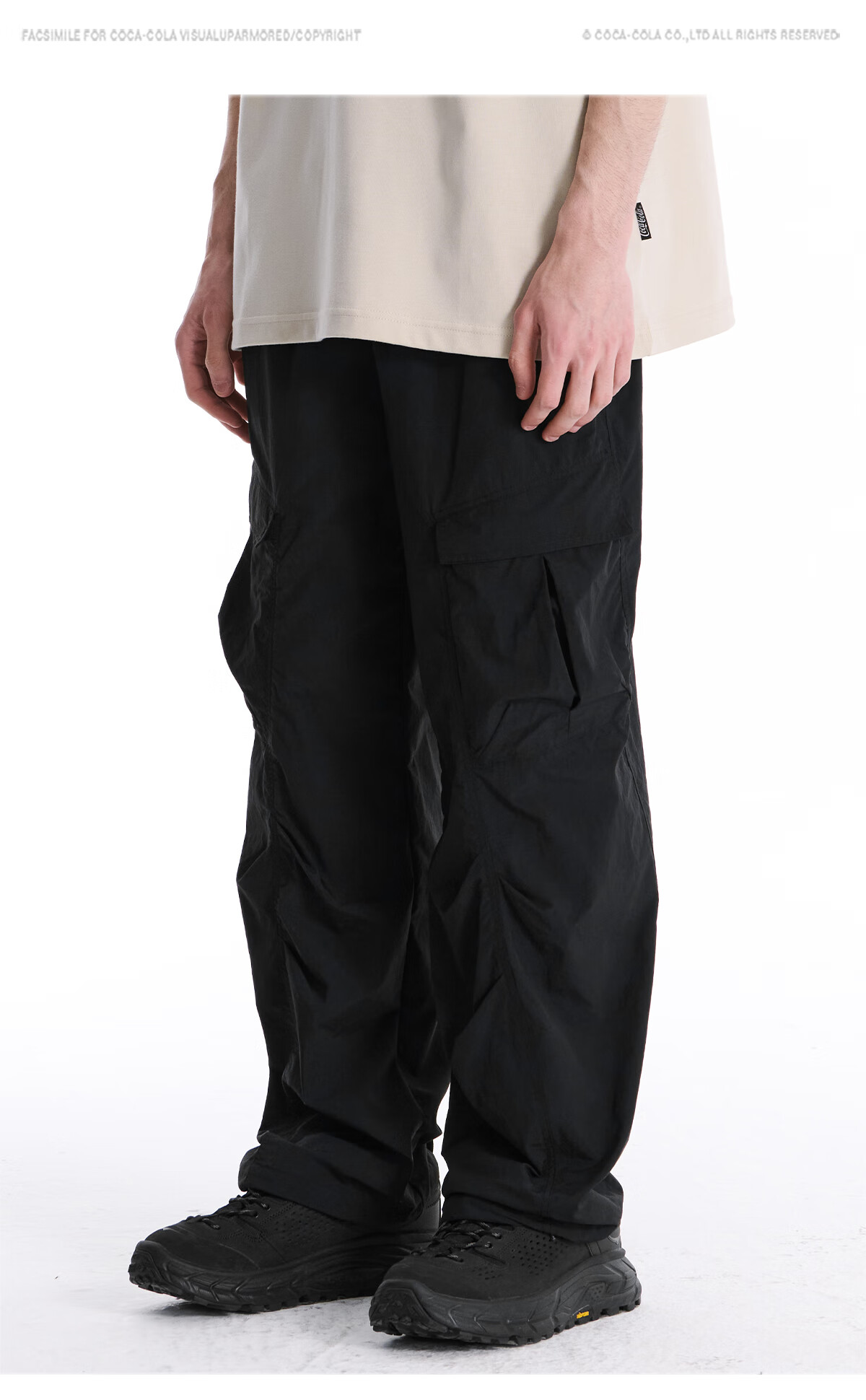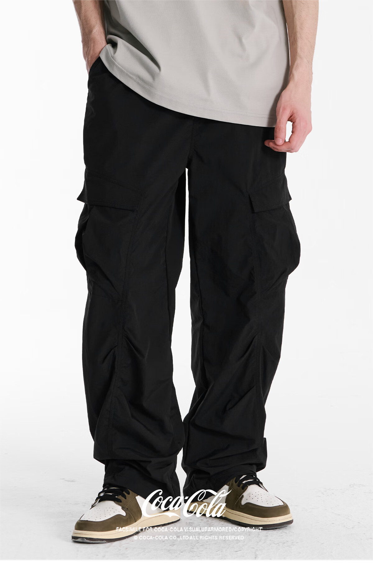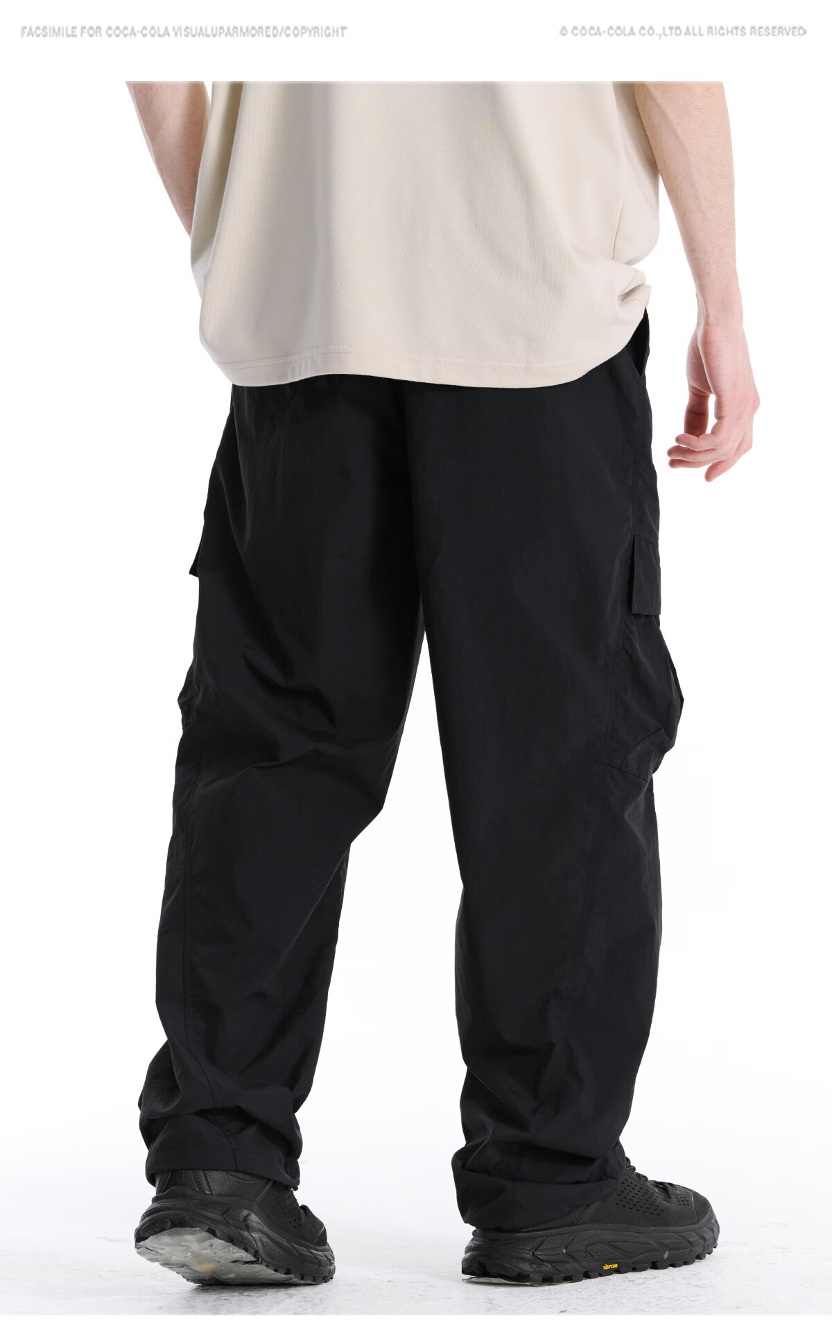 可口可乐(Coca-Cola)工装裤男户外立体多口袋水洗打褶休闲裤 黑色 常规 XL