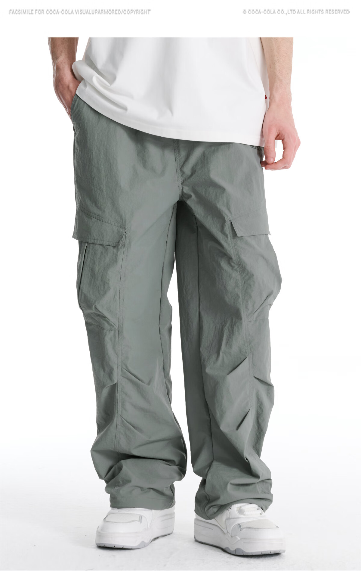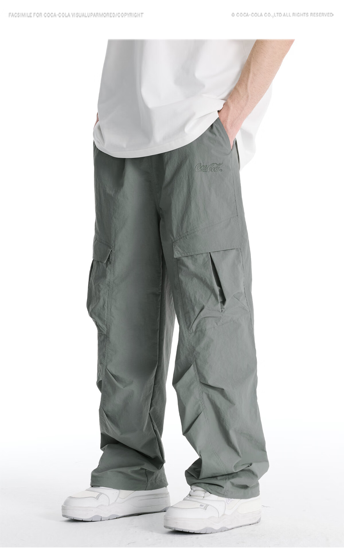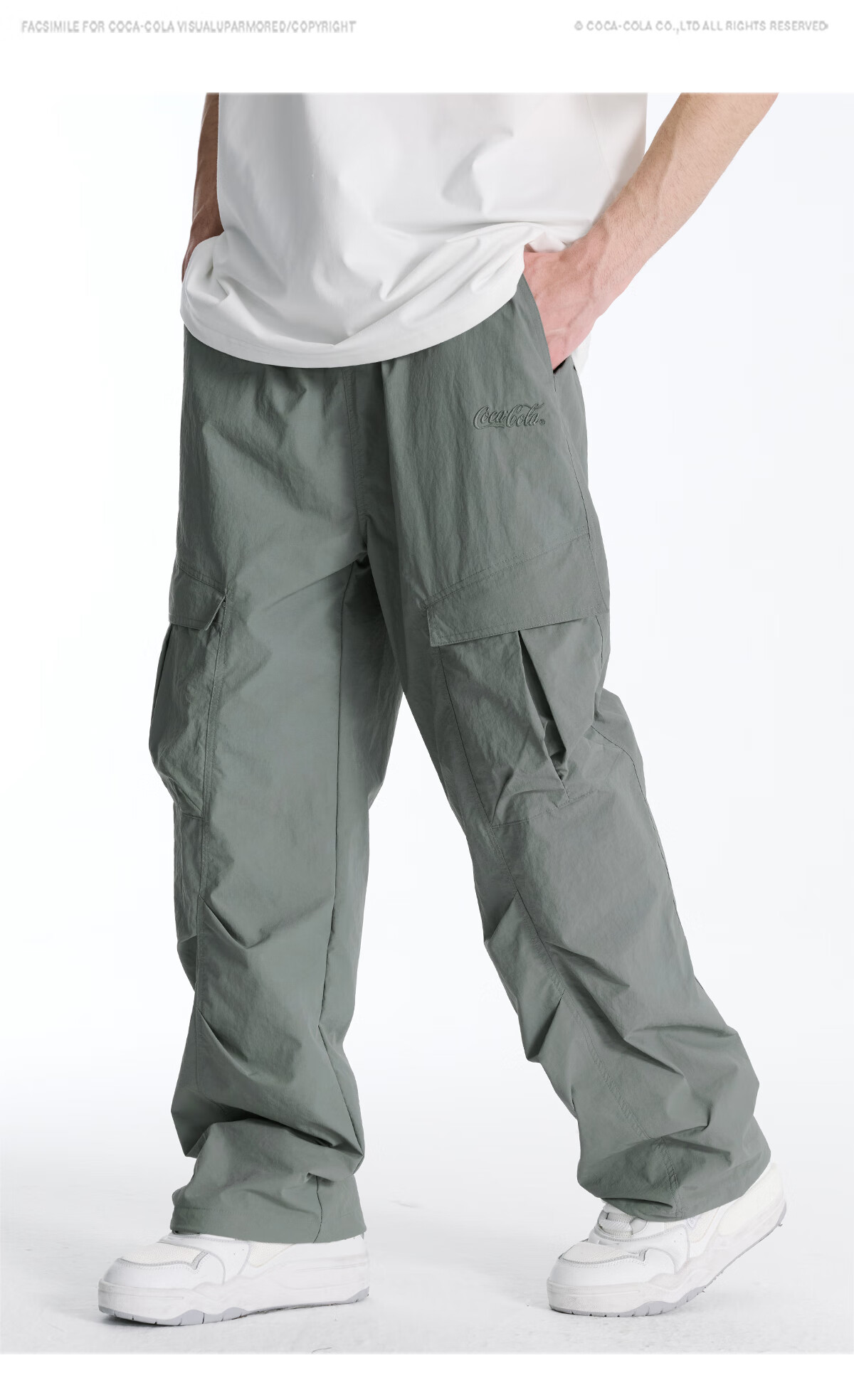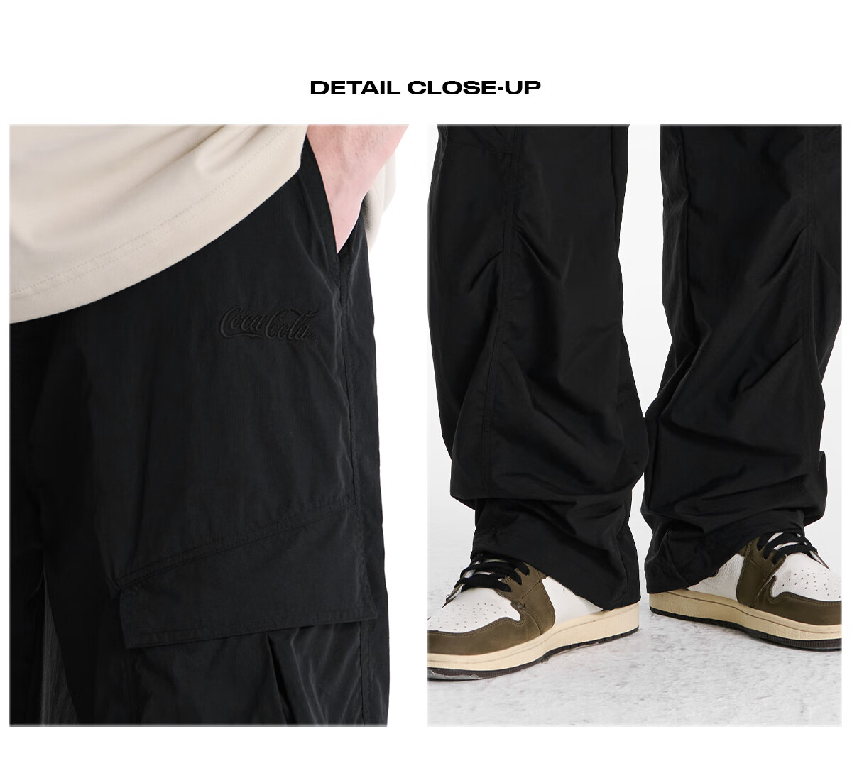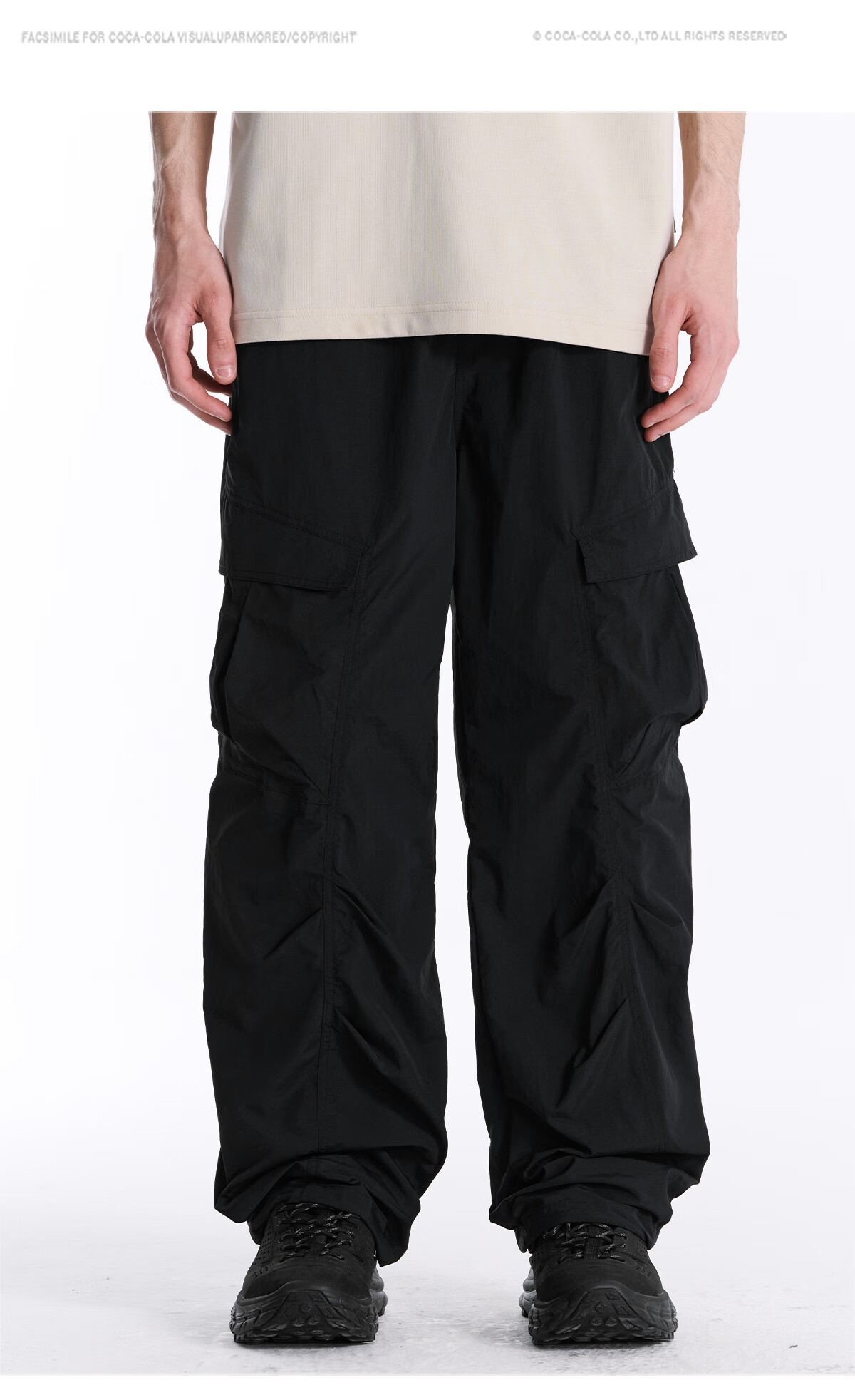 可口可乐(Coca-Cola)工装裤男户外立体多口袋水洗打褶休闲裤 黑色 常规 XL