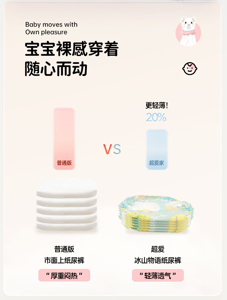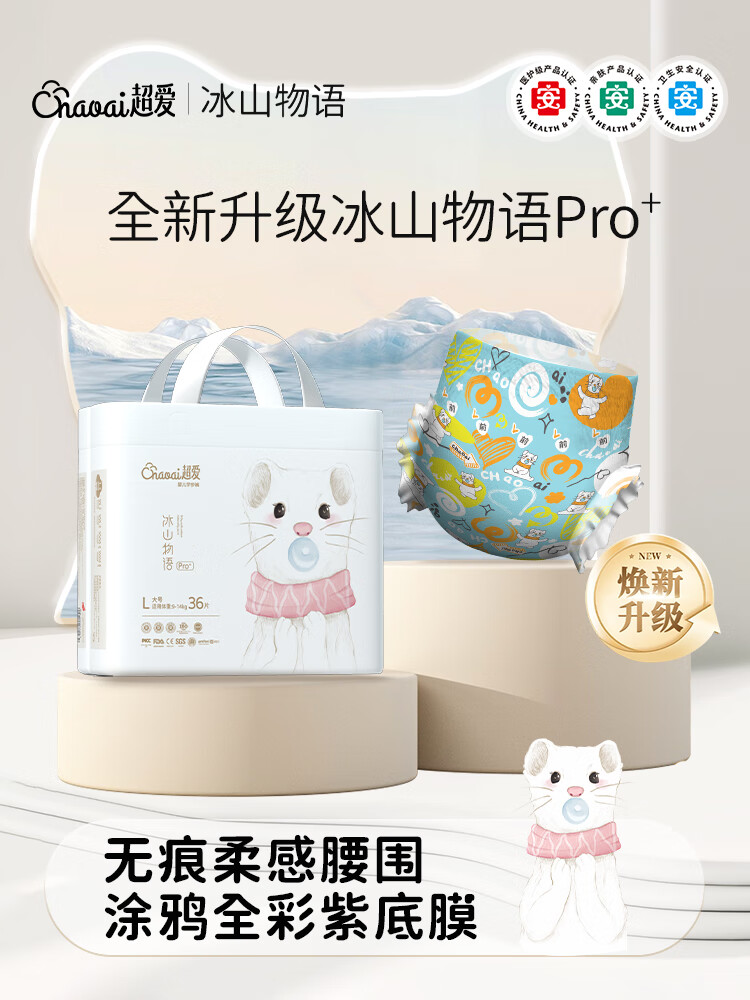 超爱冰山物语pro+医护级纸尿裤NB20片新生儿尿不湿宝宝超薄透气尿不湿