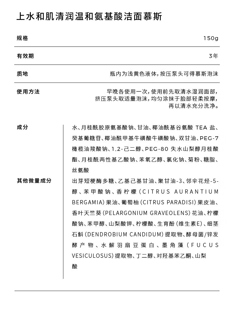 温和洁面慕斯胶原氨基酸表活泡沫洗面奶 150g