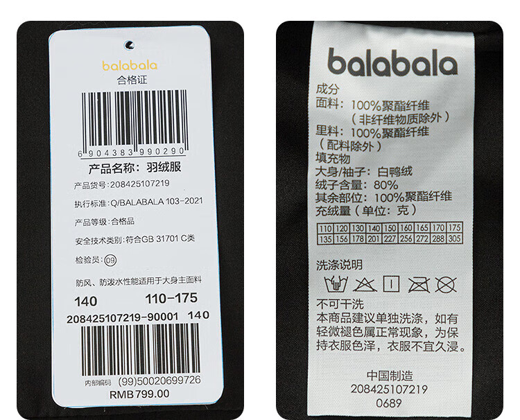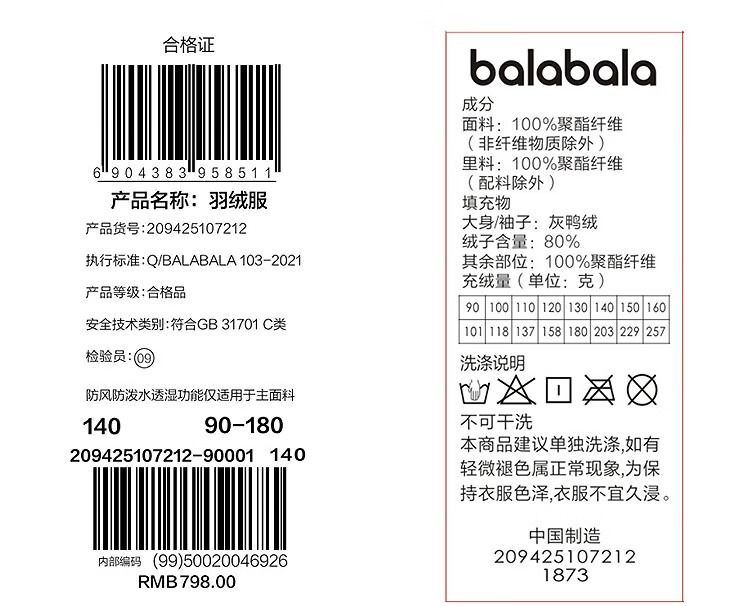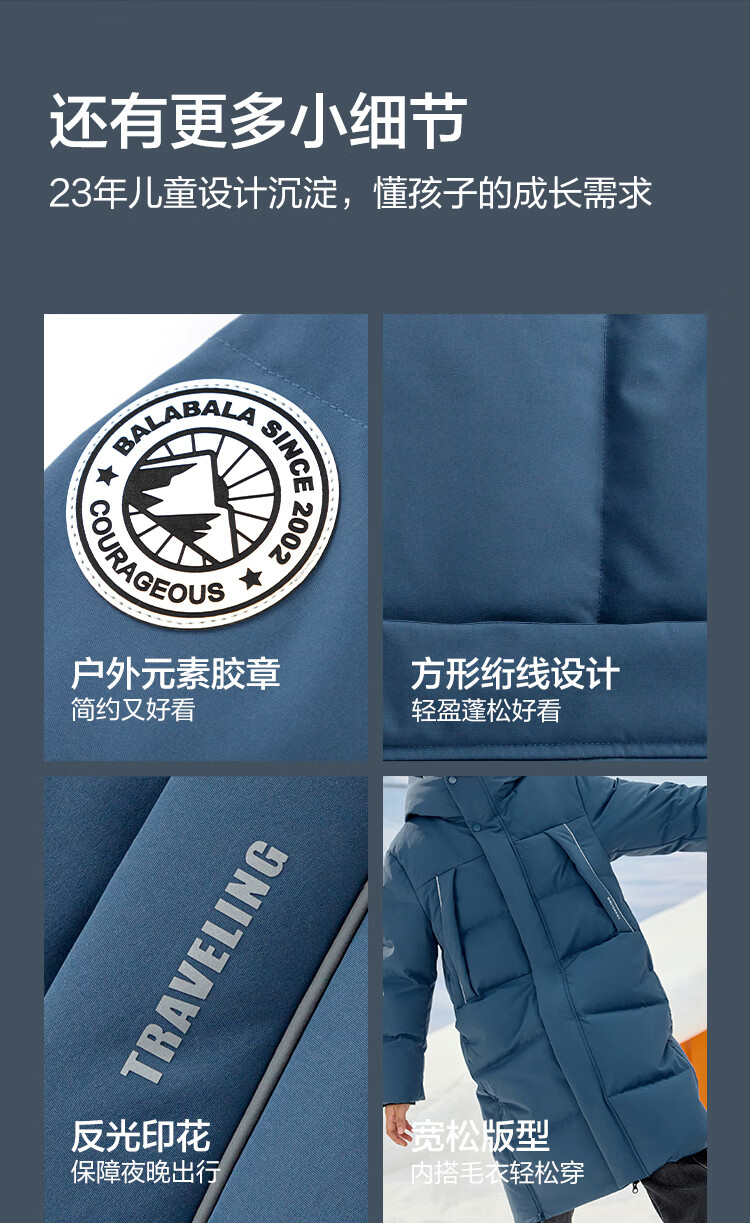 巴拉巴拉羽绒服中长款冬加厚外套男女童连帽亲子装防风防泼水209425107212