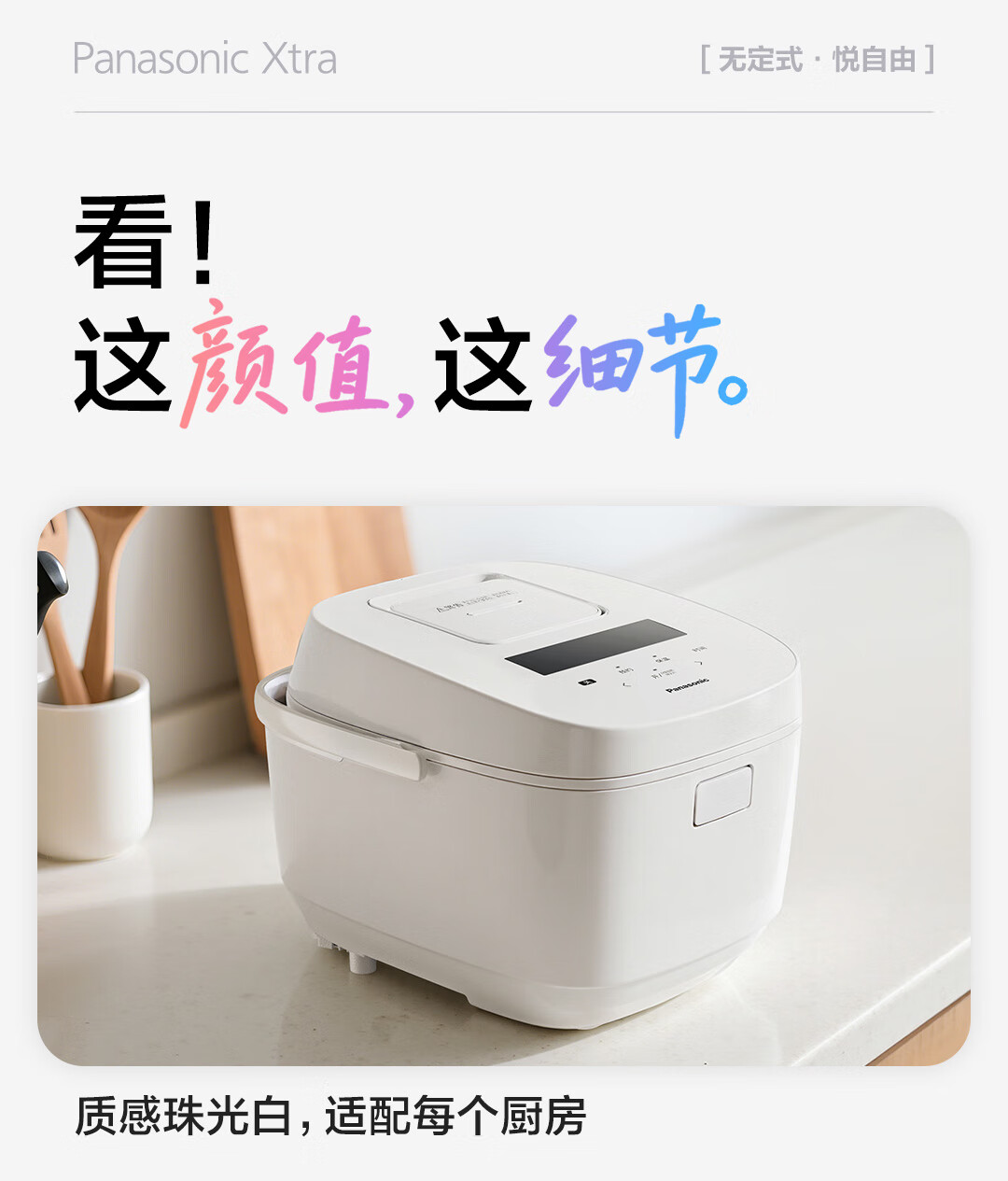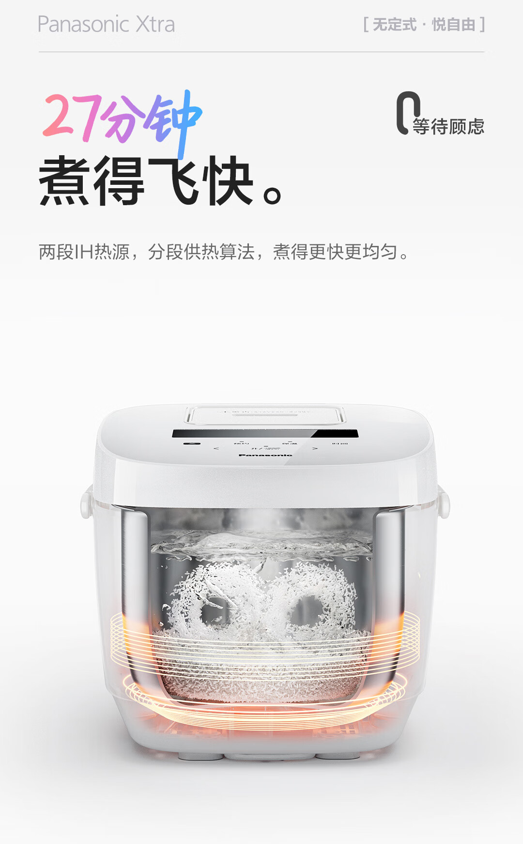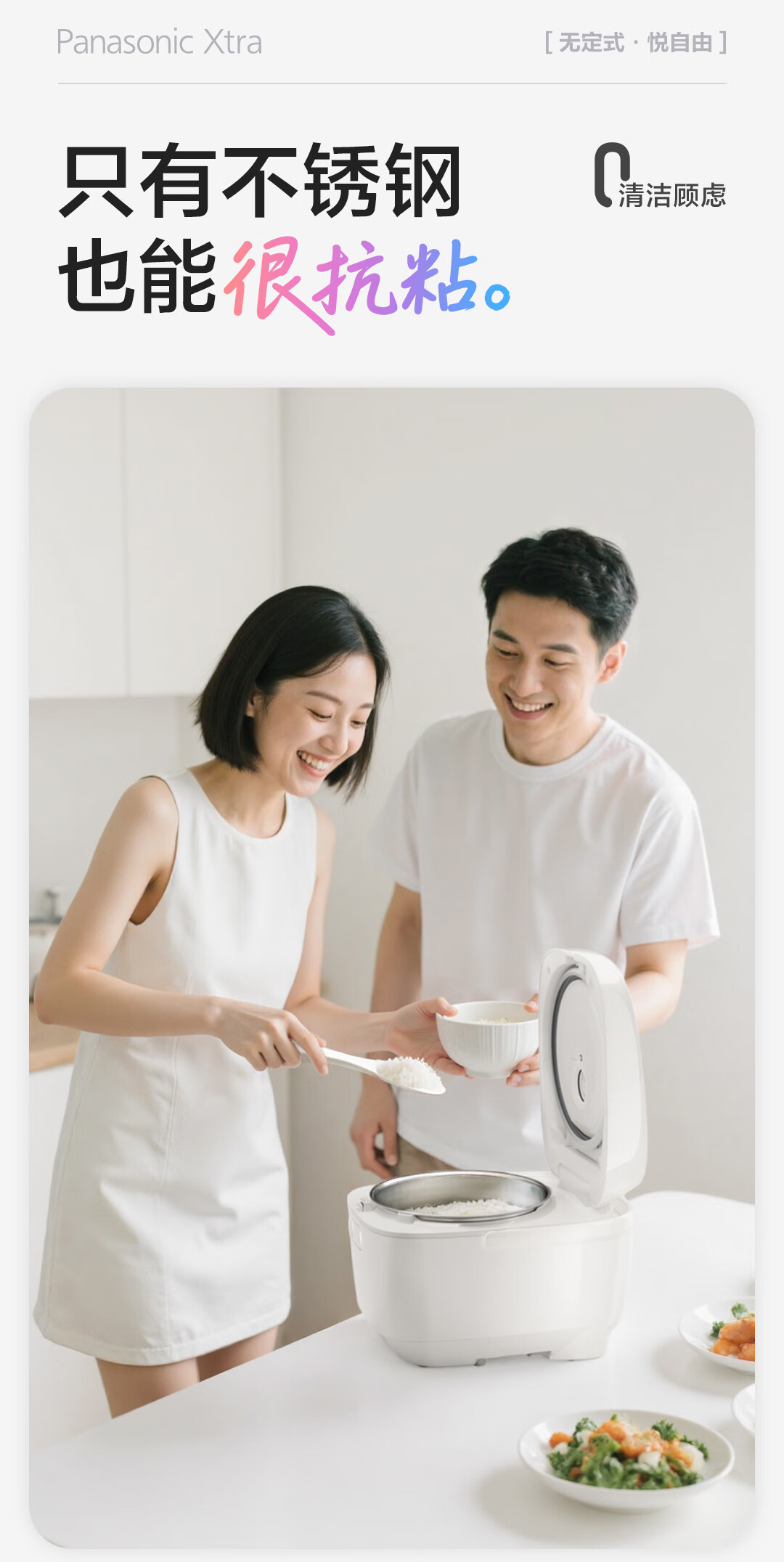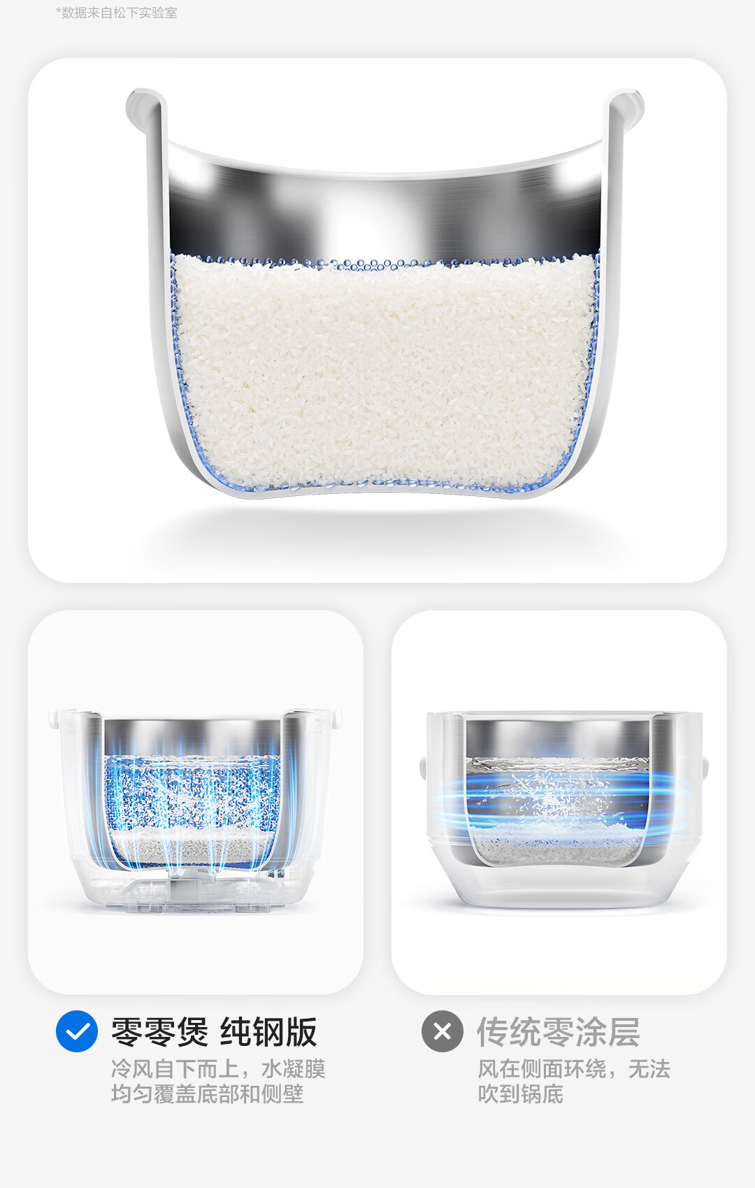 松下(Panasonic)【国家补贴20%】Xtra零零煲2.0电饭煲0涂层家用电饭锅4-5人IH无涂层不锈钢4升一级能效SR-HFS155-W
