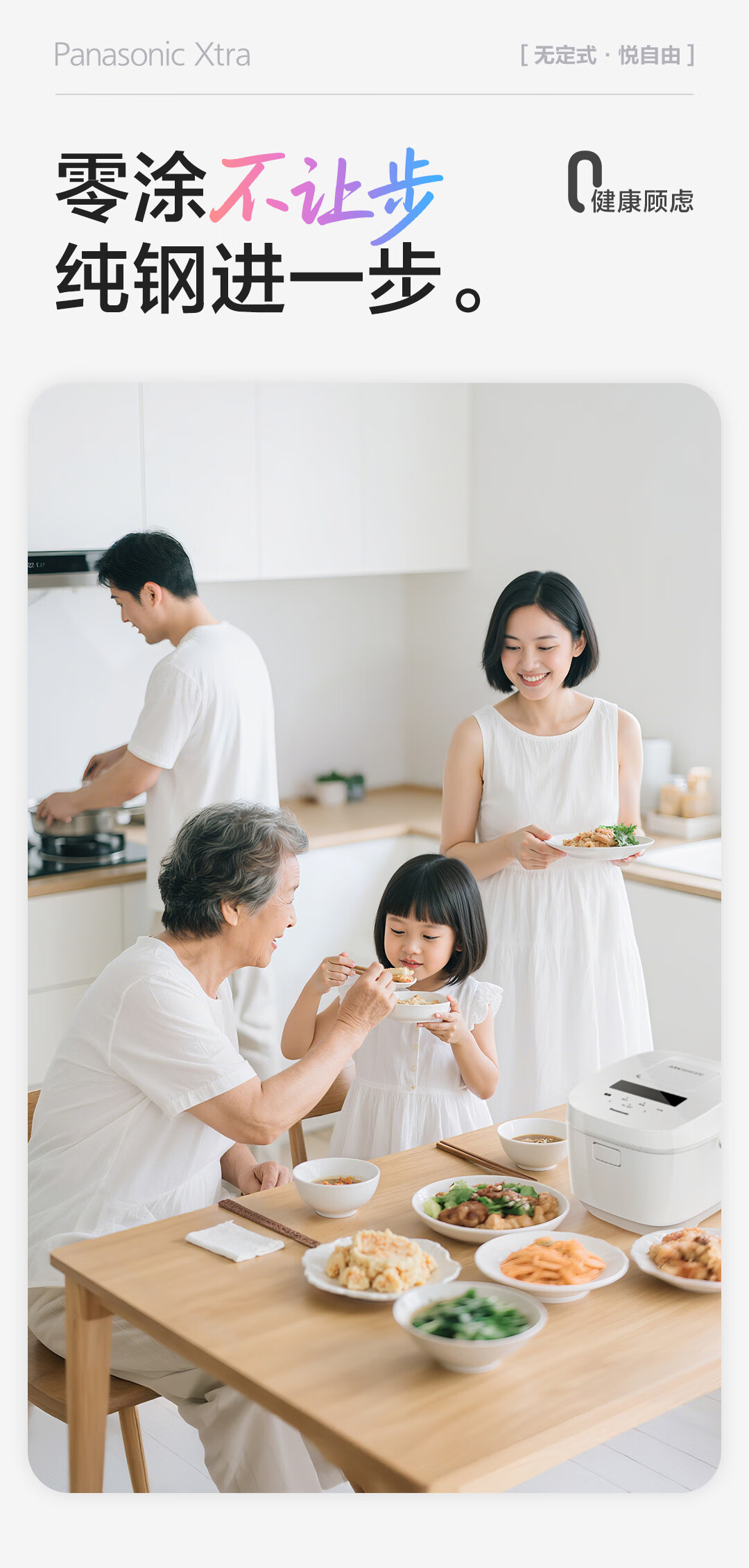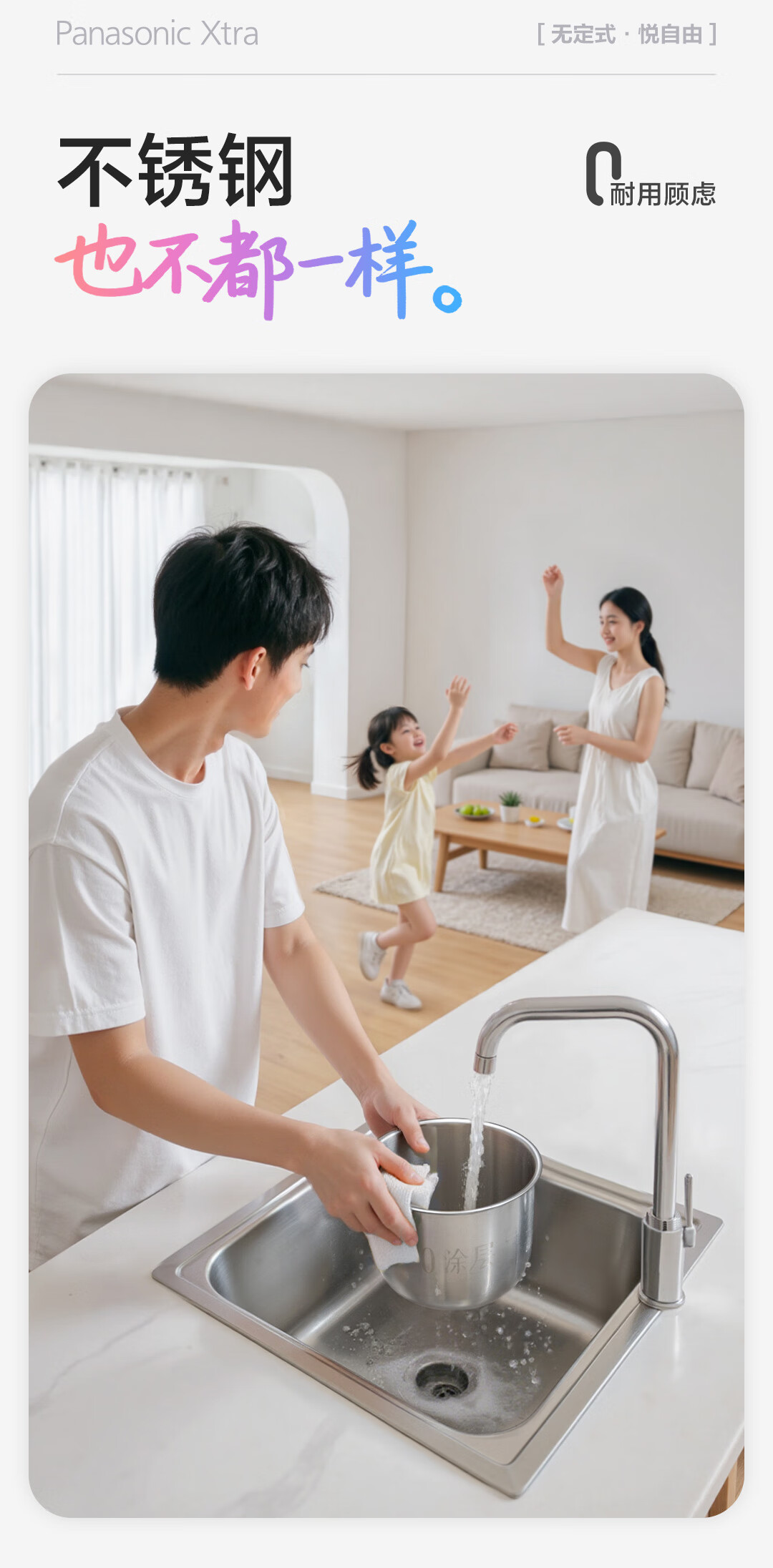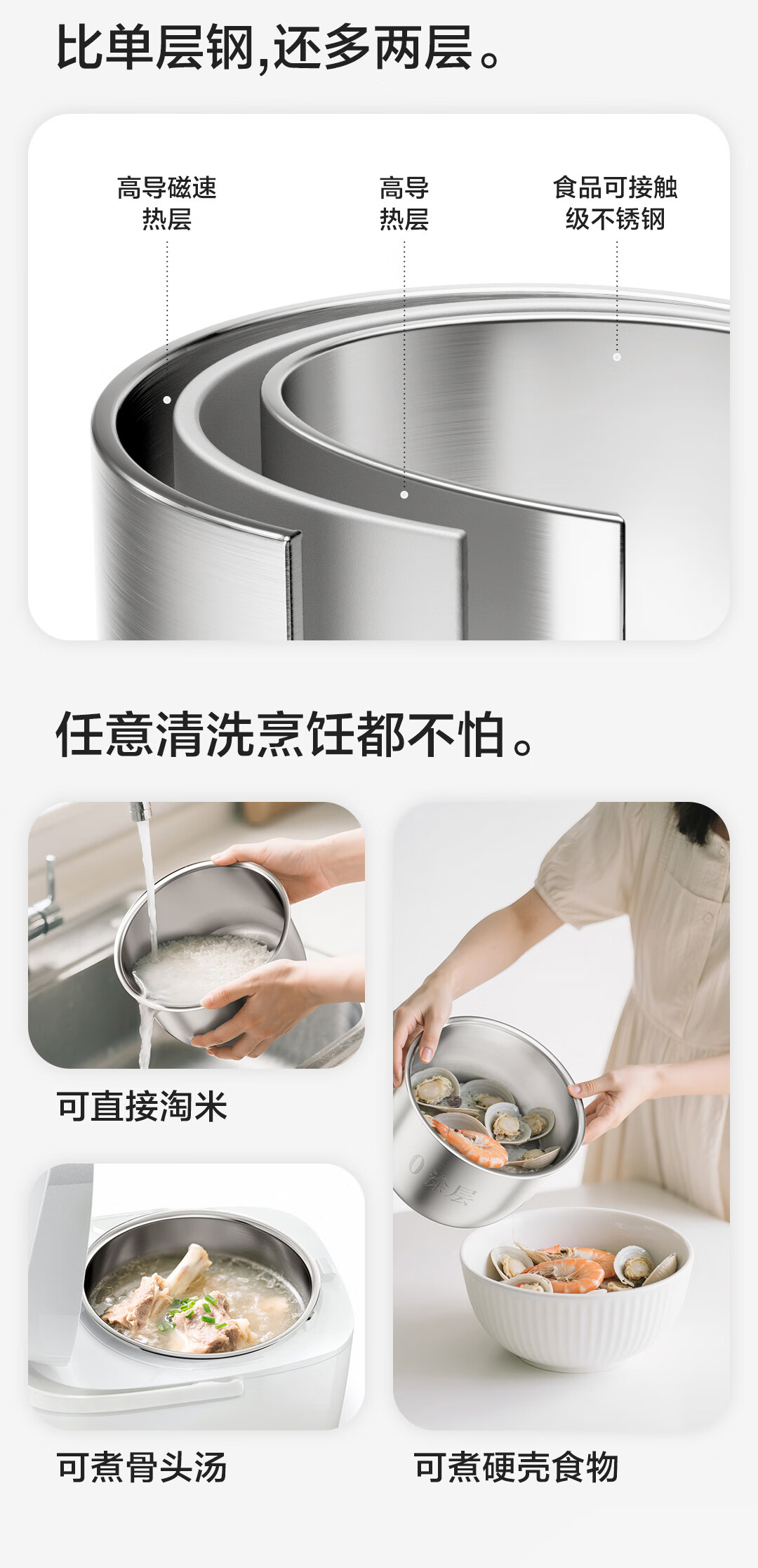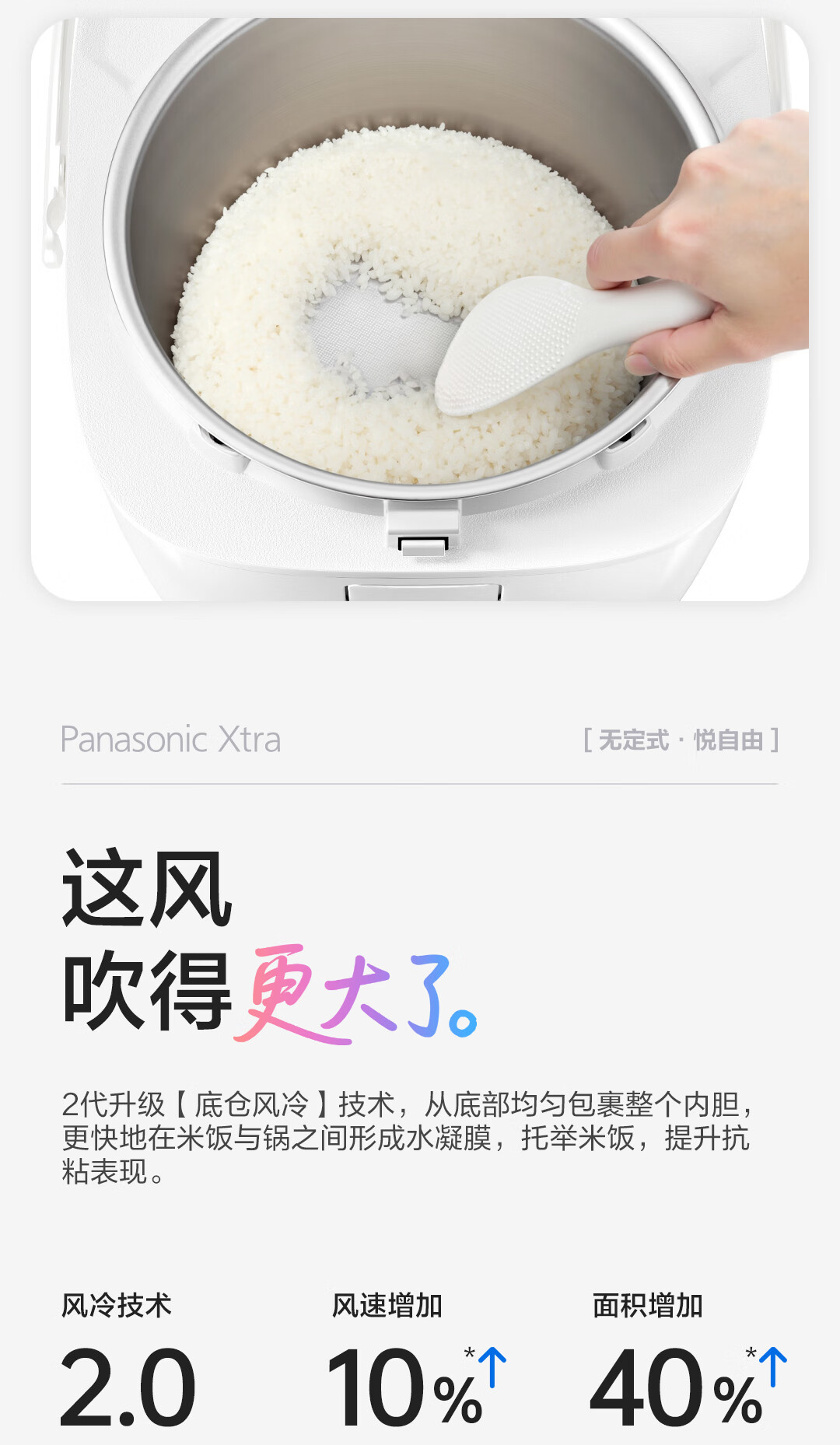 松下(Panasonic)【国家补贴20%】Xtra零零煲2.0电饭煲0涂层家用电饭锅4-5人IH无涂层不锈钢4升一级能效SR-HFS155-W